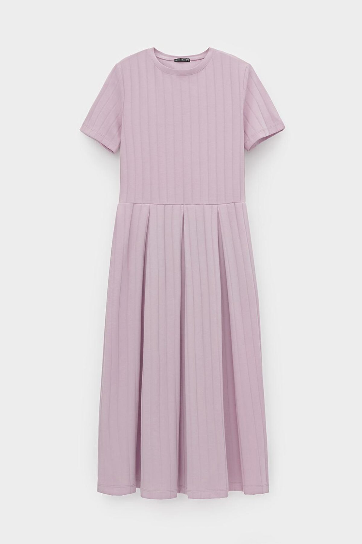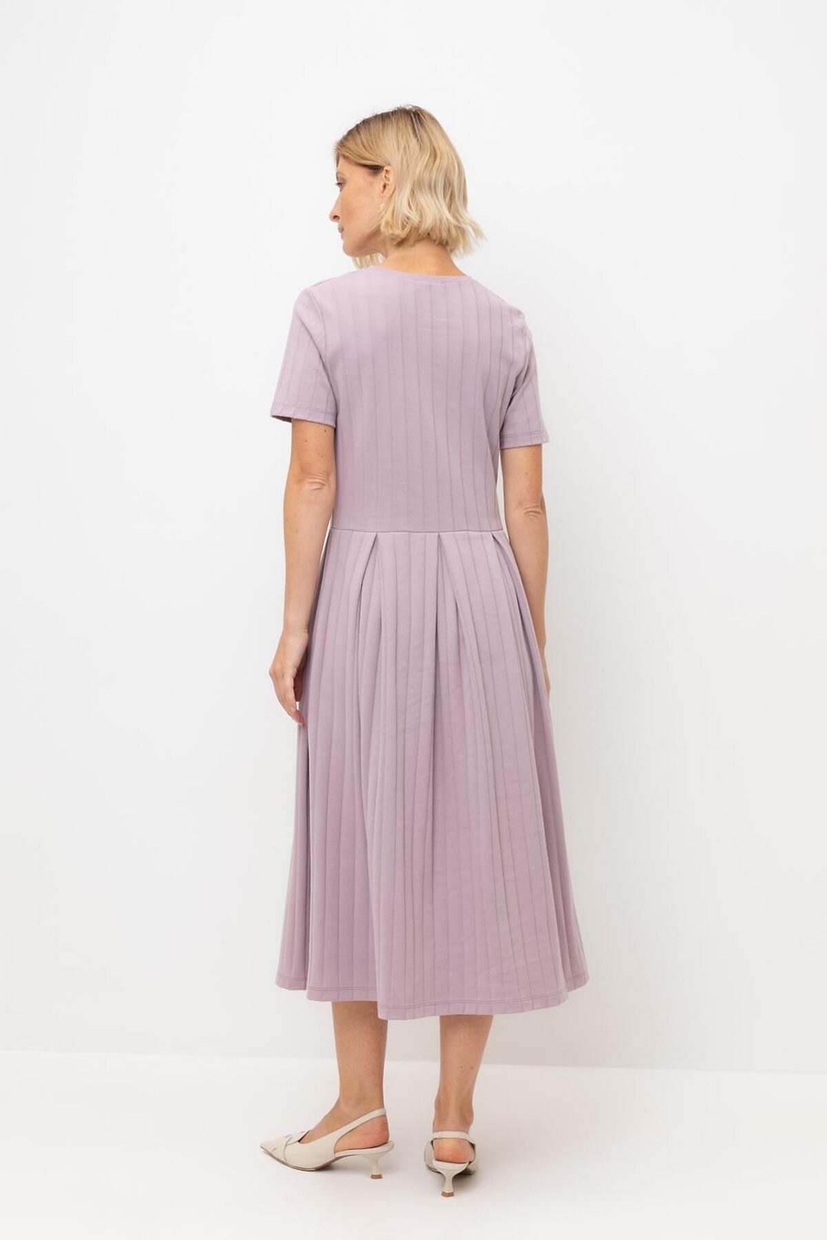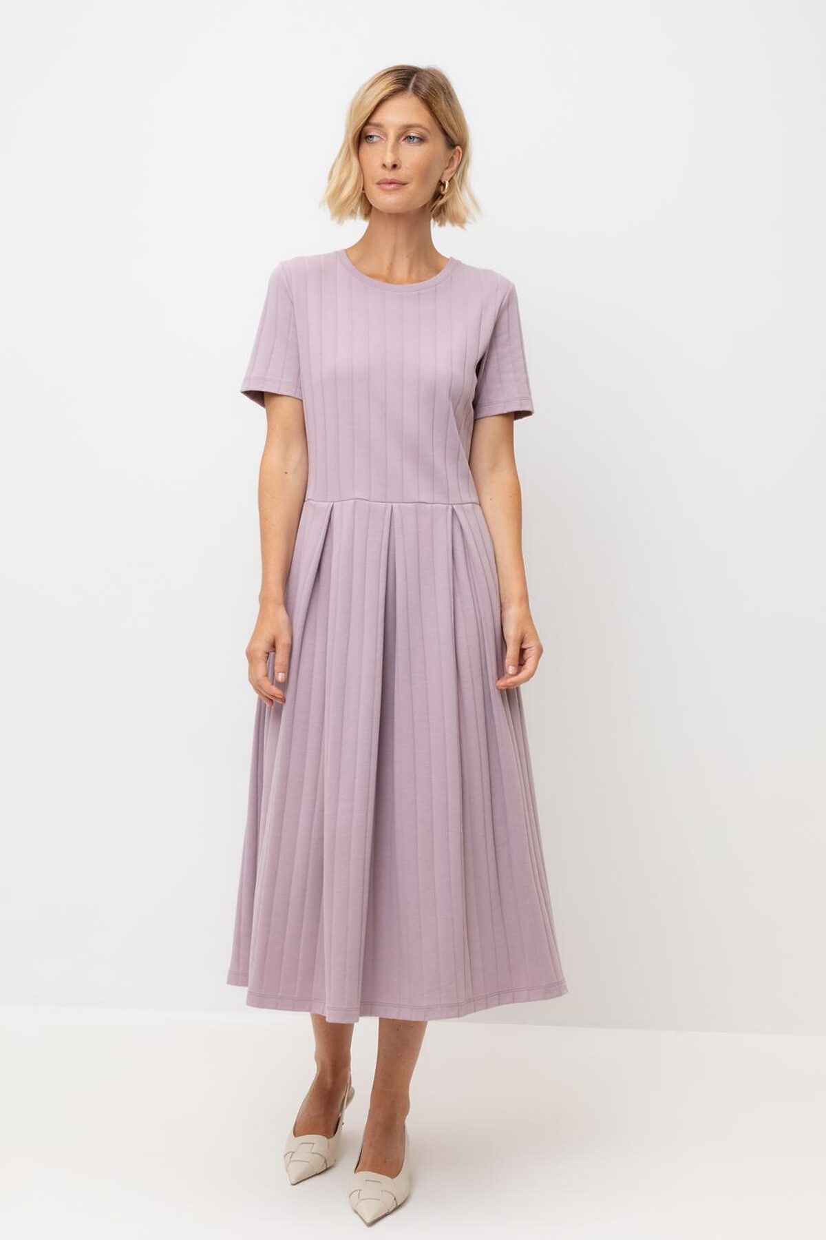 Платье с круглым вырезом и короткими рукавами из плотного гладкого трикотажа интерлок в рубчик. Все трикотажные полотна производятся в соответствии с нормами Швейцарского сертификата ЭкоТекс. Сделано в России - 100% хлопок - гипоаллергенные красители