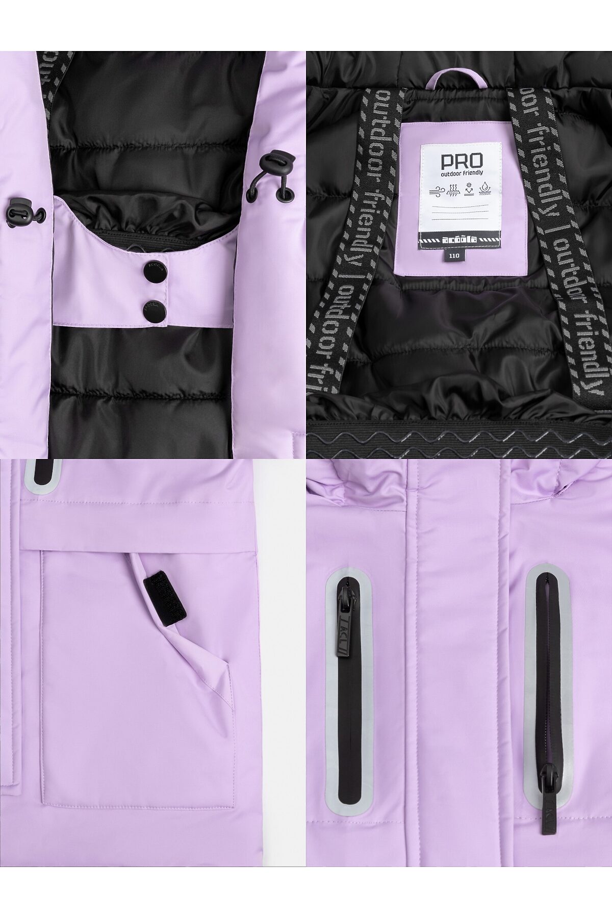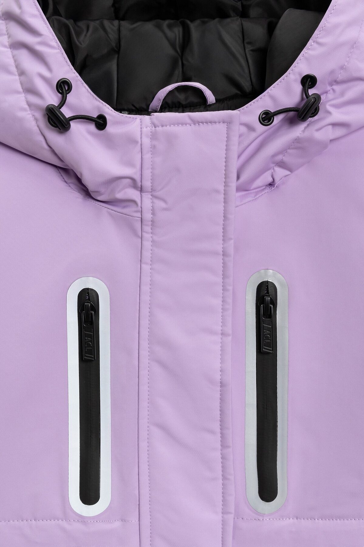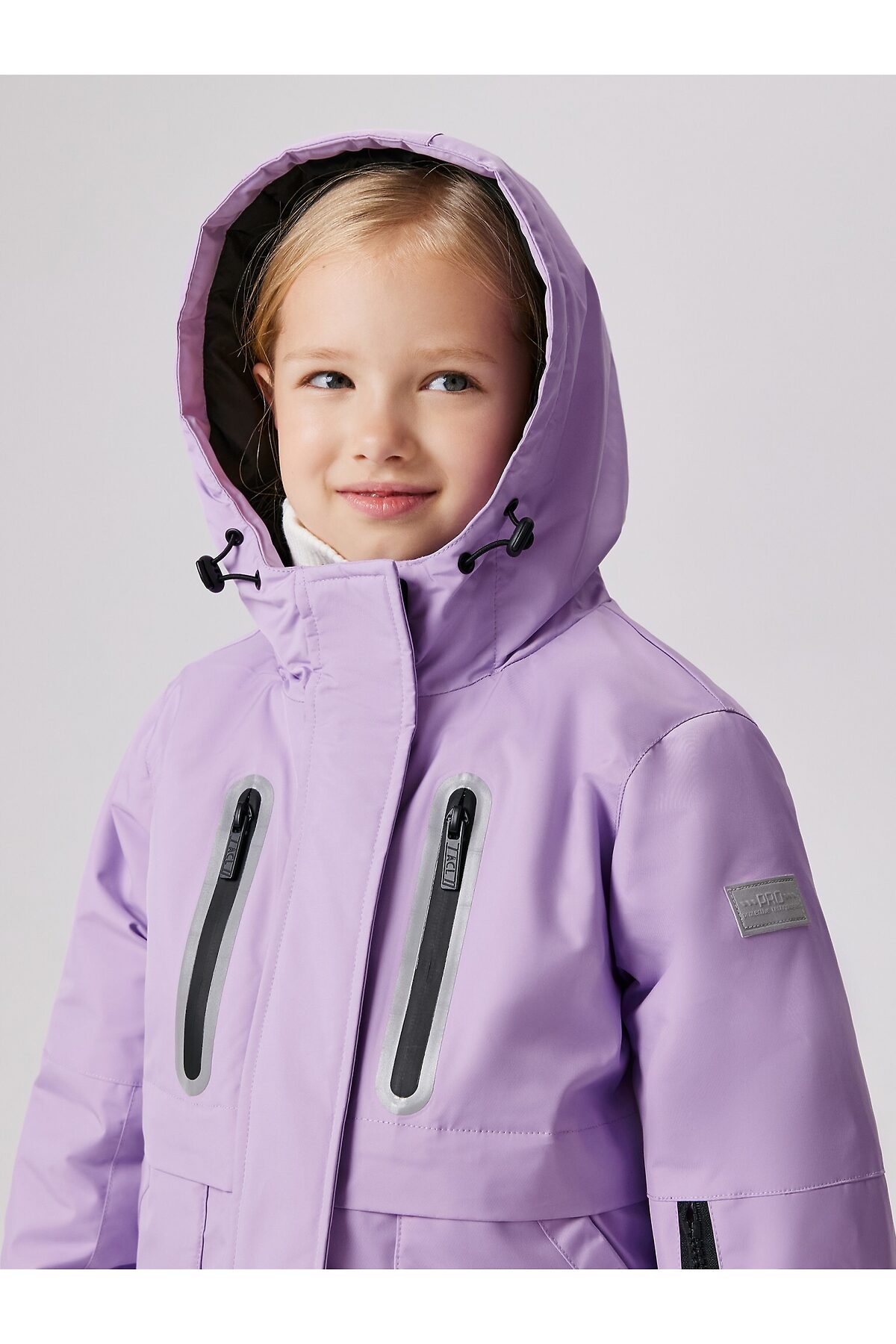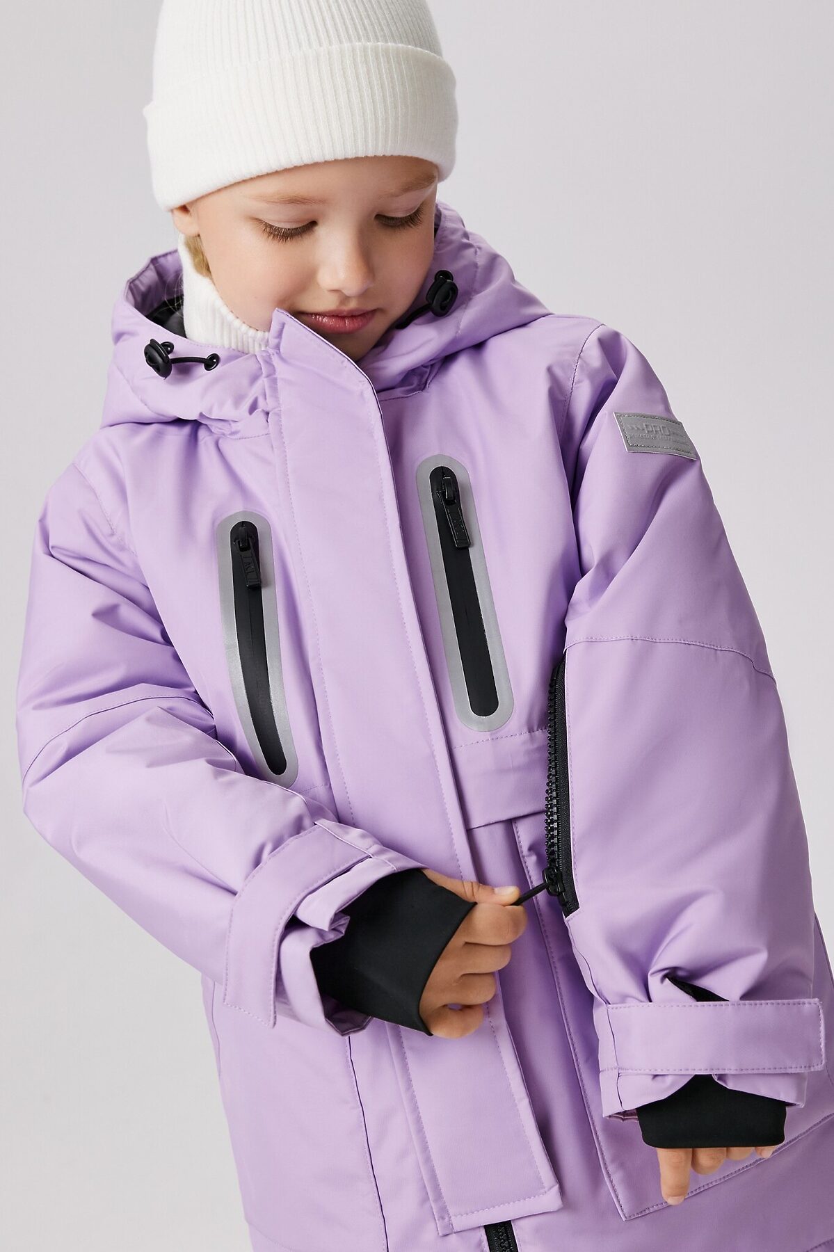 Детская утеплённая куртка с капюшоном для девочки — ещё одна стильная модель из коллекции ACOOLA PRO. Куртка изготовлена из водоонепроницаемой и непродуваемой мембранной ткани. Показатель 5000/5000 защитит и от моросящего дождя, и даже от кратковременного ливня. Подкладка, выполненная из стандартной подкладочной ткани, простёгана вместе с утеплителем. Утеплитель — синтепон (вес 300г/м2) делает комфортным ношение при температуре от 0 до -25 градусов. Спереди расположена застёжка на молнию с внутренней и внешней ветрозащитными планками; внешняя планка застегивается на липучки. По линии талии расположен эластичный шнур с пластиковыми стопперами для регулировки прилегания. Несъемный капюшон также дополнен утяжкой со стопперами. Низ рукавов с ремешком-липучкой, регулирующим ширину. Трикотажные манжеты с отверстием для большого пальца исключают продувание. Внутренние эластичные лямки позволяют снять куртку в помещении, не занимая рук. Низ рукавов с ремешком-липучкой и трикотажной манжетой с отверстием для большого пальца для лучшего прилегания к запястьям и исключения продувания. Куртка дополнена внутренней юбкой на кнопках, обеспечивающей плотное прилегание к телу и защиту от холода и ветра. Модель с несколькими карманами: два накладных на липучках в нижней части, два нагрудных кармана на водонепроницаемой молнии и карман на молнии на левом рукаве. Светоотражающие элементы на рукаве, на спинке внизу и вокруг нагрудных карманов сделают ребенка заметным для машин в темное время суток. Градиентная расцветка в пастельных тонах сделает образ нежным и запоминающимся. Куртка представлена в двух цветах: светло-розовом и сиреневом.