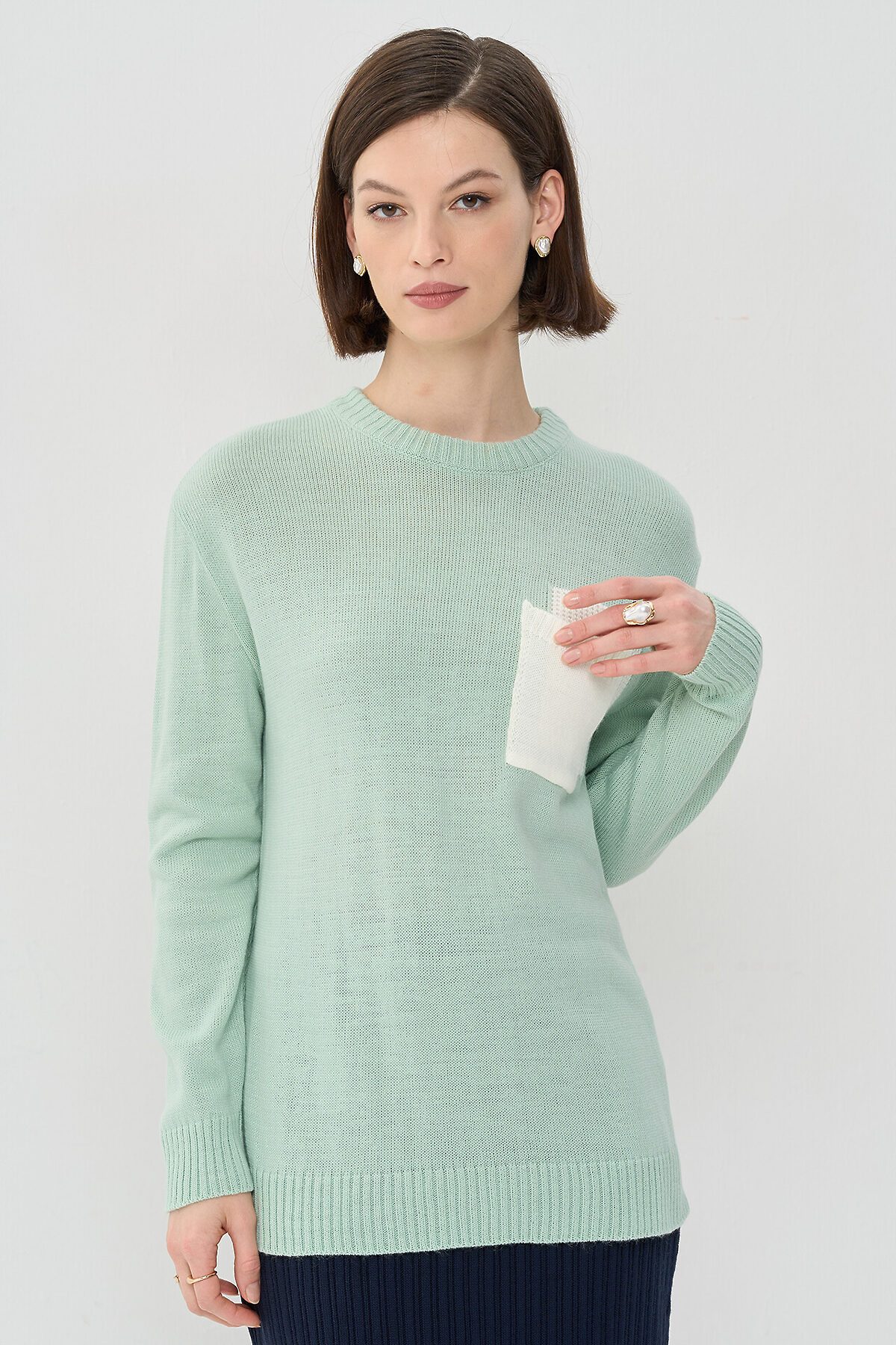 Вязаный джемпер с декоративным кармашком на полочке.