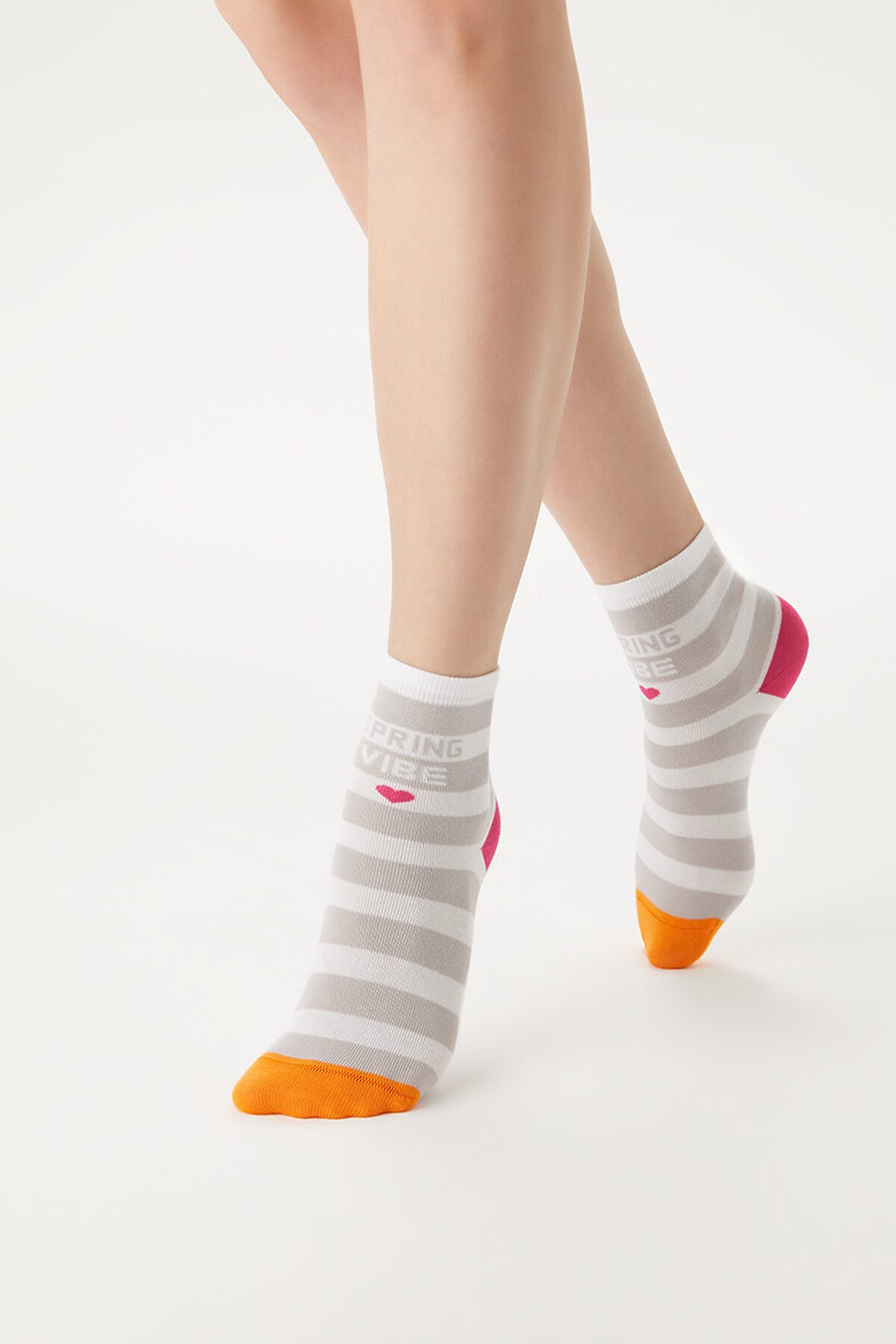 Женские всесезонные носки MiNiMi в широкую полоску. Легкие, дышащие, из высококачественного мягкого хлопка. Удобная резинка и кеттельный (плоский) шов на мыске обеспечивают оптимальный комфорт. Оригинальное сочетание классической основы и контрастного оформления пятки и мыска соответствует самым актуальным модным трендам. Такие носки останут отличным повседневным аксессуаром, подходящим для самых разных нарядов.
