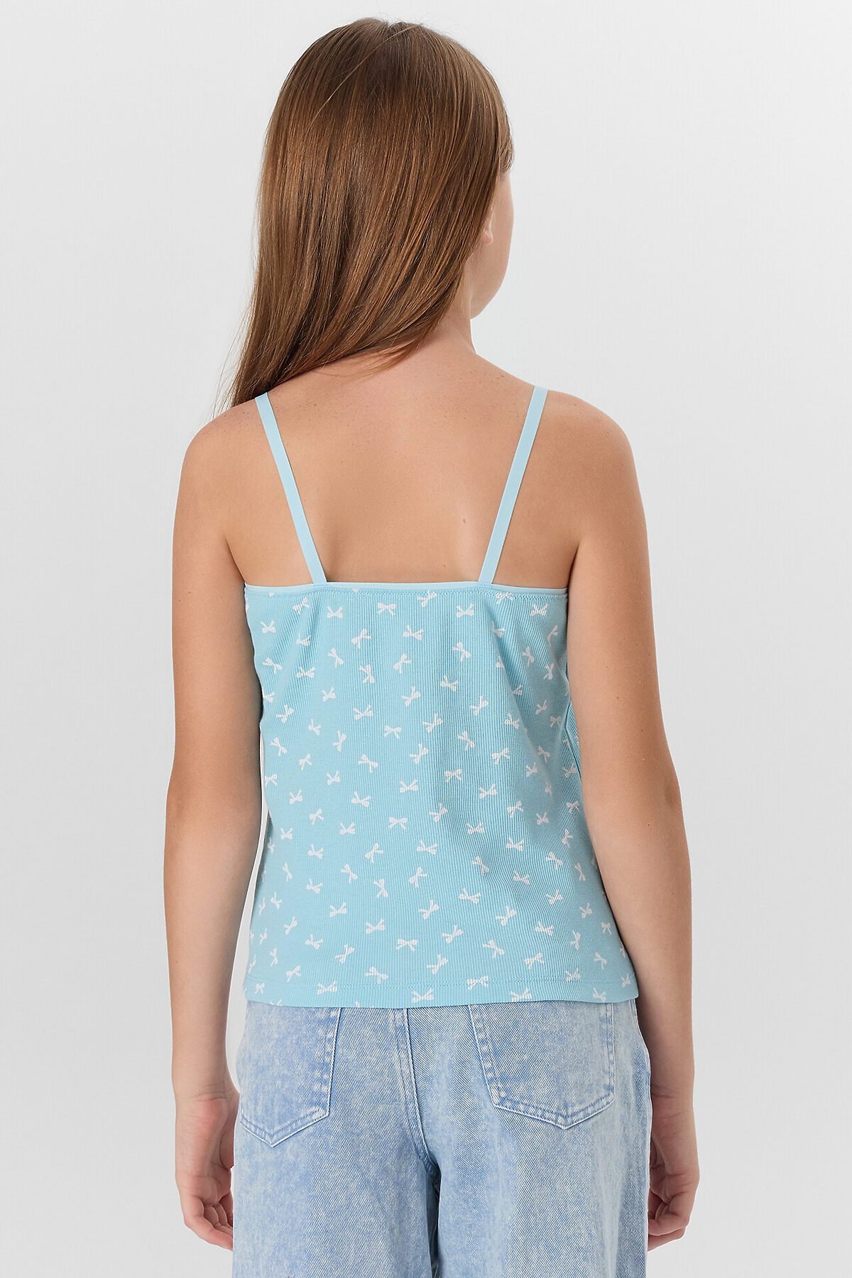 Майка прилегающего силуэта для девочек. Выполнена из трикотажной рибаны с фактурой в рубчик, что обеспечивает приятные ощущения и удобство при носке. Модель на тонких бретелях с неглубоким V-образным вырезом добавляет элегантности и изящности. Рекомендуем эту майку как дополнение к базовому детскому гардеробу.