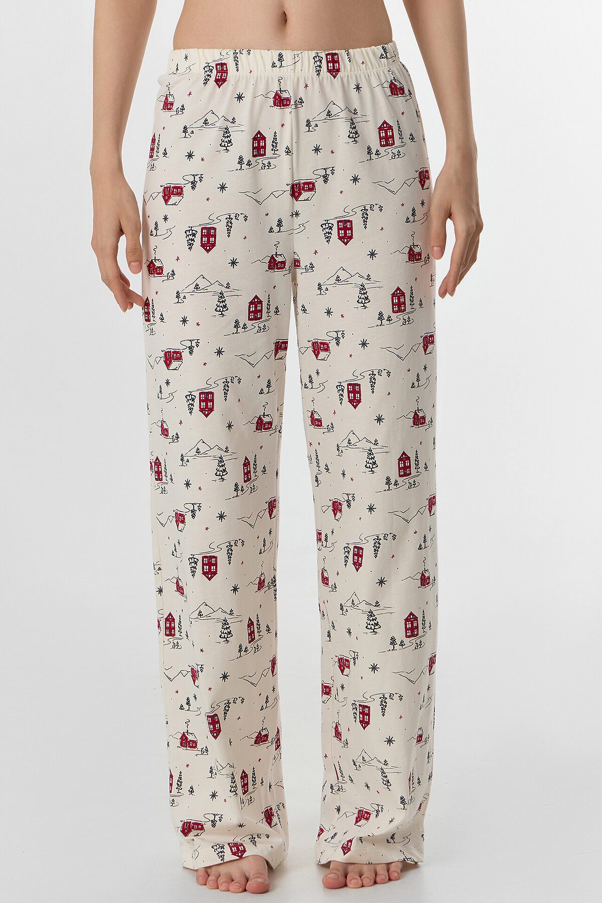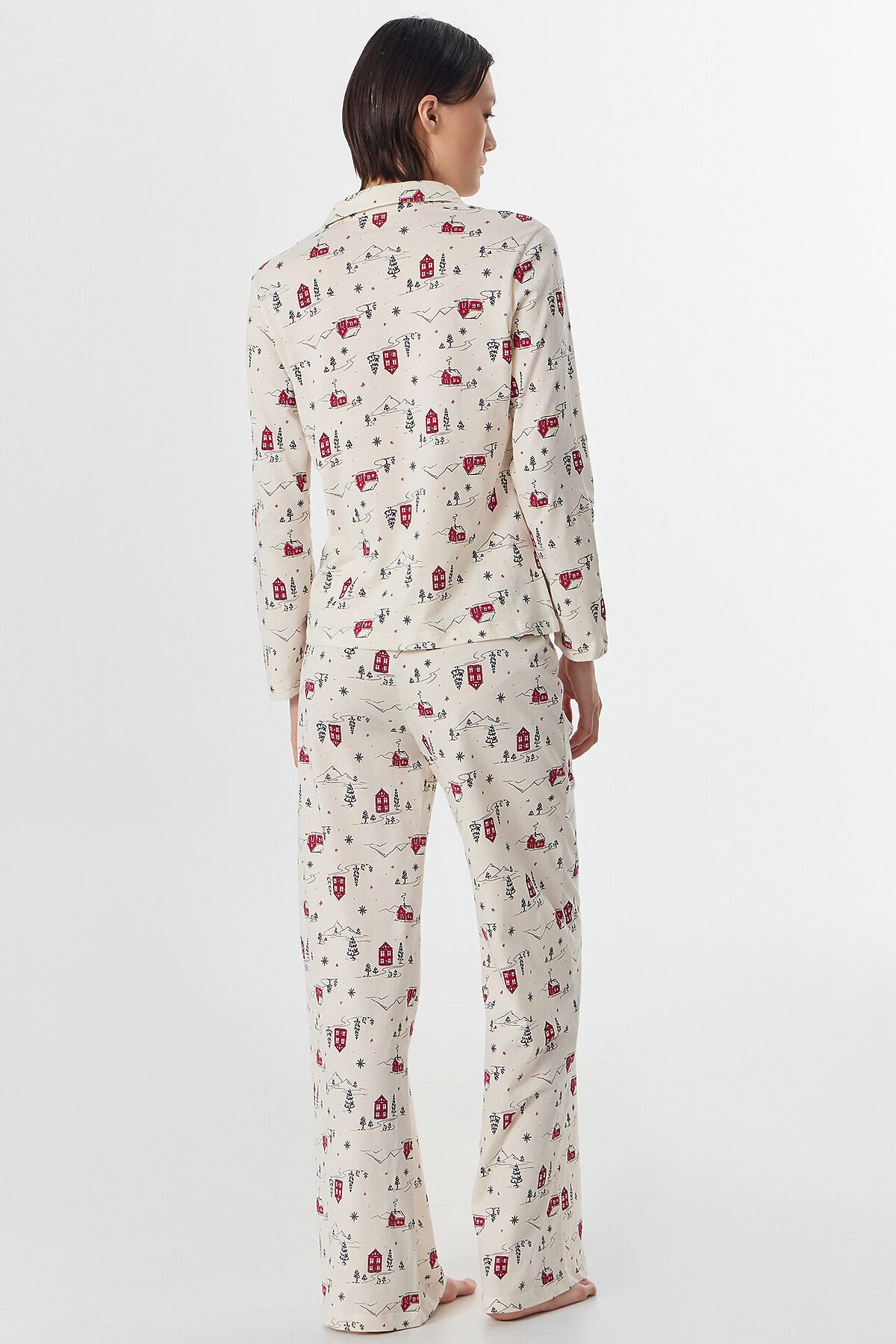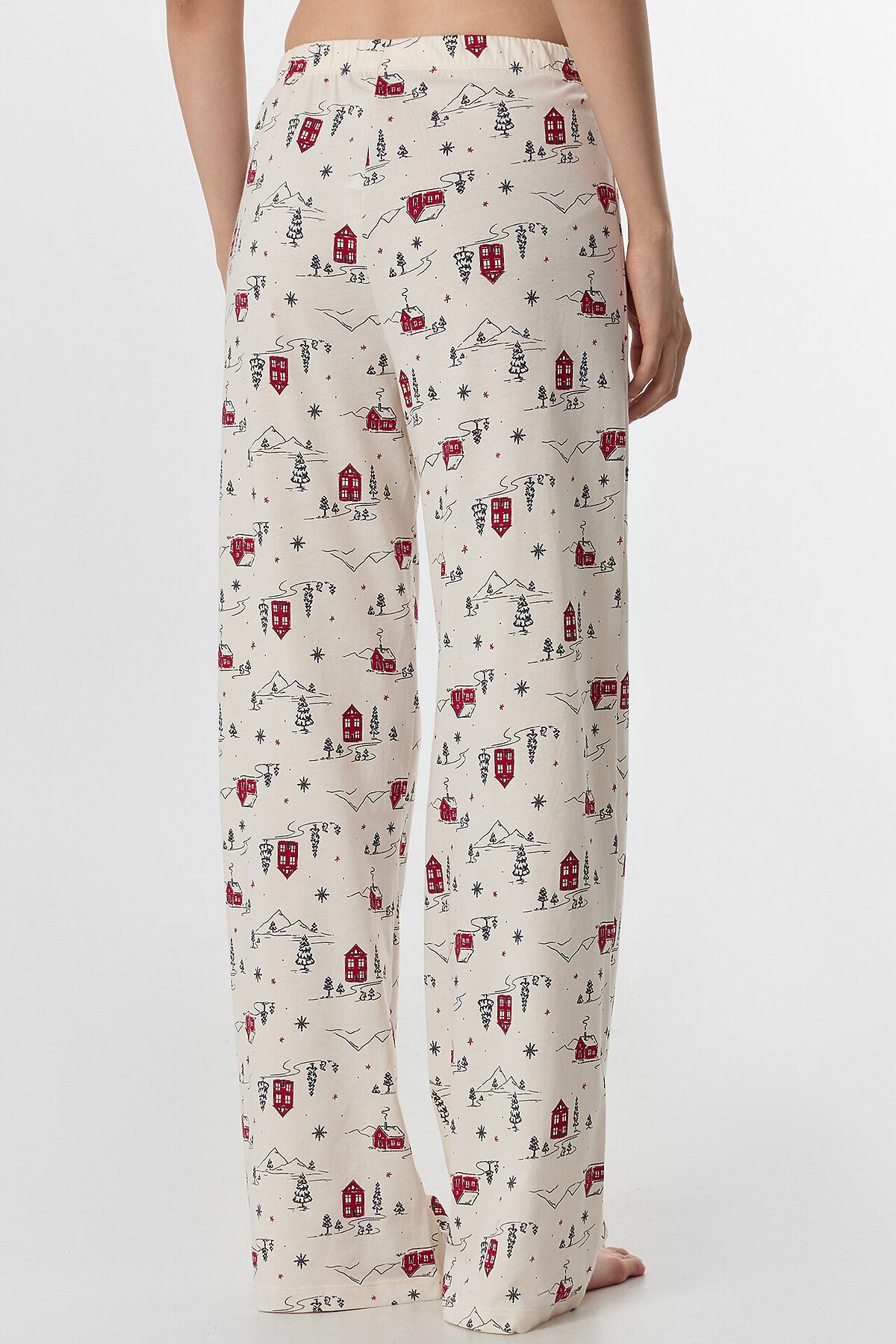 Бежевая пижама с зимним рисунком подарит вам ощущение тепла и уюта в холодные вечера. Этот очаровательный комплект состоит из удлиненного жакета и свободных брюк — идеальный выбор для спокойного сна и расслабленного отдыха.