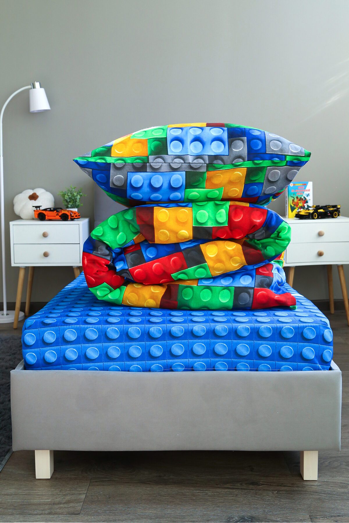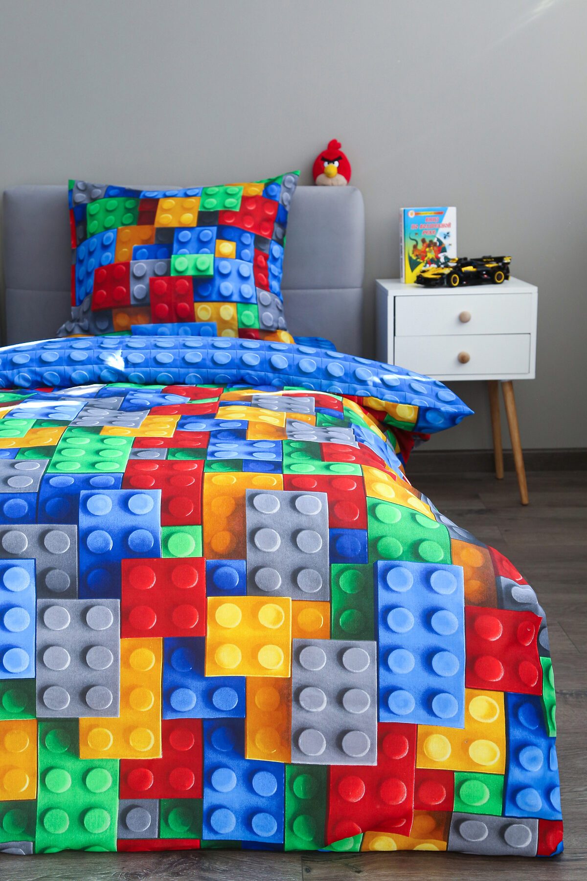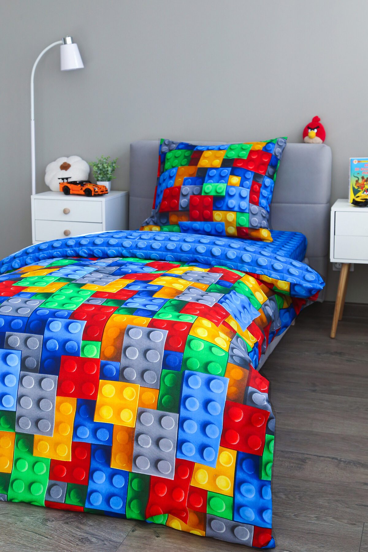 Комплект полутороспального постельного белья из хлопковой ткани. Популярный размер, который подойдет как на 1.5-спальную, так и на односпальную кровать, в том числе для детской кровати и матраса 100х200 см, 110х200 см, 120х200 см. В набор входят постельные принадлежности: пододеяльник 1 шт - 145х215 см, простынь 1 шт - 150х220 см и наволочка с клапаном 1 шт - 70х70 см для подушки 70*70 и 50 на 70. Материал бязь, натуральный 100% хлопок. Бязь обладает более высокой плотностью, чем полуторные комплекты белья из поплина, перкаля, шелковое или полисатина. Плотность ткани 120 г/кв.м., бязь - это прежде всего практичность и оптимальный выбор. Постельное белье из бязи гладкое, мягкое и плотное, поэтому требует меньше глажки. КПБ с рисунком Lego мега популярный стиль любимой детской игры и персонажей. Это 1,5 спальное КПБ подойдет тем, кто обожает конструкторы Лего. Красные и яркие акценты основа гаммы именно этой постельки. В комплект входят пододеяльник с крупными кубиками лего (красный, зеленый, желтый, синий), стильная простыня в стиле лего конструктор и цветная наволочка с lego, комплектация может незначительно отличаться от изображения в карточке. Постельное белье 1.5 спальное - крутой подарок на день рождения, чтобы украсить детский интерьер. Это всегда актуальный выбор сестре, жене, девочке и подруге, коллеге. Такой аксессуар для сна и отдыха создаст уникальный, детский, и даже молодежный стиль комнаты. Хлопковый кпб размера полуторка станет находкой для стильной детской и подростковой спальни. Принт, который понравится детям, подростку, и даже взрослым. Купите в подарок девушке, парню, брату, мальчику, ребенку непоседа. Это полуторный комплект в постель для детей и малышей разного возраста, в том числе в детскую кроватку. Универсальный подарок на любой праздник - новоселье, свадьбу молодоженам, годовщину, именины, без повода. Комплект, который подойдет для квартиры, для дачи, для дома. Это комплект постельного белья для ребенка и выбор большого количества родителей в России. Качественный детский домашний комплект, предметы которого пропитаны веселым и задорным настроением. 1,5 спальный комплект постельного белья для тех, кто выбирает стильный домашний текстиль, который оценят как взрослые, так и дети! Комплект упакован в стильную и качественную упаковку и отлично подойдет в качестве подарка.