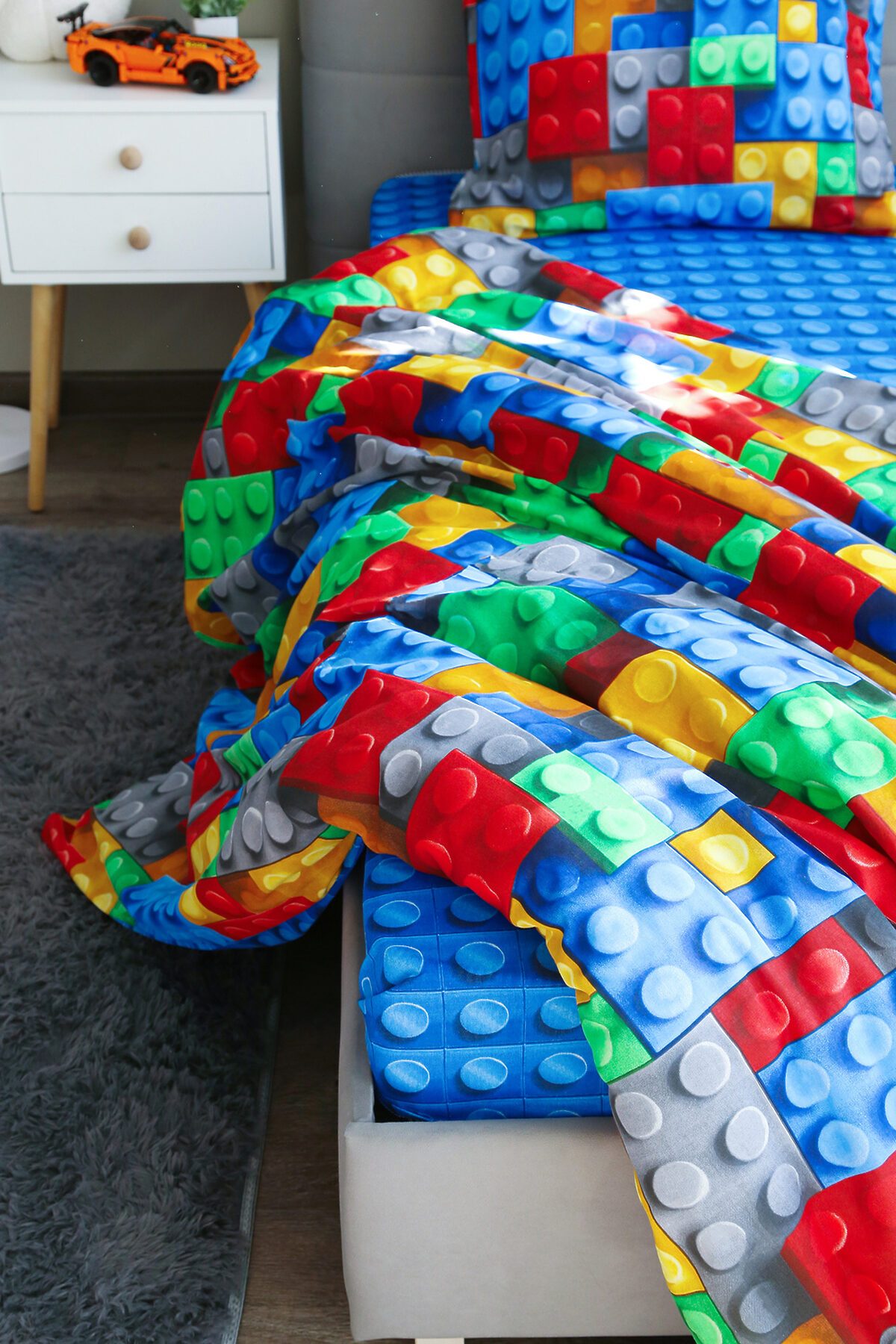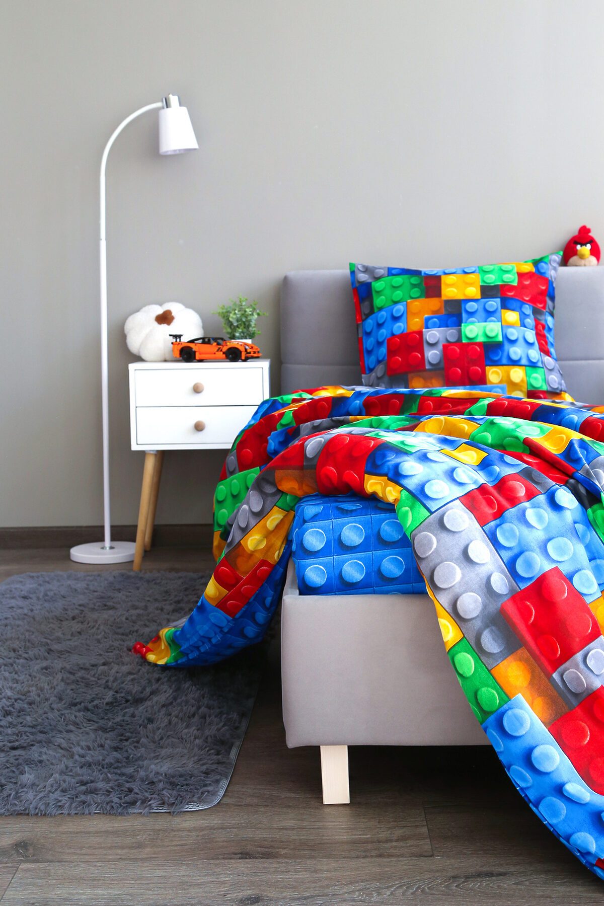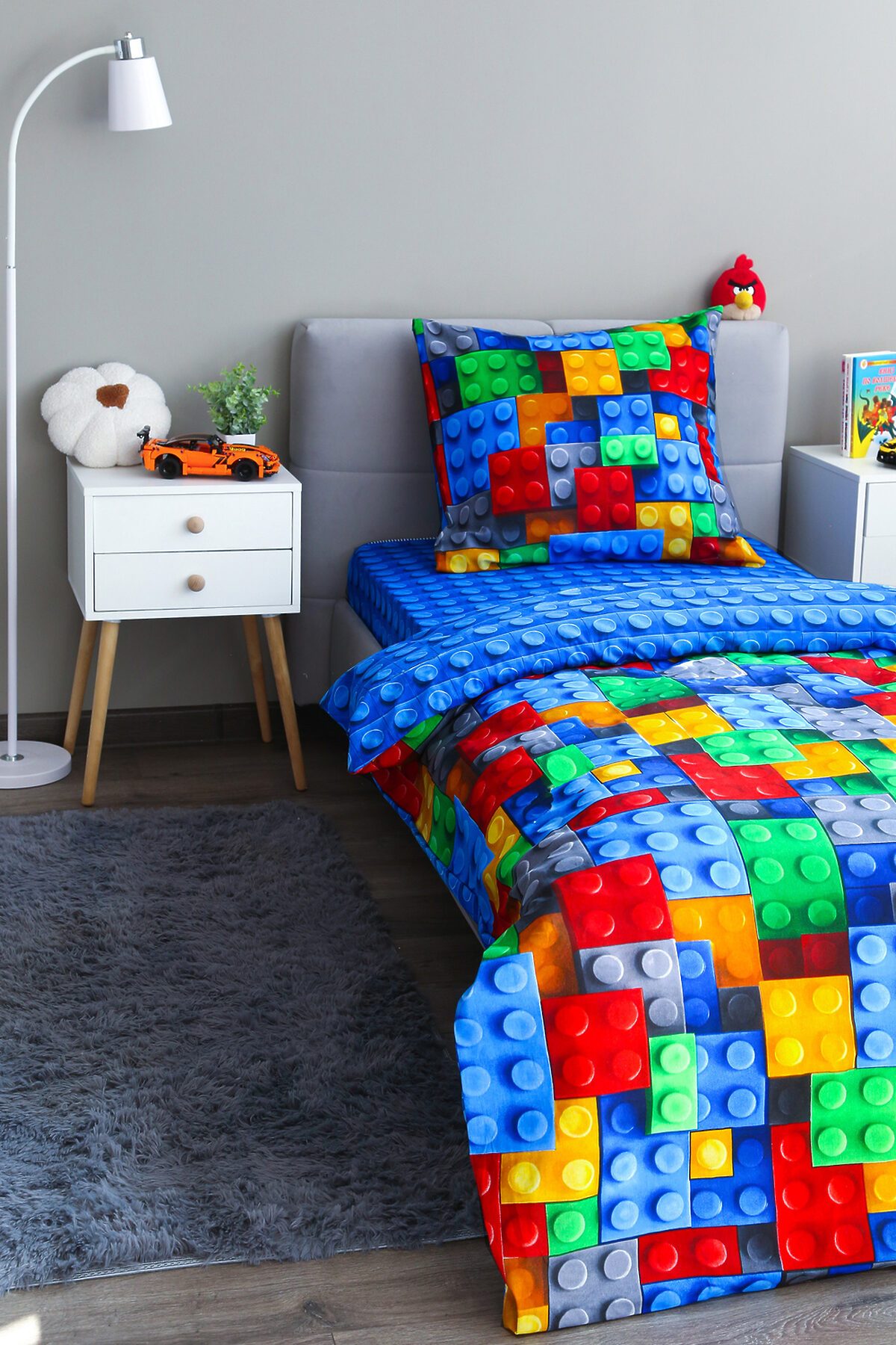 Комплект полутороспального постельного белья из хлопковой ткани. Популярный размер, который подойдет как на 1.5-спальную, так и на односпальную кровать, в том числе для детской кровати и матраса 100х200 см, 110х200 см, 120х200 см. В набор входят постельные принадлежности: пододеяльник 1 шт - 145х215 см, простынь 1 шт - 150х220 см и наволочка с клапаном 1 шт - 70х70 см для подушки 70*70 и 50 на 70. Материал бязь, натуральный 100% хлопок. Бязь обладает более высокой плотностью, чем полуторные комплекты белья из поплина, перкаля, шелковое или полисатина. Плотность ткани 120 г/кв.м., бязь - это прежде всего практичность и оптимальный выбор. Постельное белье из бязи гладкое, мягкое и плотное, поэтому требует меньше глажки. КПБ с рисунком Lego мега популярный стиль любимой детской игры и персонажей. Это 1,5 спальное КПБ подойдет тем, кто обожает конструкторы Лего. Красные и яркие акценты основа гаммы именно этой постельки. В комплект входят пододеяльник с крупными кубиками лего (красный, зеленый, желтый, синий), стильная простыня в стиле лего конструктор и цветная наволочка с lego, комплектация может незначительно отличаться от изображения в карточке. Постельное белье 1.5 спальное - крутой подарок на день рождения, чтобы украсить детский интерьер. Это всегда актуальный выбор сестре, жене, девочке и подруге, коллеге. Такой аксессуар для сна и отдыха создаст уникальный, детский, и даже молодежный стиль комнаты. Хлопковый кпб размера полуторка станет находкой для стильной детской и подростковой спальни. Принт, который понравится детям, подростку, и даже взрослым. Купите в подарок девушке, парню, брату, мальчику, ребенку непоседа. Это полуторный комплект в постель для детей и малышей разного возраста, в том числе в детскую кроватку. Универсальный подарок на любой праздник - новоселье, свадьбу молодоженам, годовщину, именины, без повода. Комплект, который подойдет для квартиры, для дачи, для дома. Это комплект постельного белья для ребенка и выбор большого количества родителей в России. Качественный детский домашний комплект, предметы которого пропитаны веселым и задорным настроением. 1,5 спальный комплект постельного белья для тех, кто выбирает стильный домашний текстиль, который оценят как взрослые, так и дети! Комплект упакован в стильную и качественную упаковку и отлично подойдет в качестве подарка.
