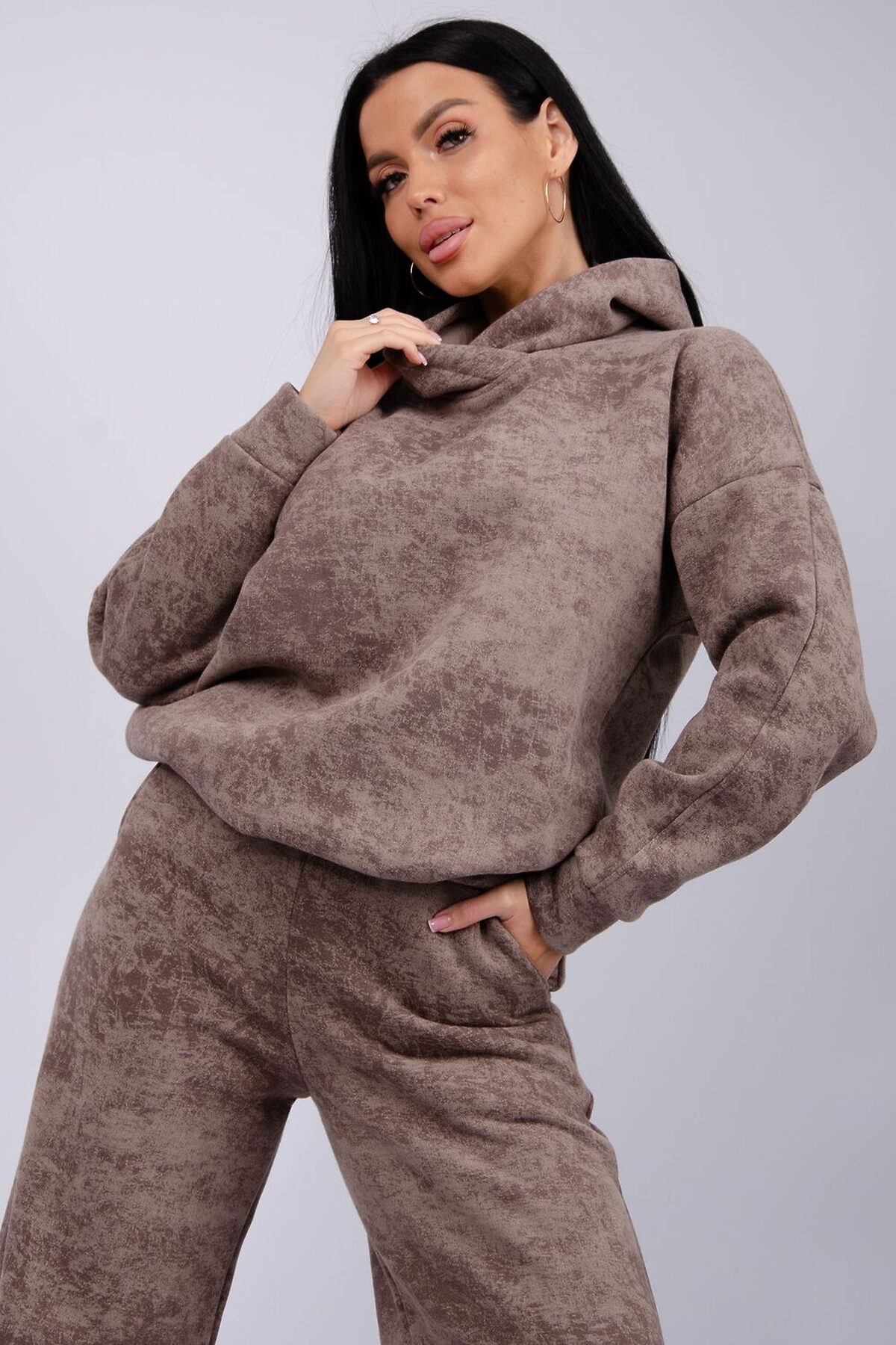 Теплый женский спортивный костюм из плотного футера, который выполнен из 3-х ниточного трикотажного полотна с начесом. Утепленное худи прямого силуэта с втачным спущенным рукавом и капюшоном, брюки палаццо на резинке свободного кроя подходит для прогулок и занятия спортом в прохладную погоду. Благодаря натуральному составу ткани, костюм спортивный весенний прекрасно подходит для прохладной погоды, он выполнен из мягкого хлопка с лицевой стороны и с начесом внутри.