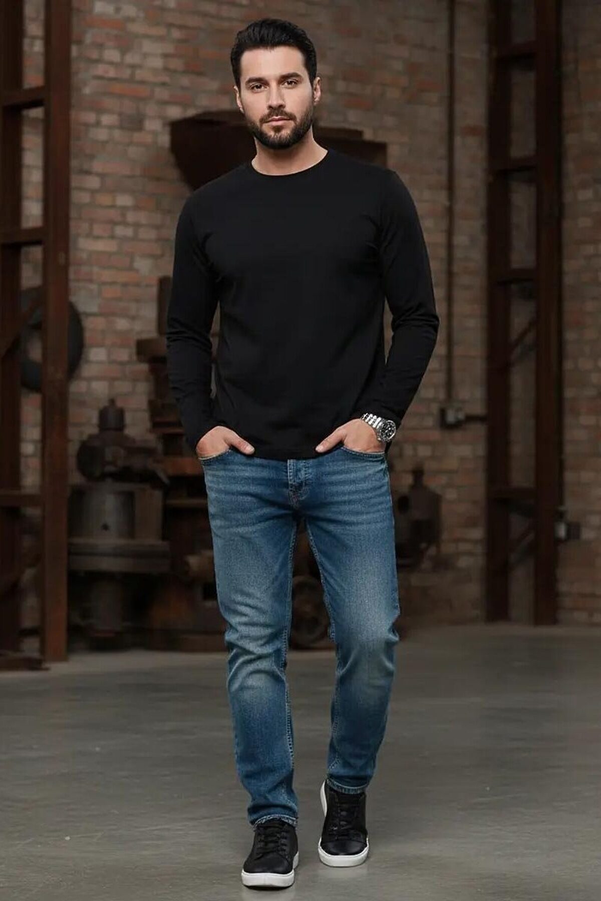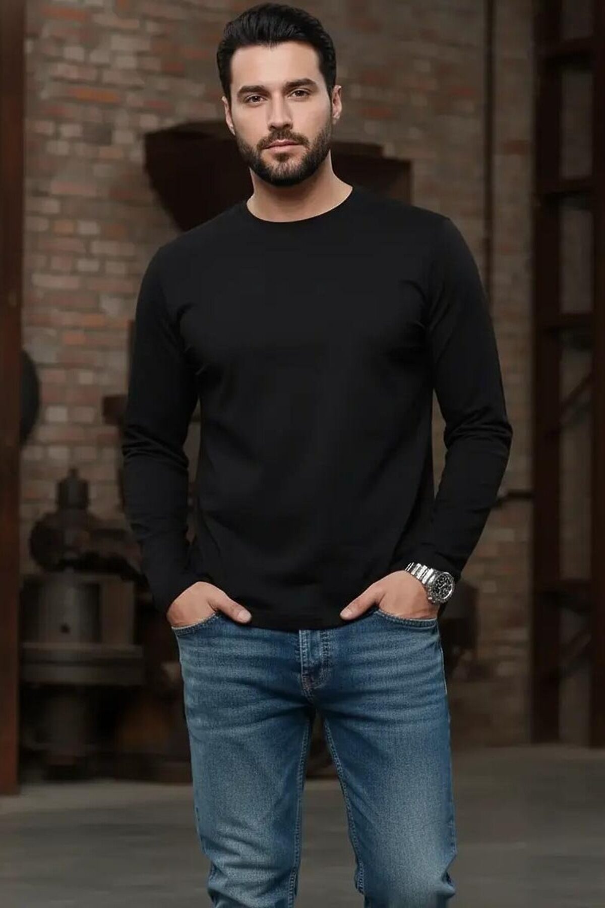 Мужская футболка F5, Regular fit (полуприлегающий силуэт), круглый вырез горловины, длинный рукав. Выполнена из классического трикотажного полотна.