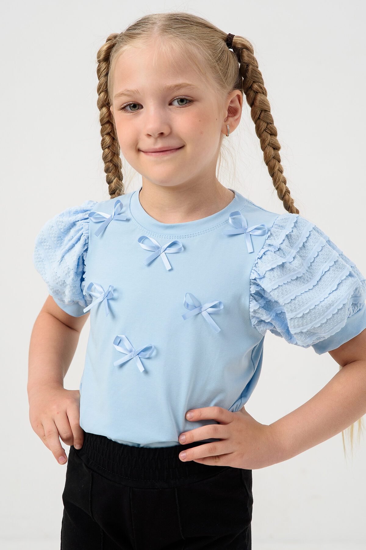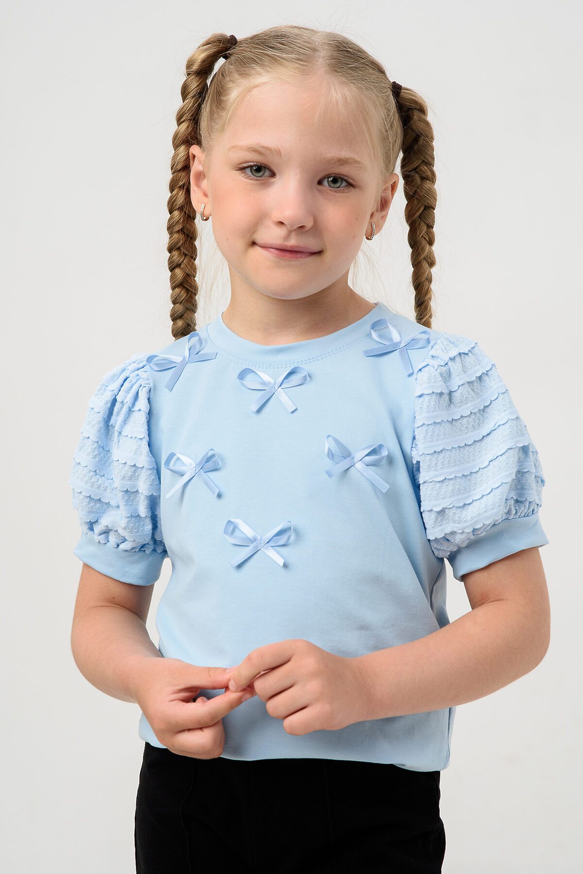 Школьная блузка с пышными рукавами украсит и дополнит любой образ в школу. Красивый джемпер с бантиками для девочек подростков на каждый день. Это отличный вариант для подарка на новый год.