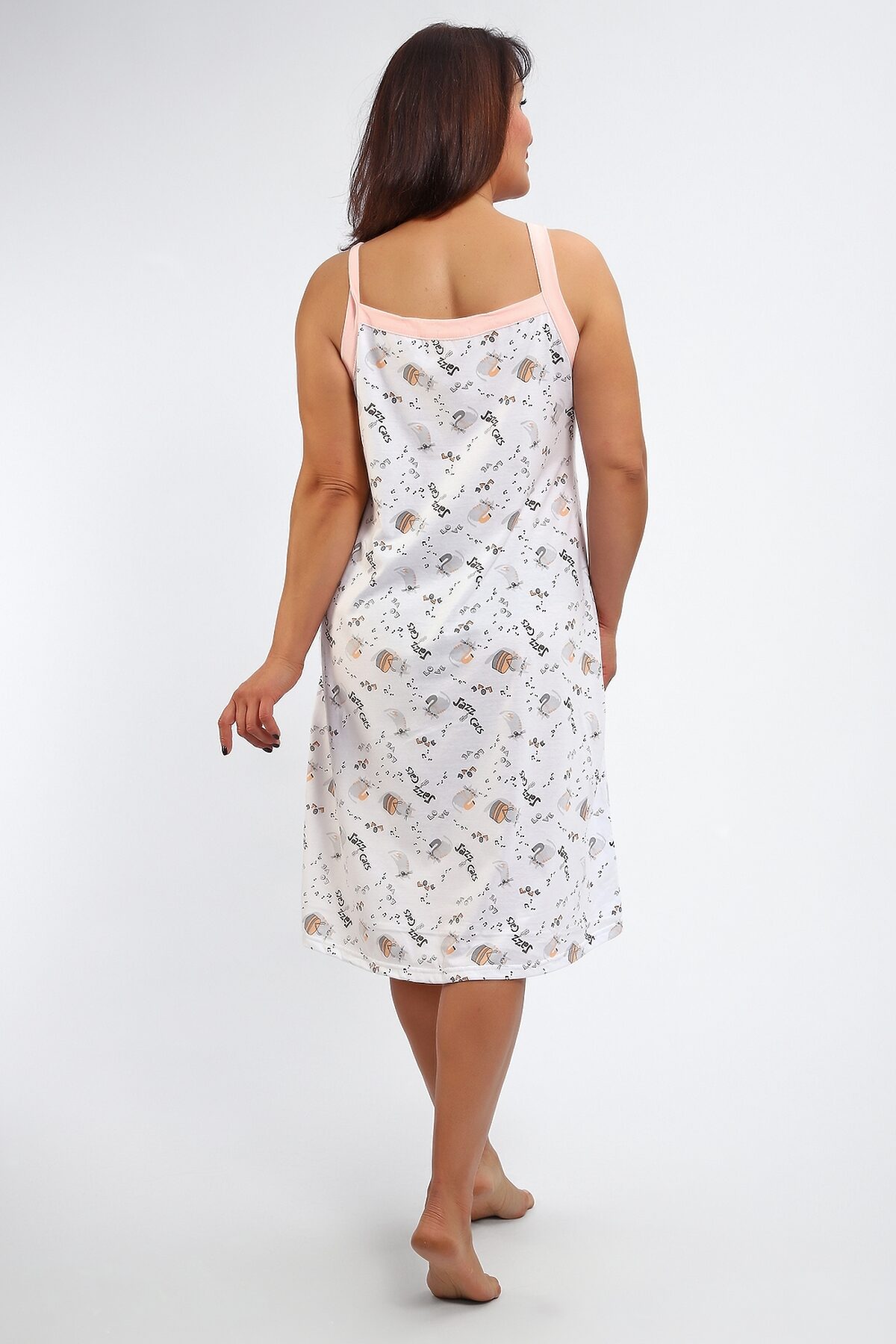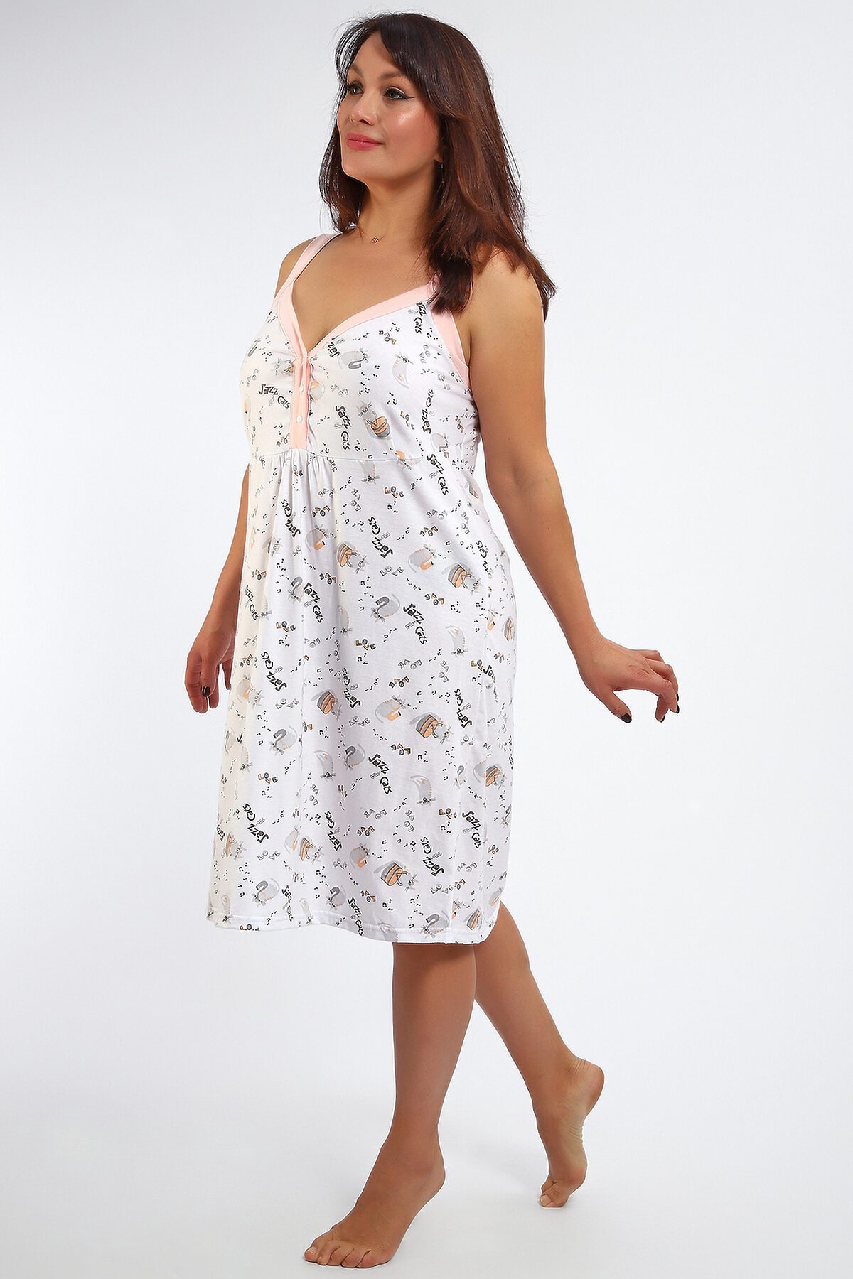 Сорочка женская без рукава на брителях . Данная модель выполнена из трикотажного полотна кулирка ( хлопок 100%). Полочка отрезная с кнопками. Горловина обработана широкой окантовкой. Отличная модель для сна и кормления.