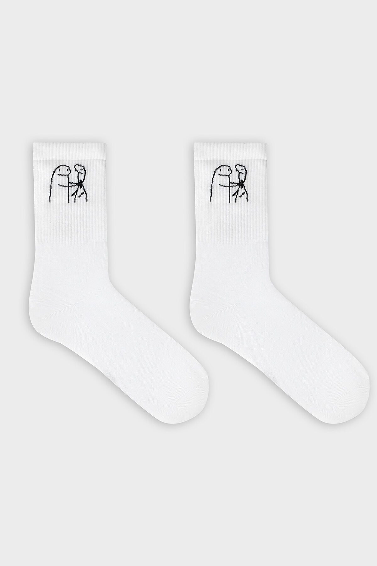 рис.3229 Носок высокий с плотным бортом и рисунком в виде мема.