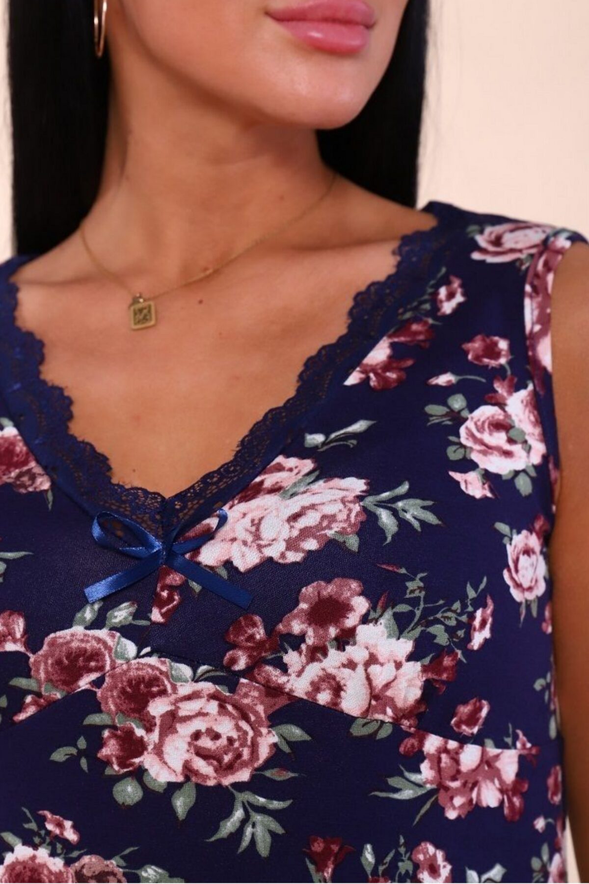 Ночная сорочка с кружевом из вискозы (миди) - маленькая женская радость. Модель выполнена из вискозы (95%) с добавлением эластана (5%). Имеет V-образный вырез, свободный покрой и кружевные декоративные элементы. Длина сорочки миди. Доступна в богатом темно-синем цвете и размерах (от 48 до 58).