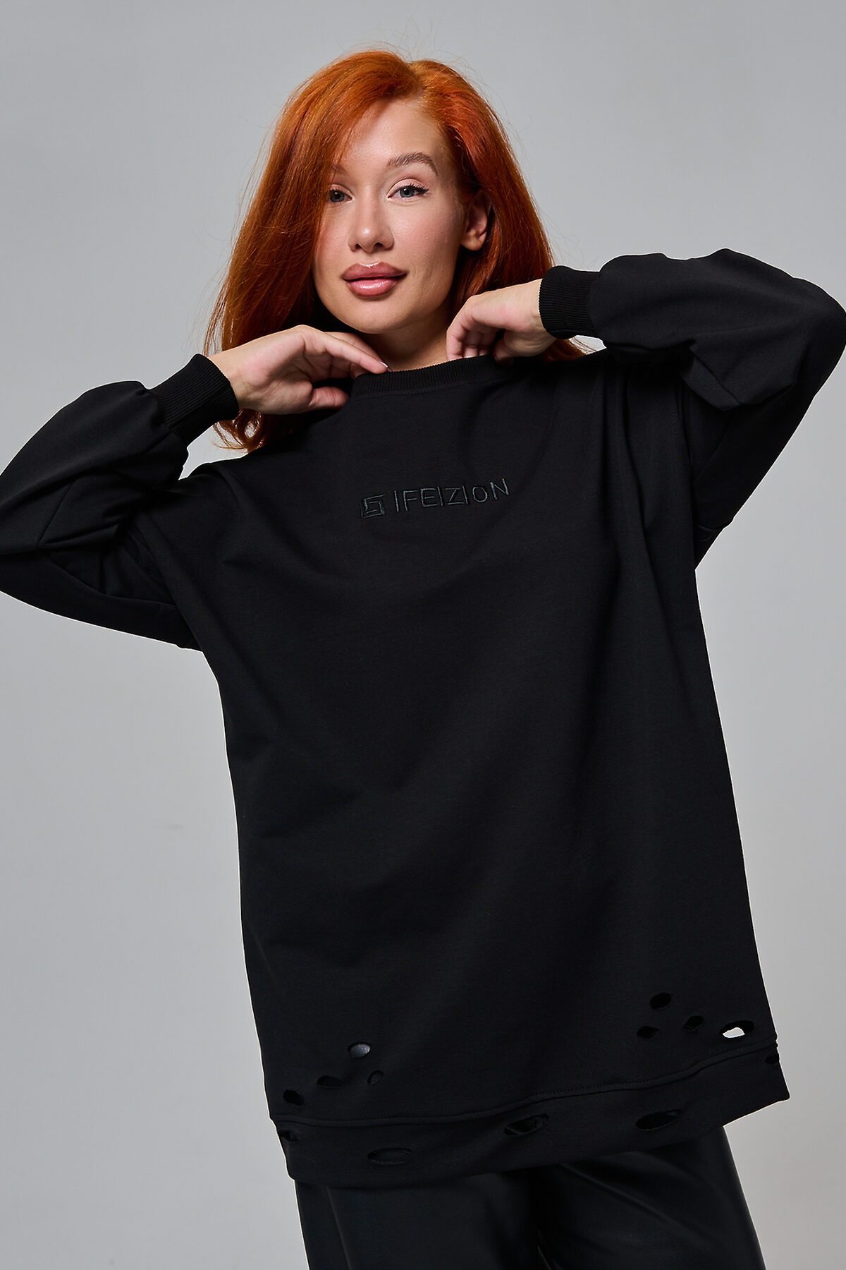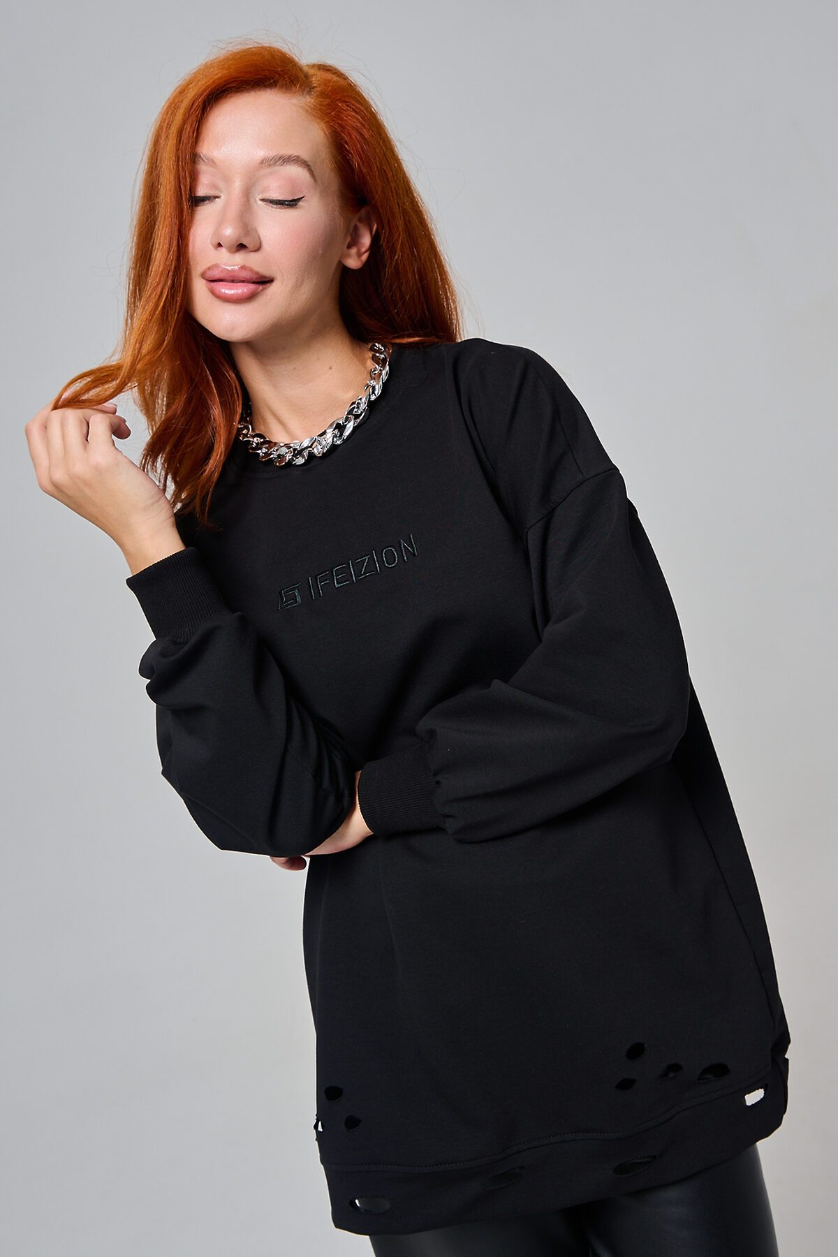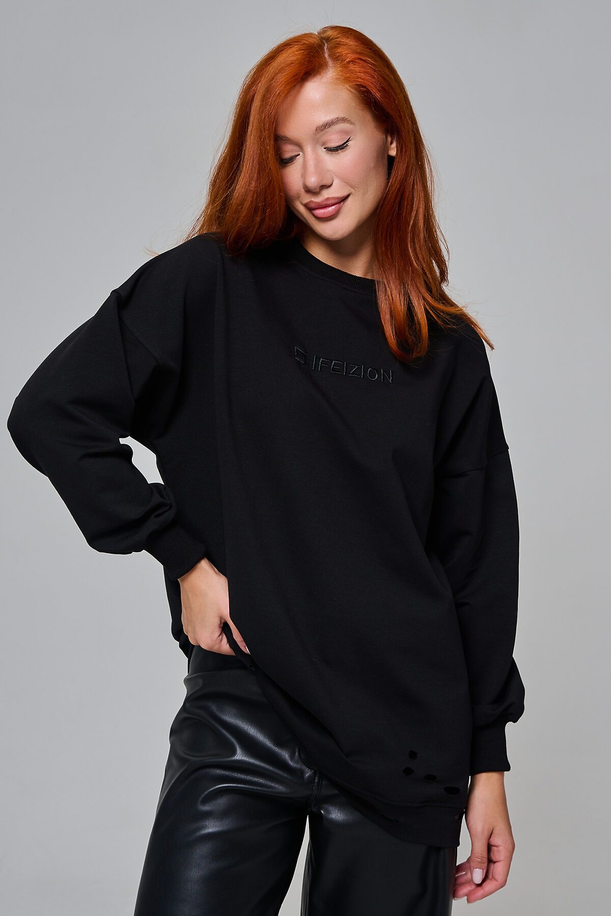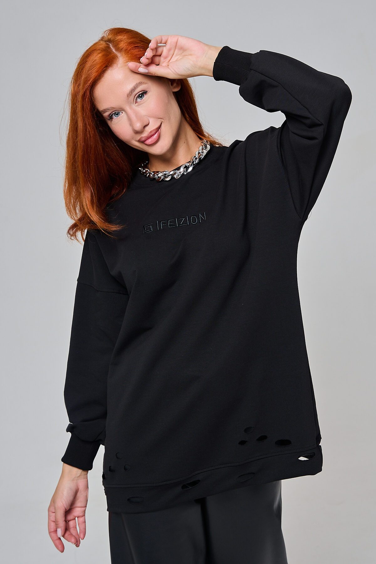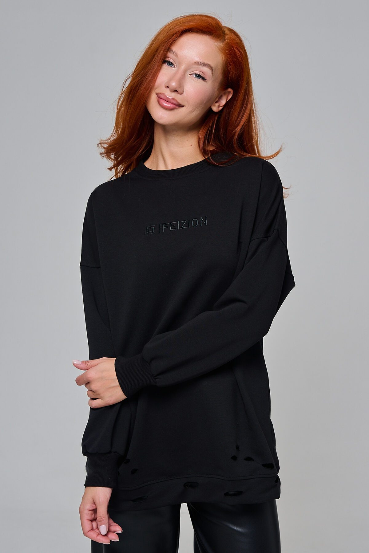 Толстовка свободного кроя - оверсайз с вышивкой на полочке.