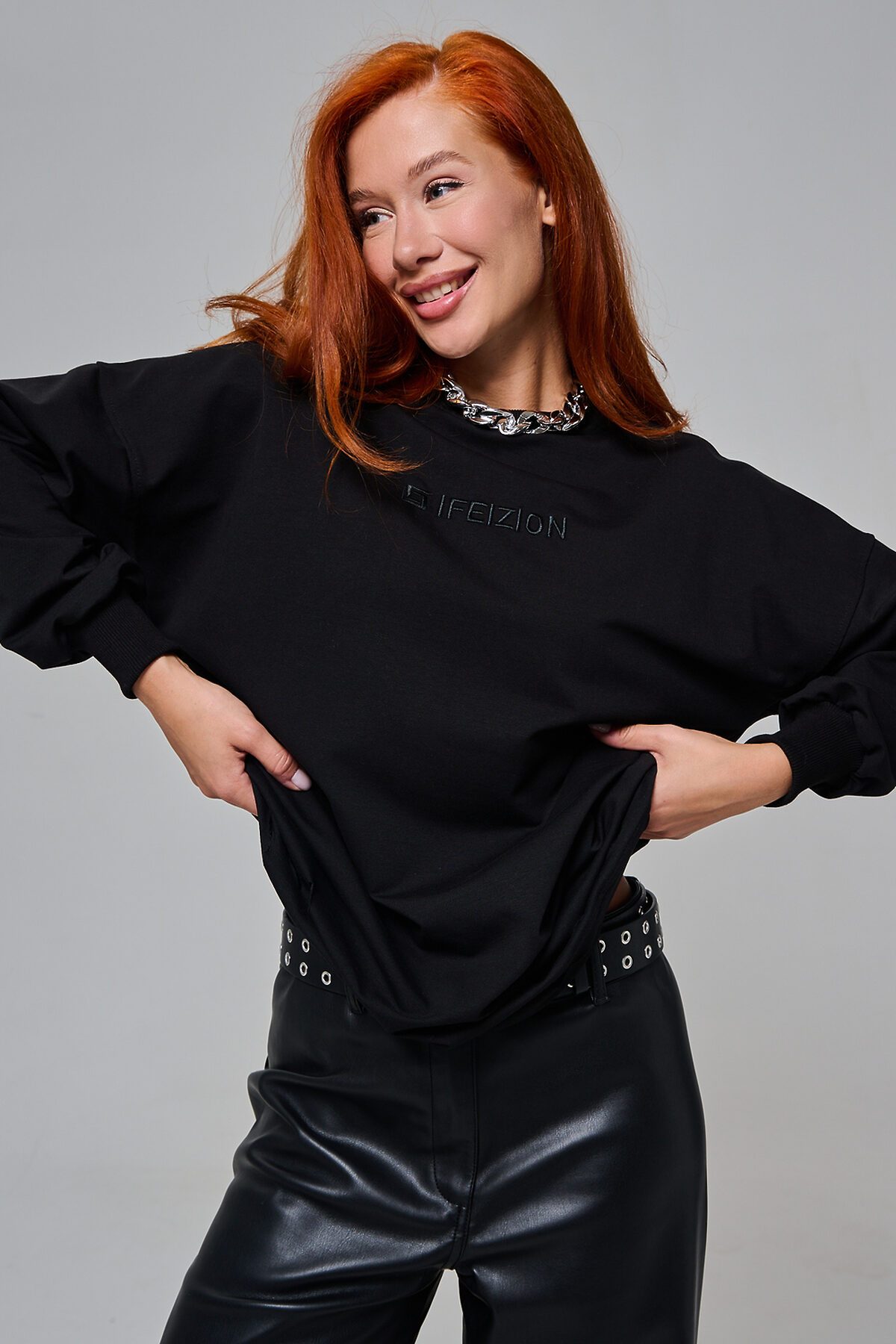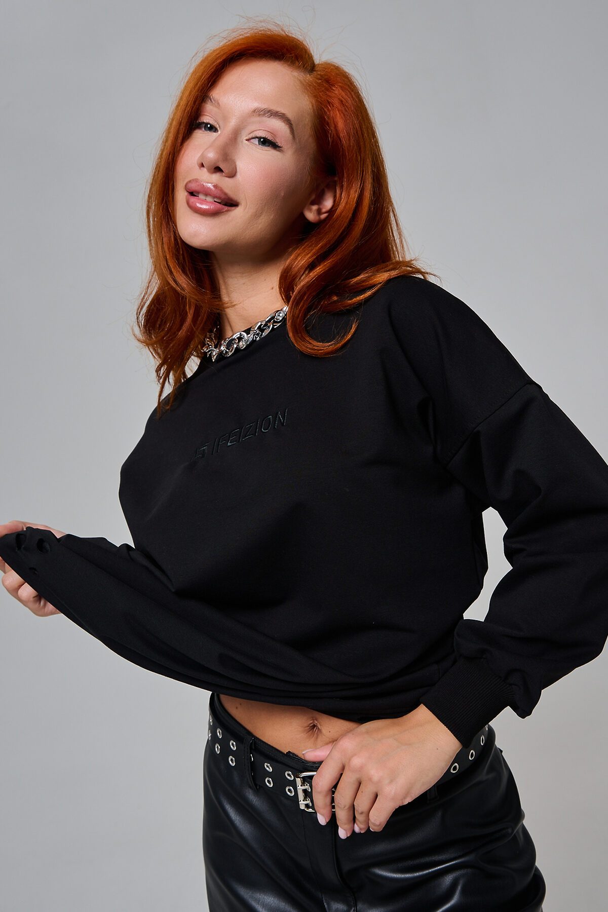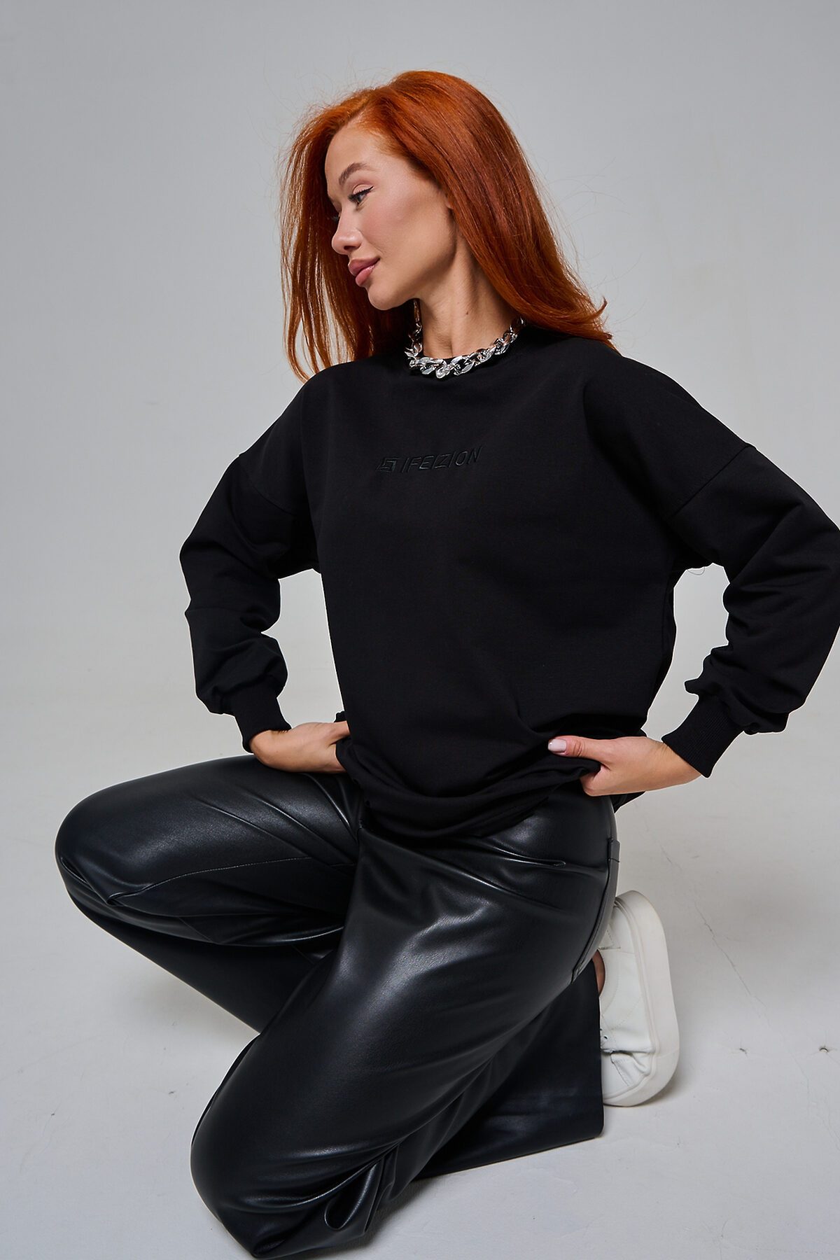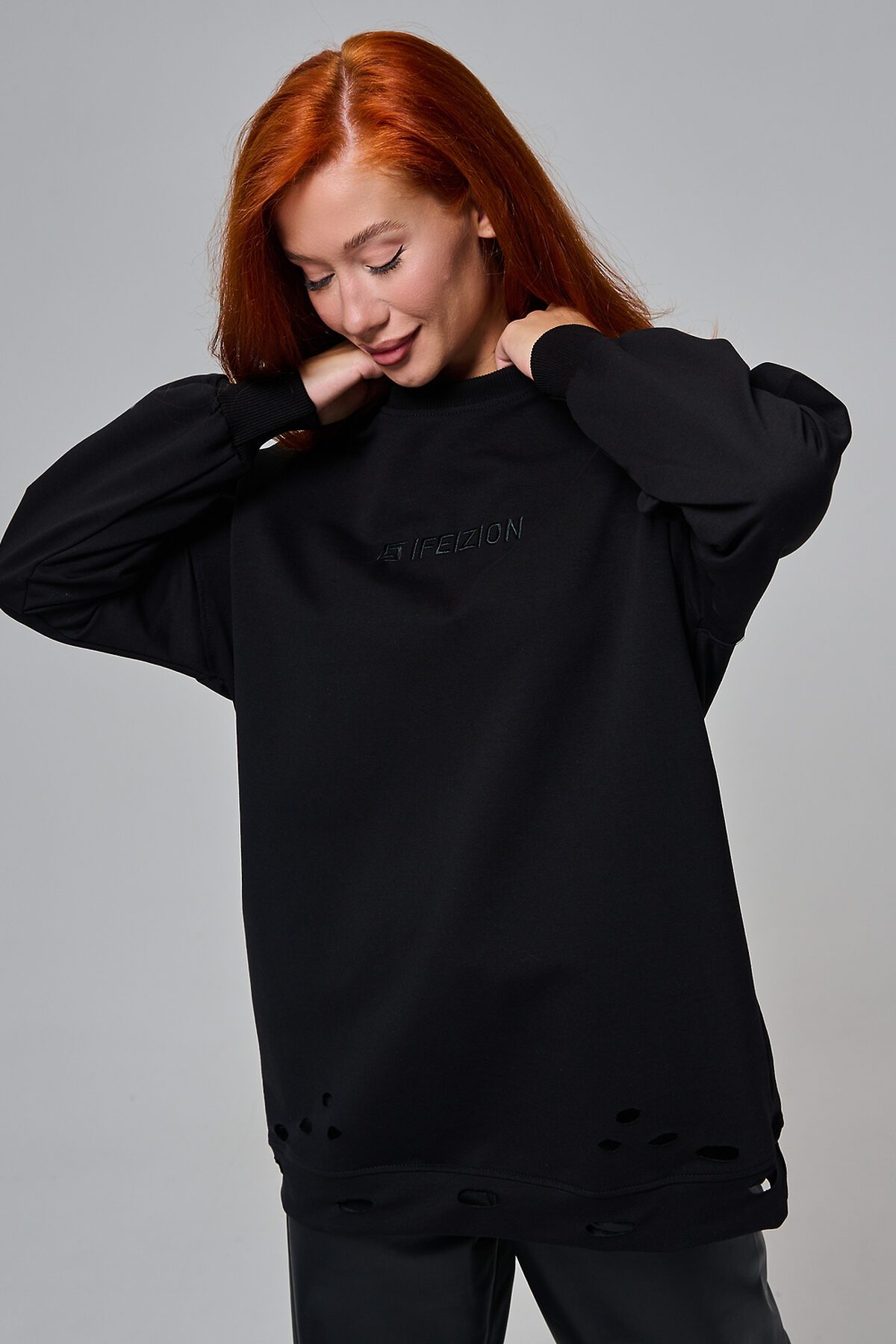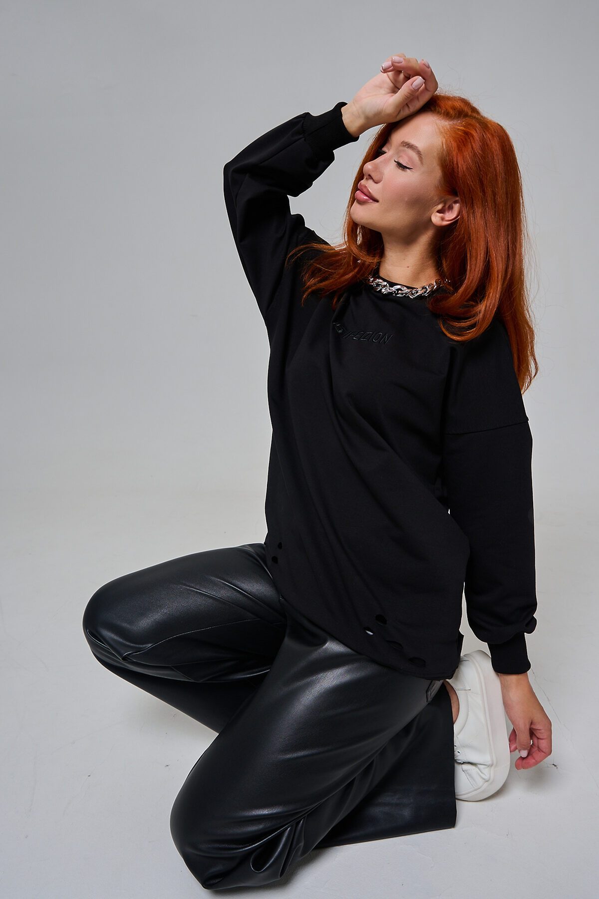 Толстовка свободного кроя - оверсайз с вышивкой на полочке.