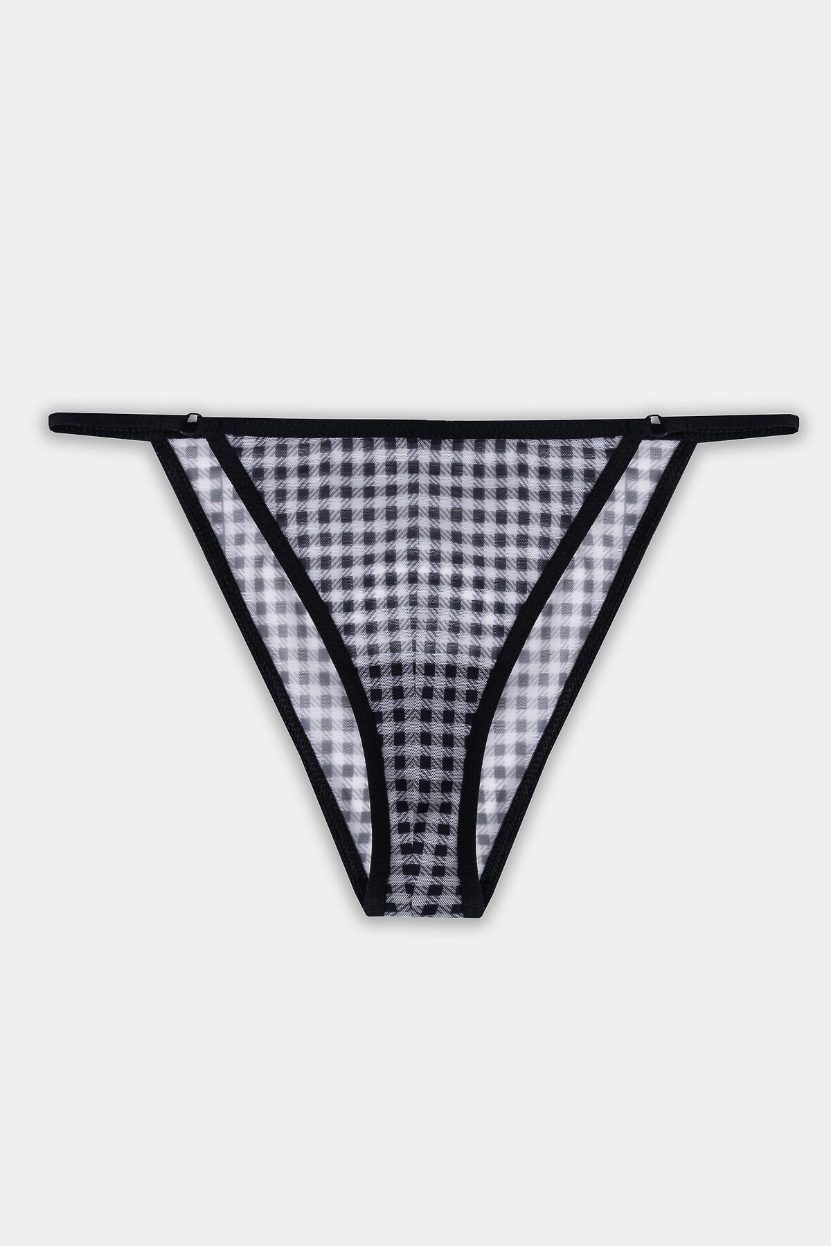 Интригующие женские бразилиана с классической линей талии. Трусики выполнены из ультралегкого полупрозрачного сетчатого полотна. Срезы бразилиана обработаны тесьмой. Изюминкой трусиков являются вырезы в боковых частях. Очаровательно!