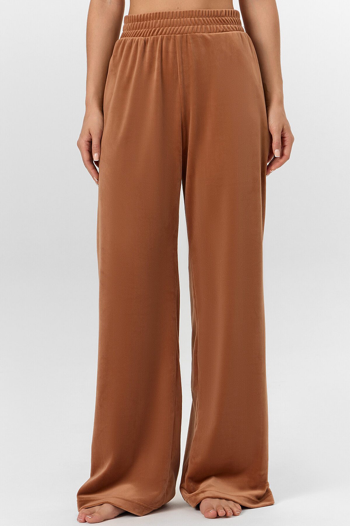 Серые велюровые брюки станут любимым предметом для комфортного отдыха дома в прохладное время года. Модель свободного кроя с высокой посадкой на талии создает элегантный силуэт и обеспечивает комфорт в течение всего дня.