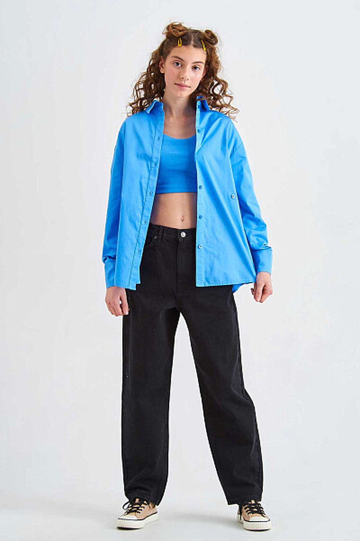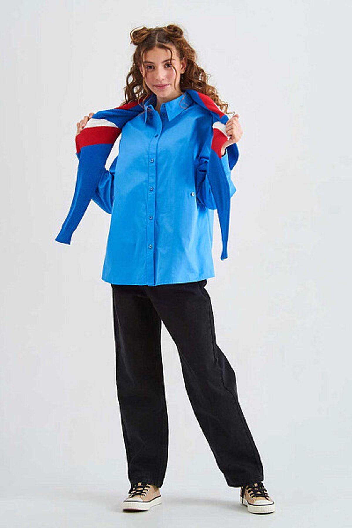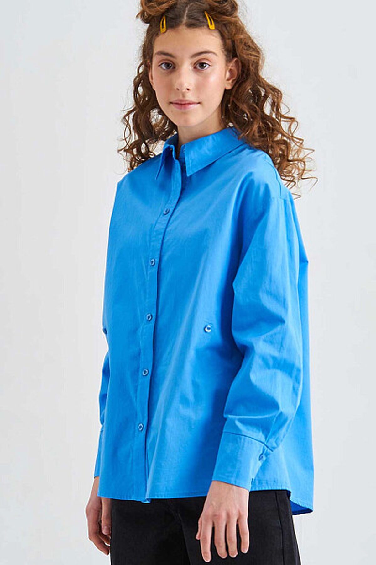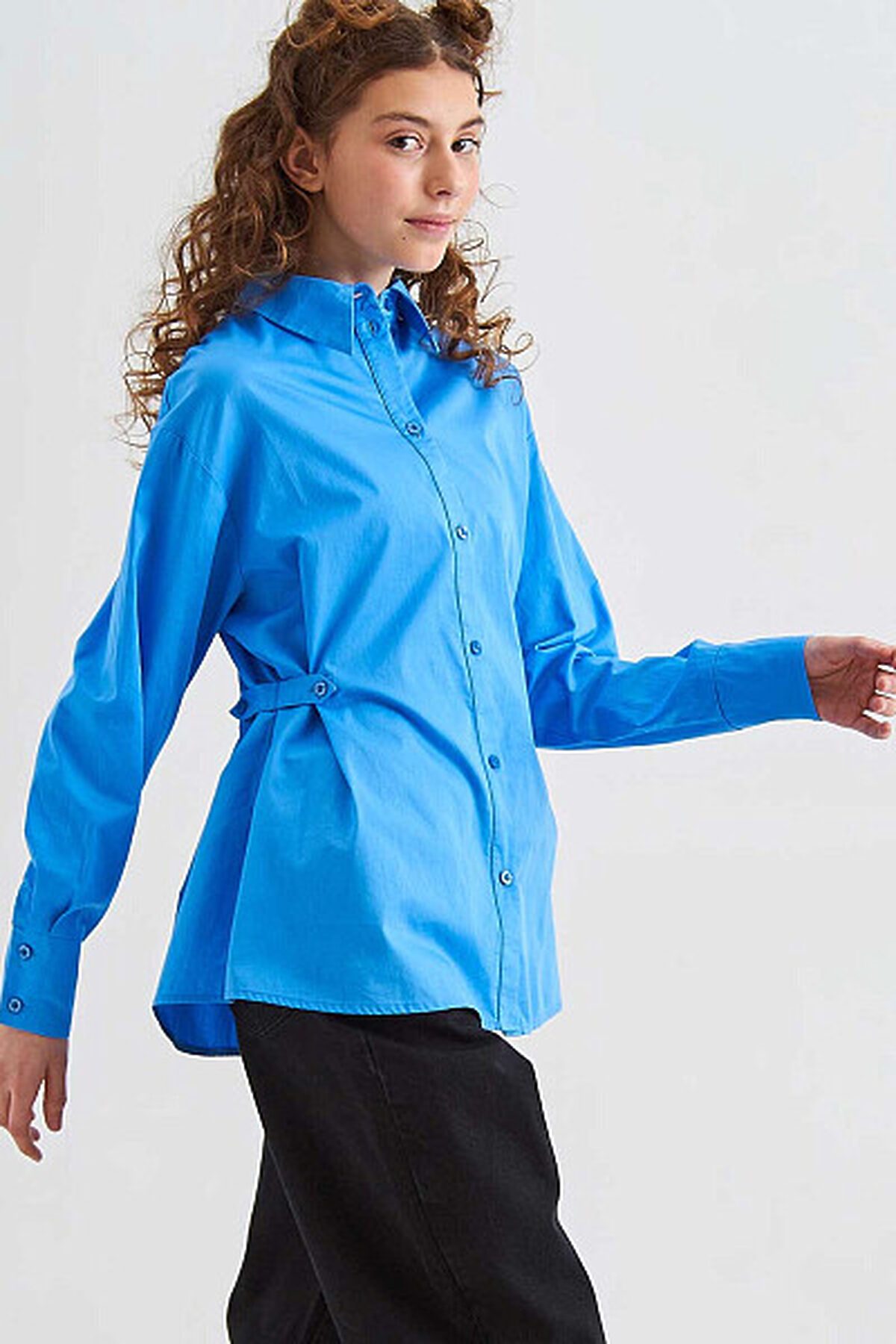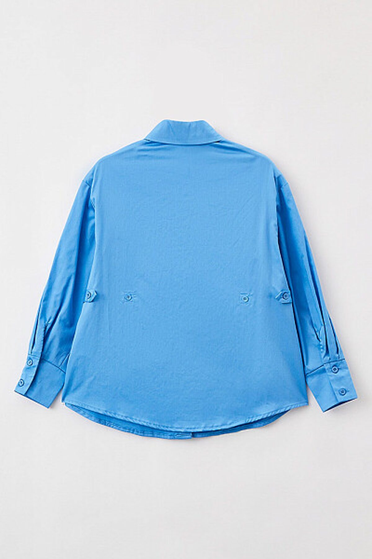 Блузка из хлопчатобумажной ткани с отложным воротником, рукав с удлиненной манжетой , фигурный низ.Стильная модель с разными вариантами ношения, по бокам есть возможность регулировки по ширине изделия, что позволяет менять внешний вид блузки: сделать ее приталенной либо оверсайз.