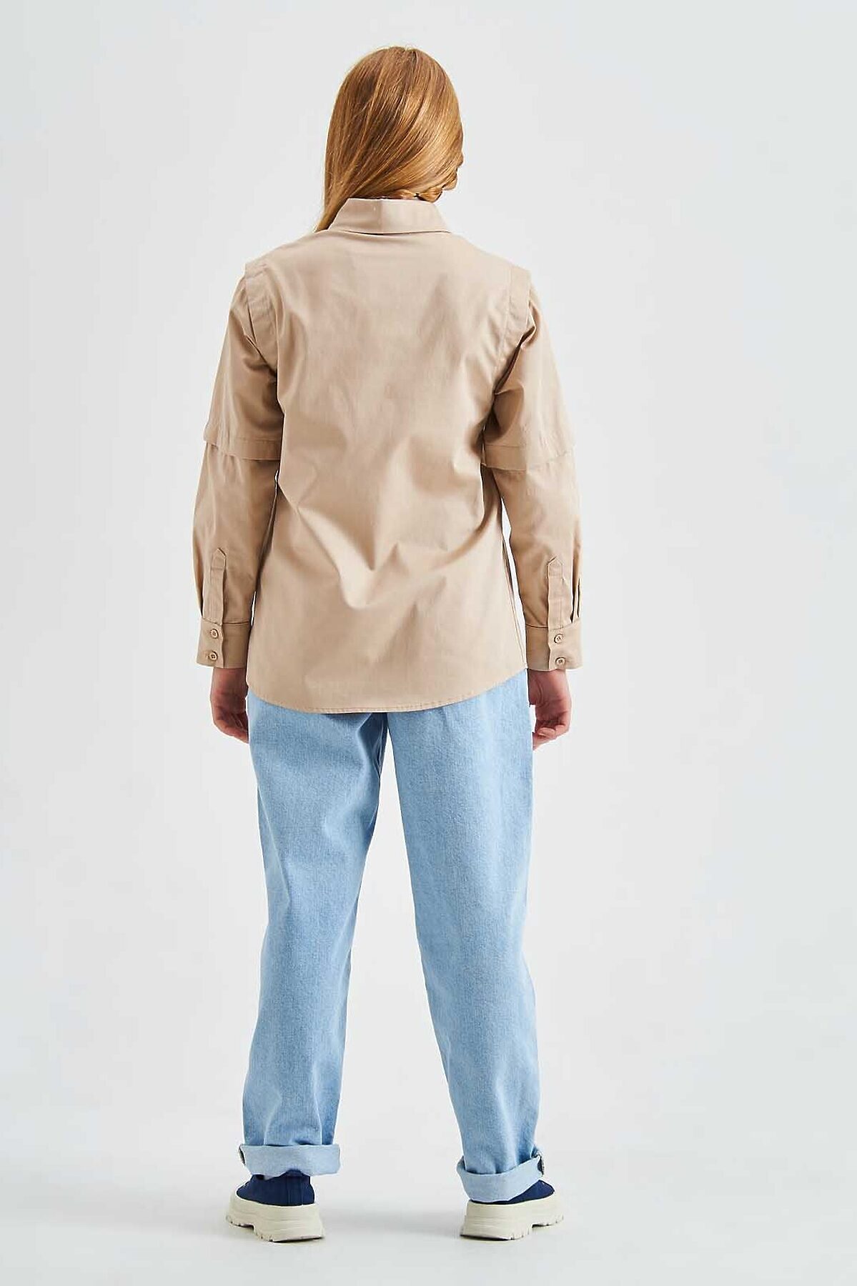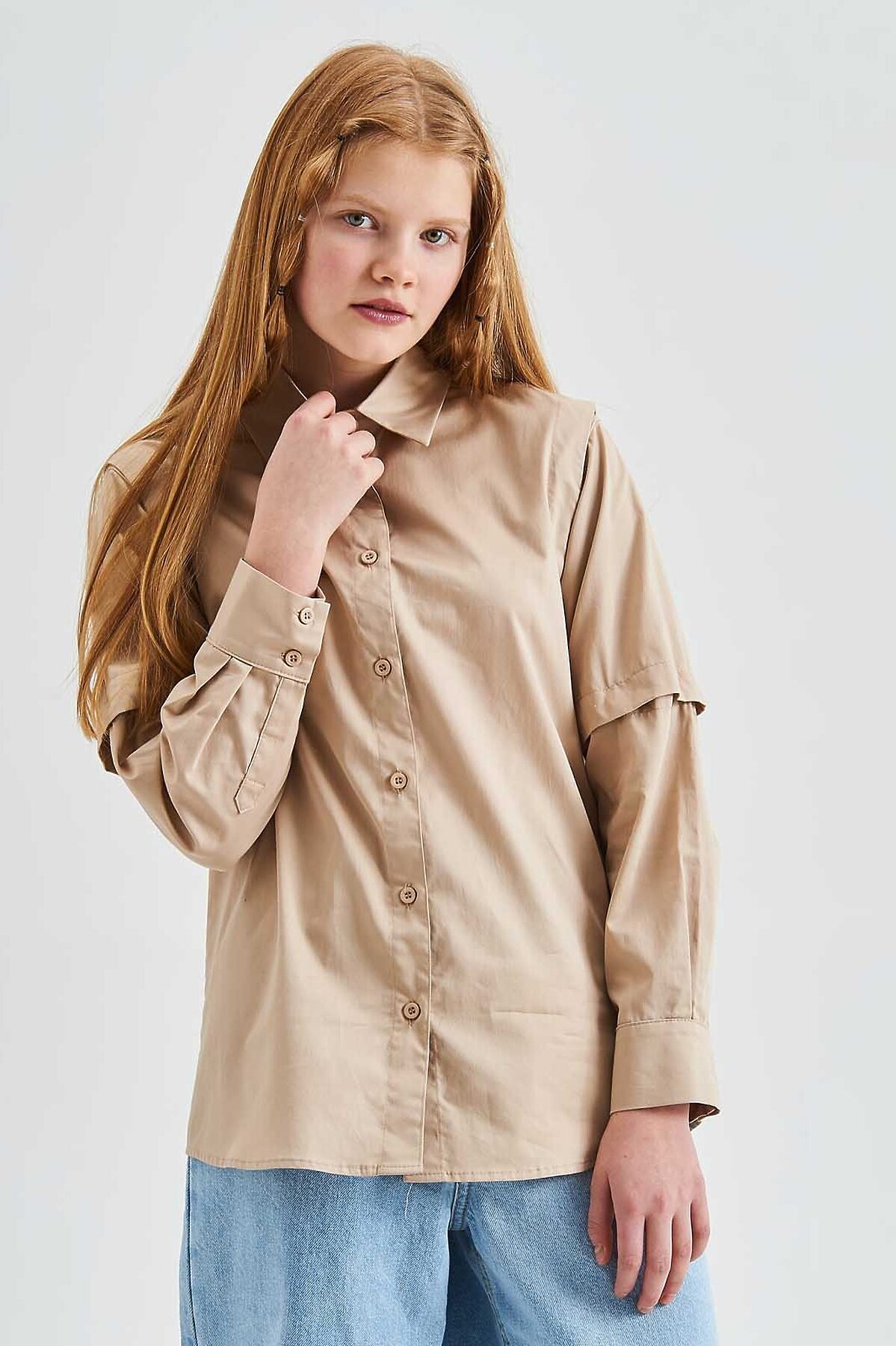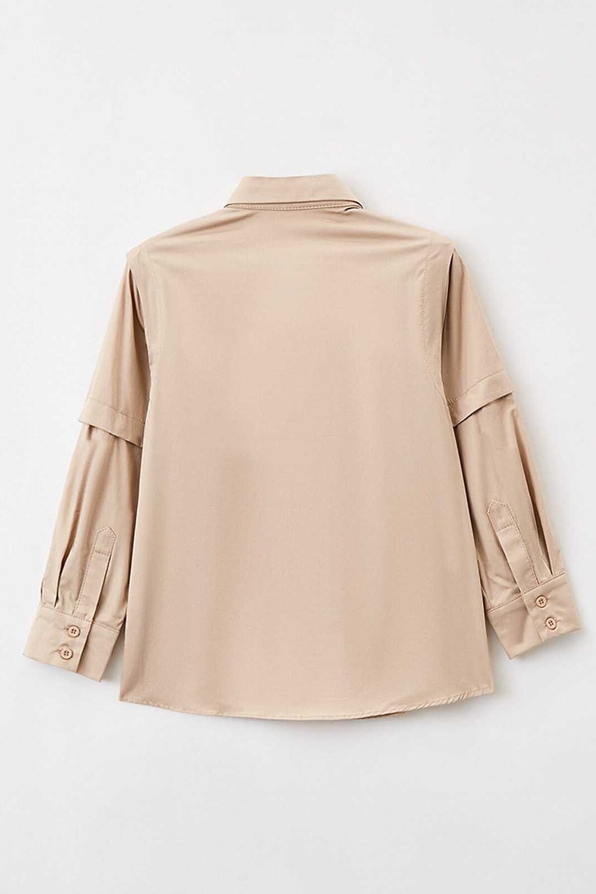 Блузка-трансформер из хлопчатобумажной ткани с отложным воротником.Стильная модель с разными вариантами ношения, рукав состоит из двух съемных частей, что позволяет сделать рукав длинным, коротким и без рукава.