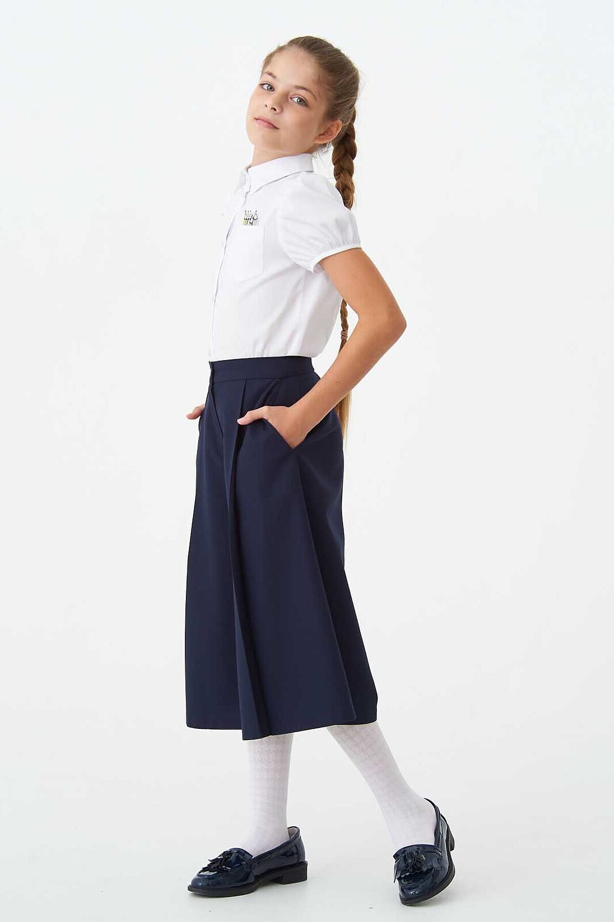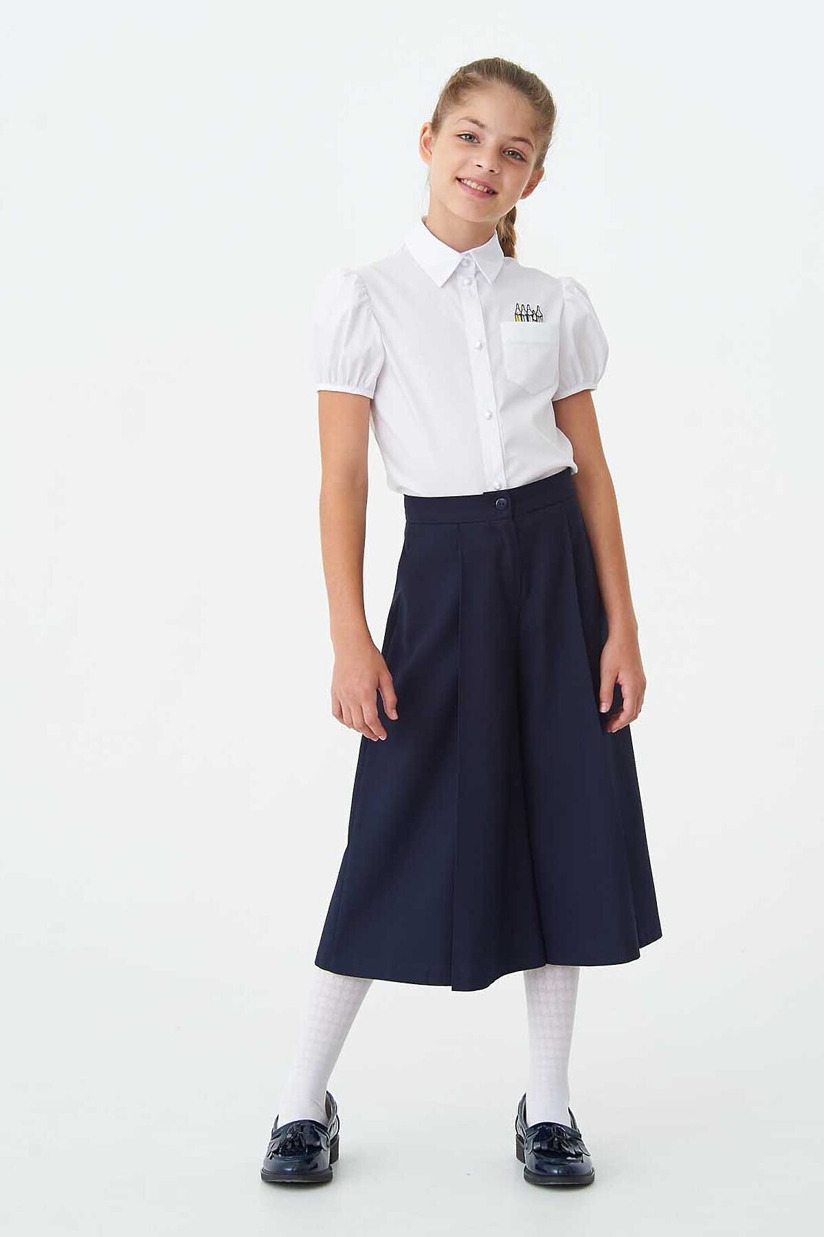 Стильная блуза из смесового хлопка полуприлегающего силуэта с отложным воротником и короткими рукавами, присборенными у манжета. Полочка декорирована вышивкой в форме карандашей, выглядывающая из кармашка. Центральная застёжка на планку с пуговицами ""кристалл"". Высокое содержание хлопка в составе обеспечивает отличную воздухопроницаемость и комфорт в повседневной носке. Отличный вариант на каждый день.