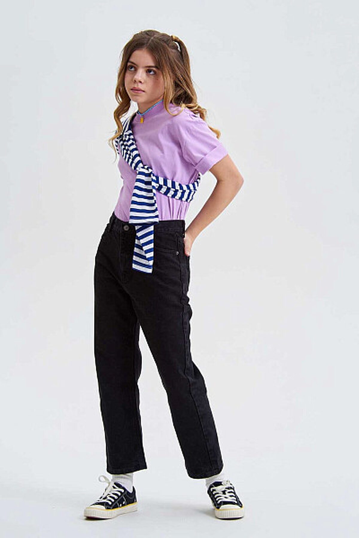 Стильные укороченные джинсы для девочки из качественного хлопка 12 унций, расклешеные к низу. Удобная застежка на пуговицу и молнию, внутри пояса дополнительная система для регулировки размера. Модель имеет классический дизайн с пятью карманами и кокеткой сзади.