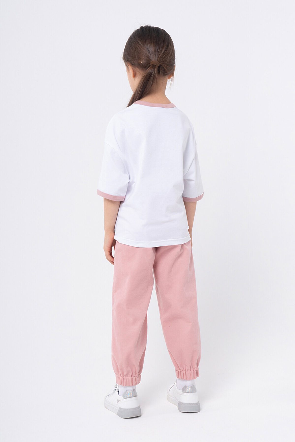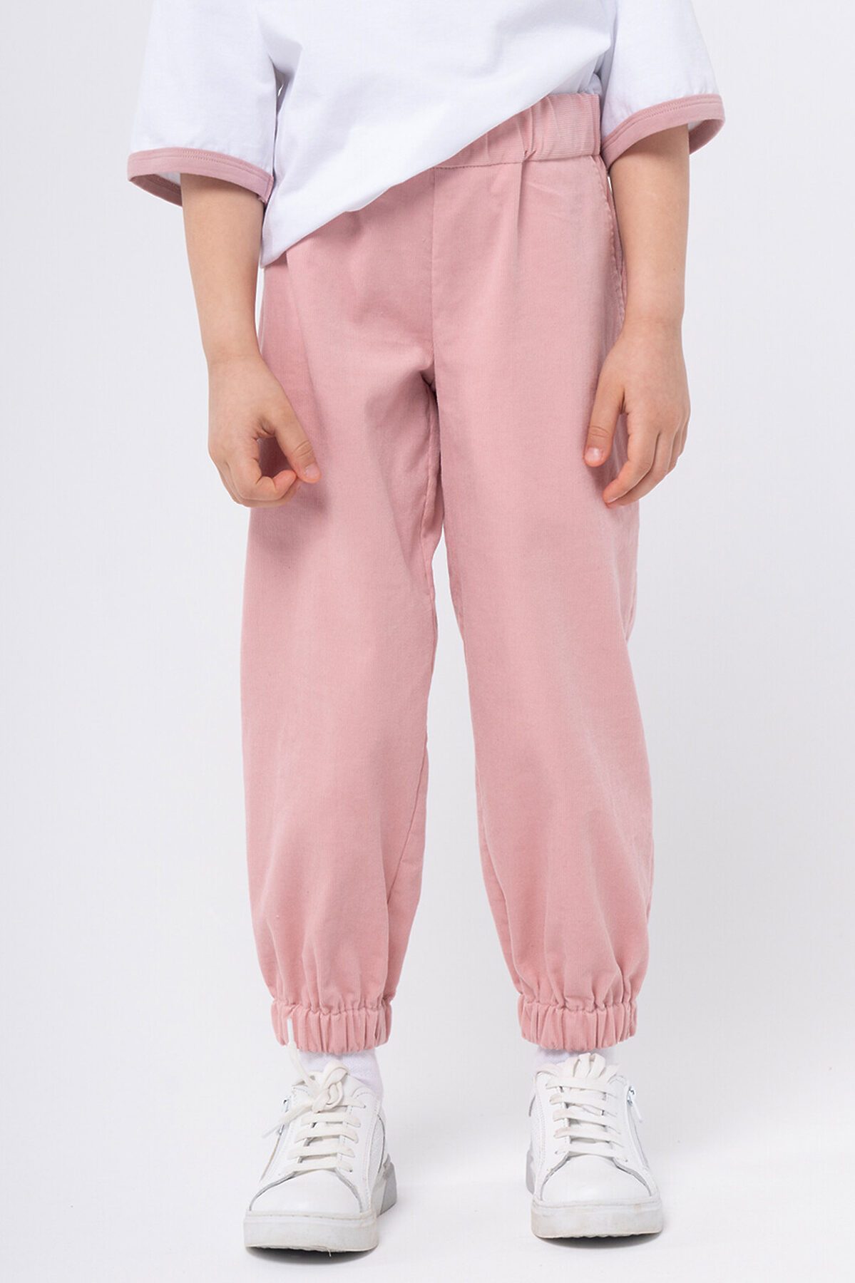 Брюки-джоггеры для девочек. Модель выполнена из теплого вельвета, что делает ее идеальной для прогулок. Брюки прямого силуэта без застежки, с поясом на резинке. Боковые карманы и резинки по низу брюк добавляют удобства и функциональности. Брюки представлены в двух цветах.