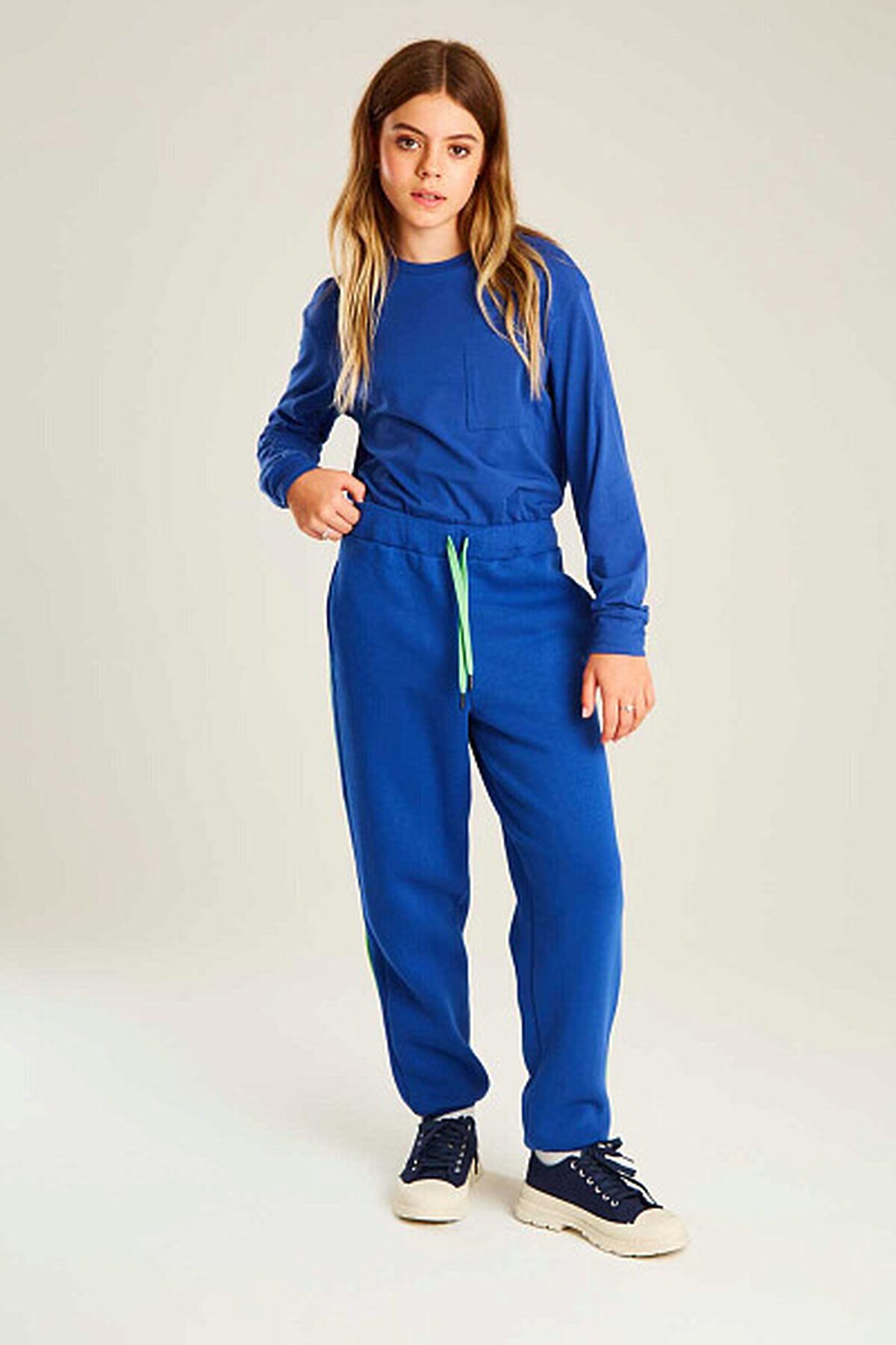 Легкие и удобные брюки для девочек. Они идеально подходят для занятий спортом или просто повседневного использования. Брюки не сковывают движения и позволяют коже дышать. Мы используем только высококачественный хлопок, который обеспечивает комфорт и долговечность. Нижняя часть штанов имеет широкую резинку, которая защитит от ветреной погоды. Пояс также оснащен эластичной резинкой и шнурком для регулировки размера. Брюки выполнены в актуальном ярко-синем цвете.