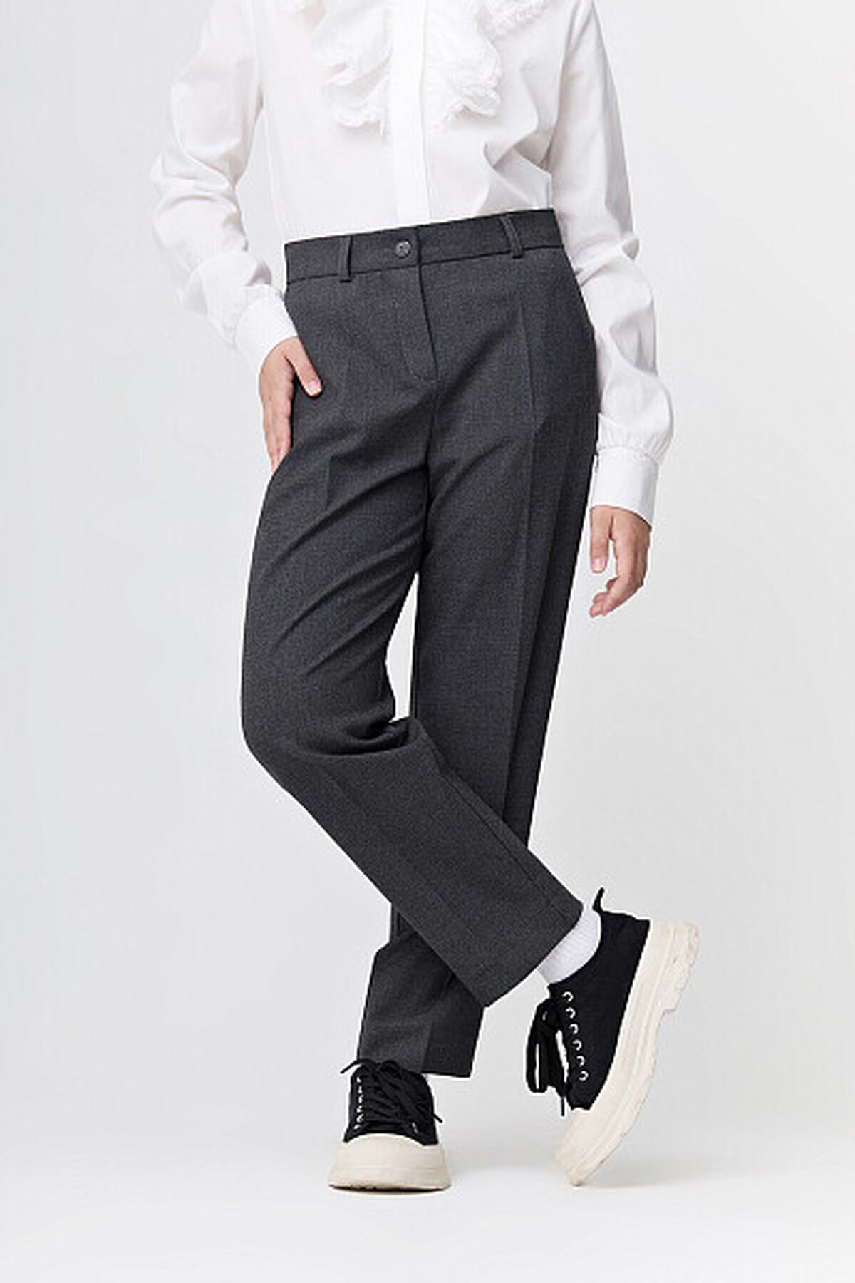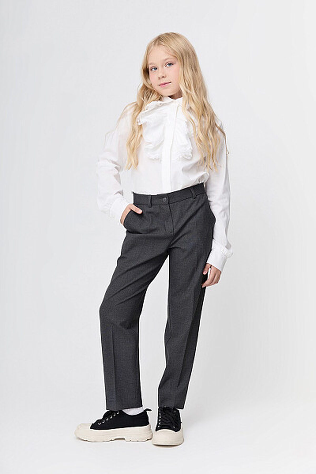 Прямые брюки со стрелками для девочек изготовлены из немнущейся костюмной ткани высокого качества, которая идеально подходит для брюк данного фасона. Высокая талия и пояс на резинке не стесняют движений. Застежка на молнию, петлю и пуговицу на поясе.Брюки имеют карманы достаточной глубины. Брюки элегантно смотрятся на девочках любого роста.