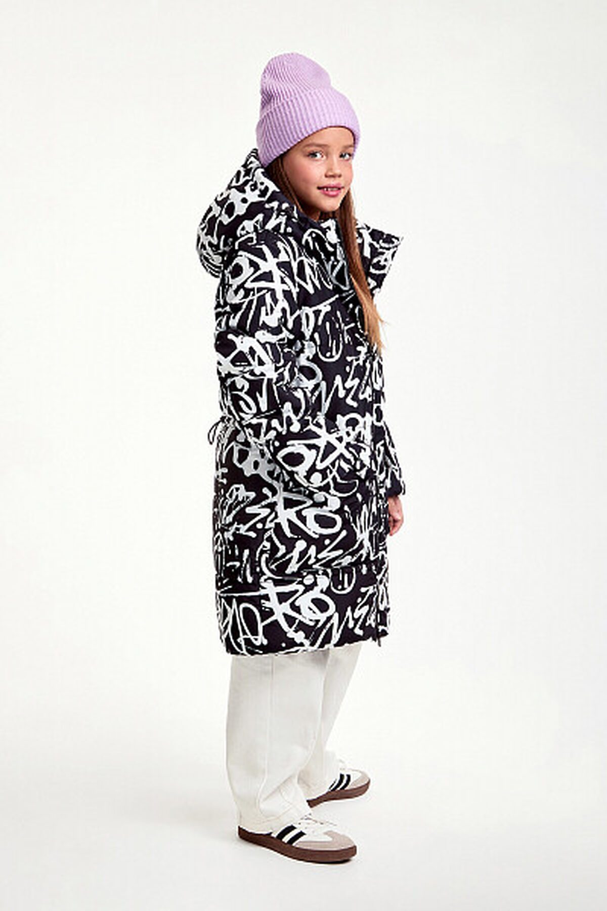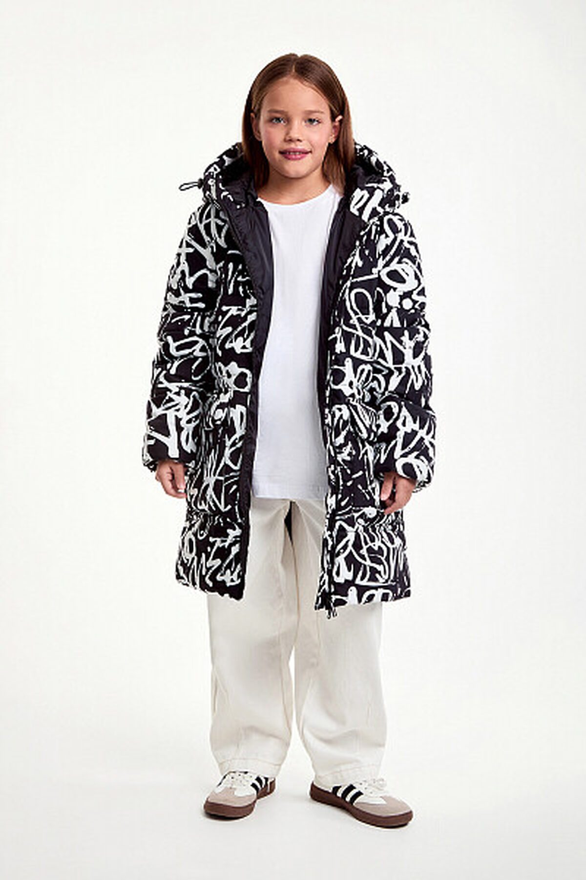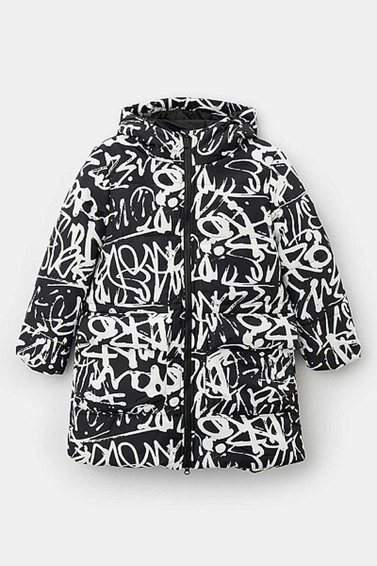 Зимняя удлиненная куртка для девочки прямого силуэта. Куртка изготовлена из плотного материала с водонепроницаемым мембранным покрытием и ветрозащитой. Утеплитель пластовой синтепон 280 гр/м2. Такое утепление подойдет на сильные морозы до -30 градусов. Дополнена несъемным капюшоном, боковыми глубокими карманами на молнии. Выделяется ярким, притягивающим взгляд, принтом.