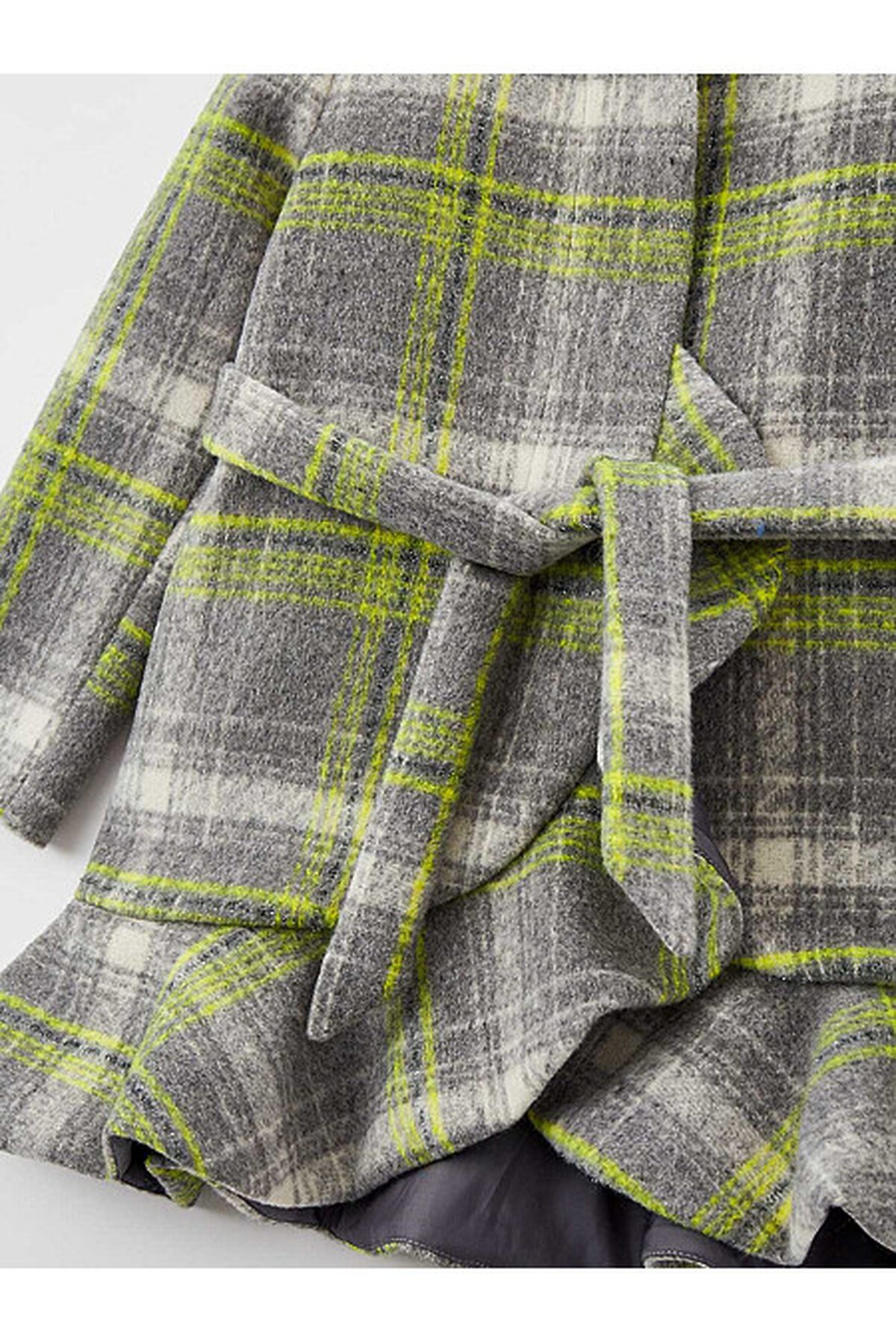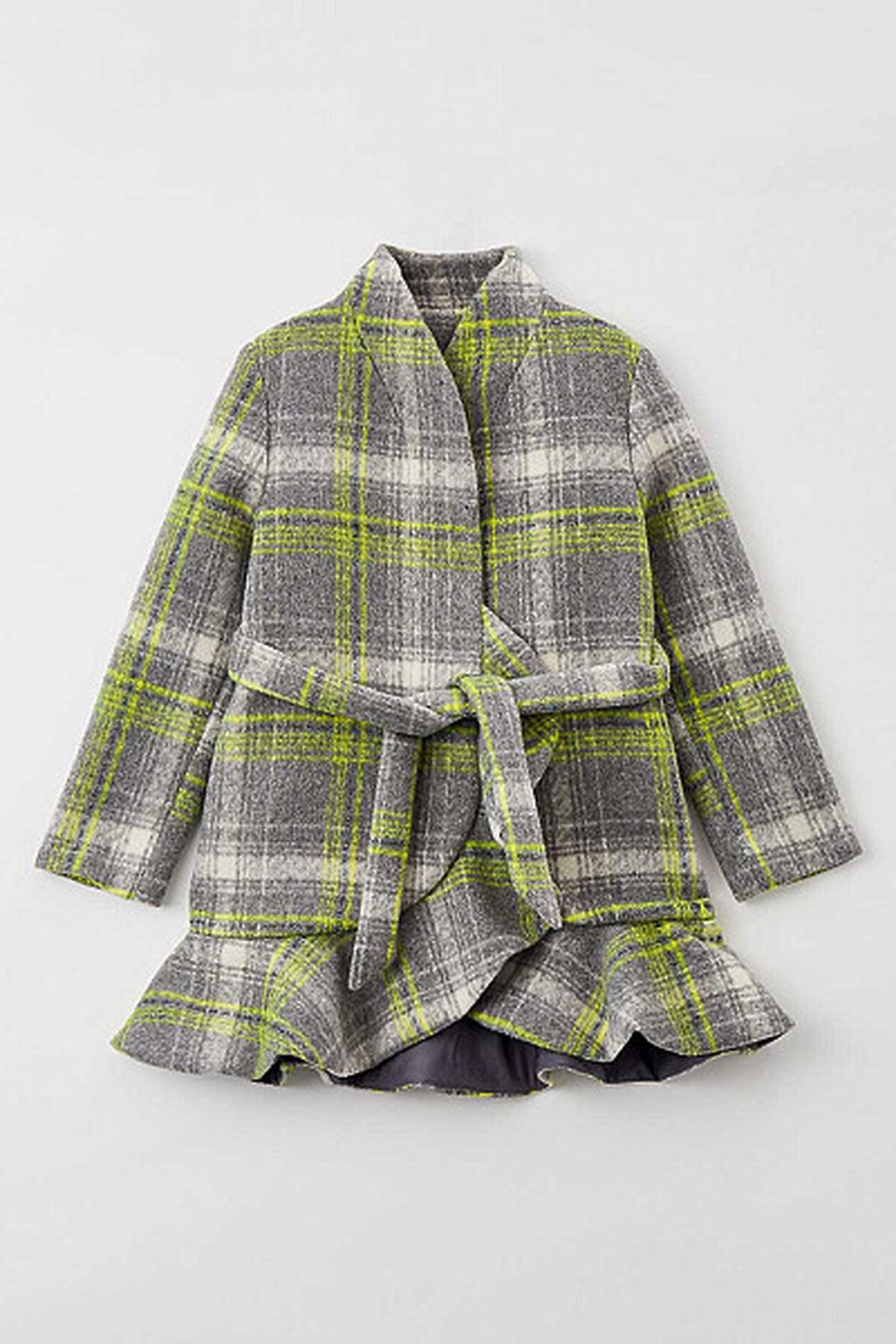 Элегантное пальто прямого силуэта с цельнокроеной стойкой выполнено из ткани в клетку. Состав изделия имеет оптимальное соотношение натуральных и синтетических волокон, что обеспечивает комфорт и высокую износостойкость. Линия талии дополнена поясом из основной ткани на шлёвках, который при желании можно снять. В боковых швах размещены карманы. Ключевая деталь дизайна - волан по борту и низу изделия задаёт романтичное настроение, а потайная застежка со скрытыми пуговицами не нарушает лаконичность внешнего вида.