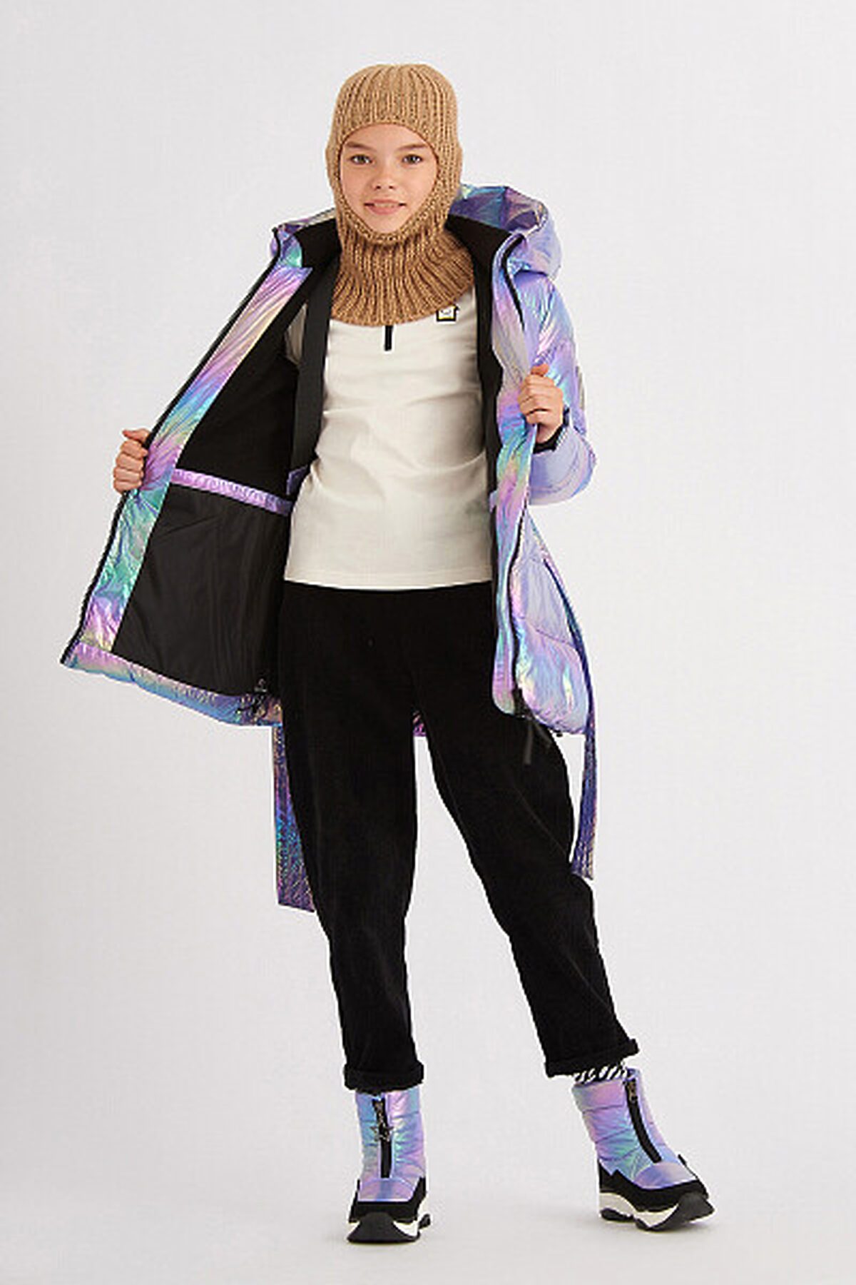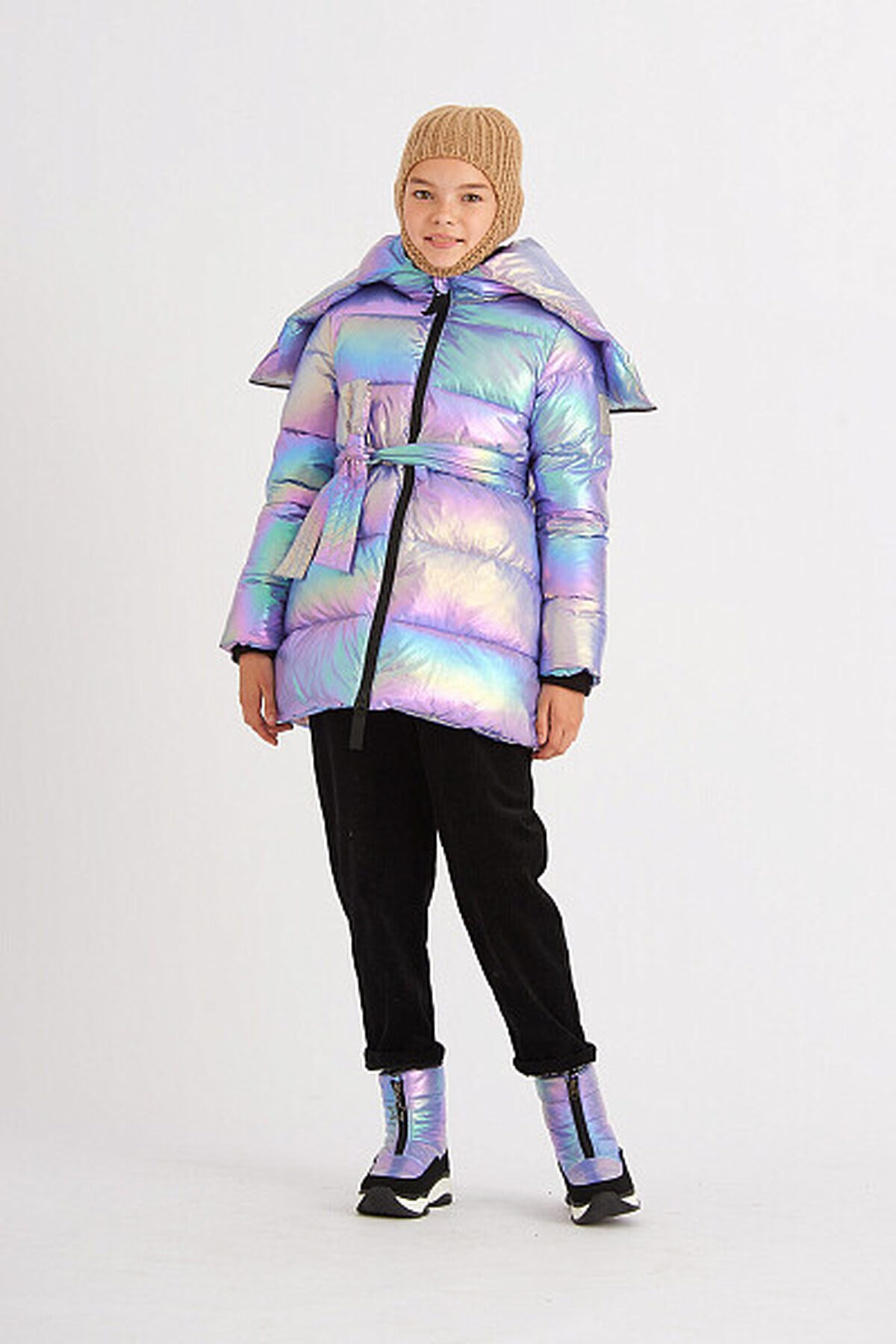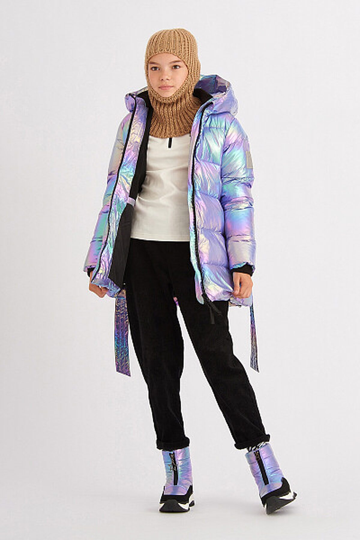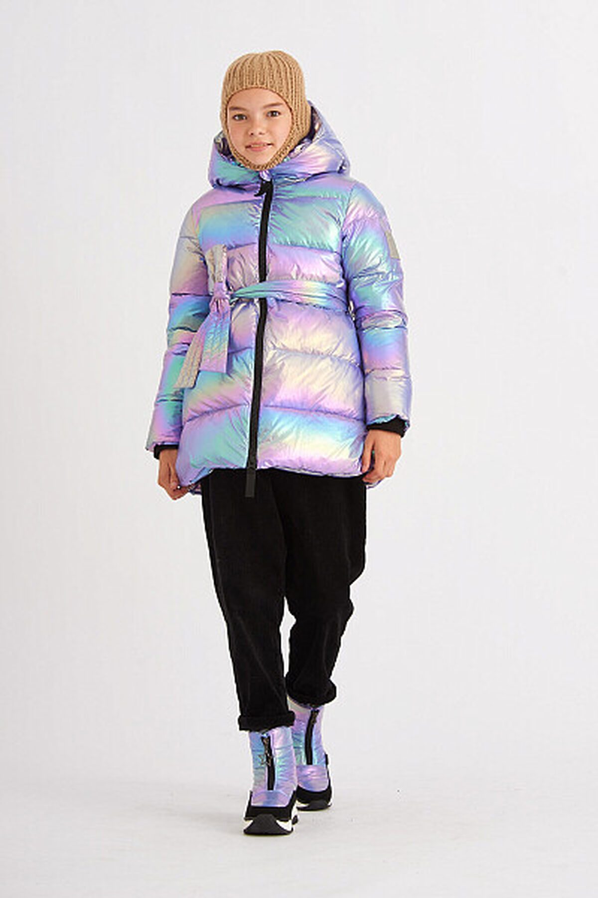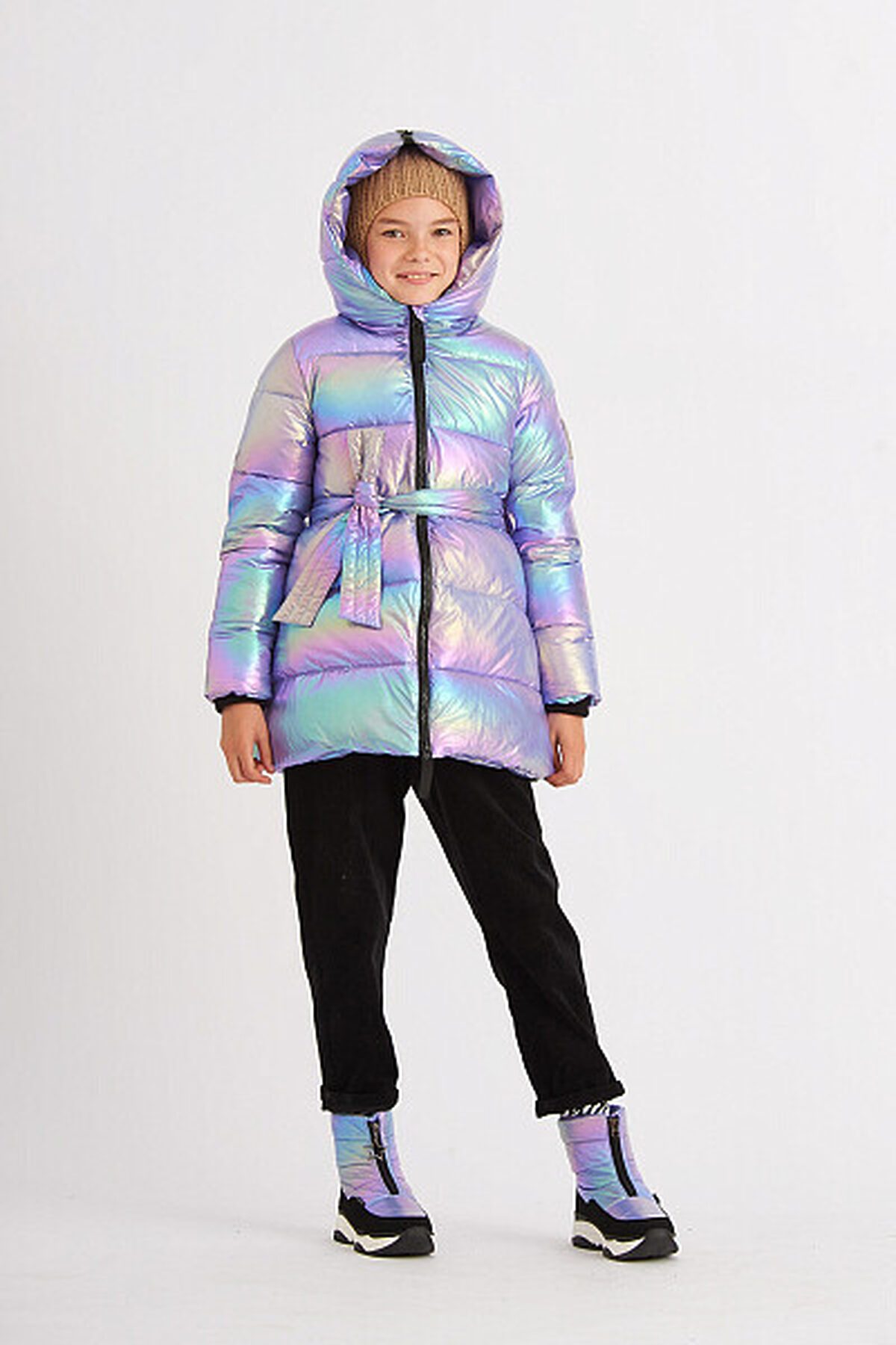 Зимний пуховик актуального А-силуэта. Используется инновационный утеплитель - искусственный пух SORONA AURA от DuPont, 300 г/м2, легкий и обладающий более высокой теплоёмкостью. Пуховик выполнен из современной курточной ткани принт хамелеон со специальной обработкой, продублированной внутренним покрытием для дополнительной защиты от ветра и сохранения тепла. Дополнен съемным поясом из основной ткани и карманами, застегивающимися на потайную молнию, в боковых швах. Капюшон-трансформер на молнии раскладывается в воротник. Надежная тракторная молния с системой "антизакус" защищает кожу лица от повреждений при застегивании. Капюшон внутри и подкладка изделия, кроме рукавов, сшита из мягкого и тёплого флиса для дополнительного утепления изделия. Особенности курток SMENA: Съемные меховые отделки на капюшоне; cветоотражающие элементы; Вязаные манжеты в рукавах; Резинки-регуляторы "утяжки". Внутри имеются съемные плечевые бретели для удобной кратковременной носки в помещении.
