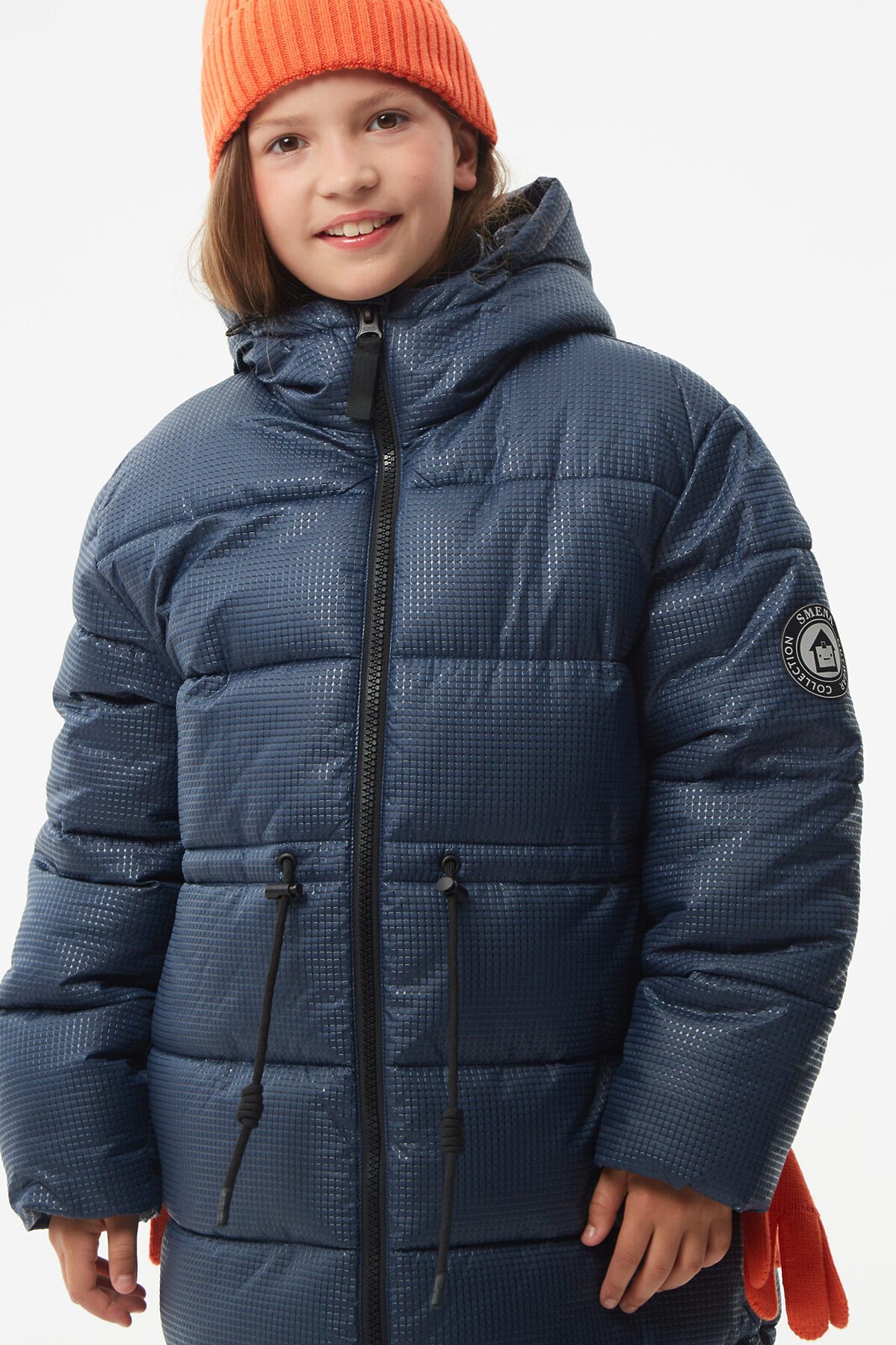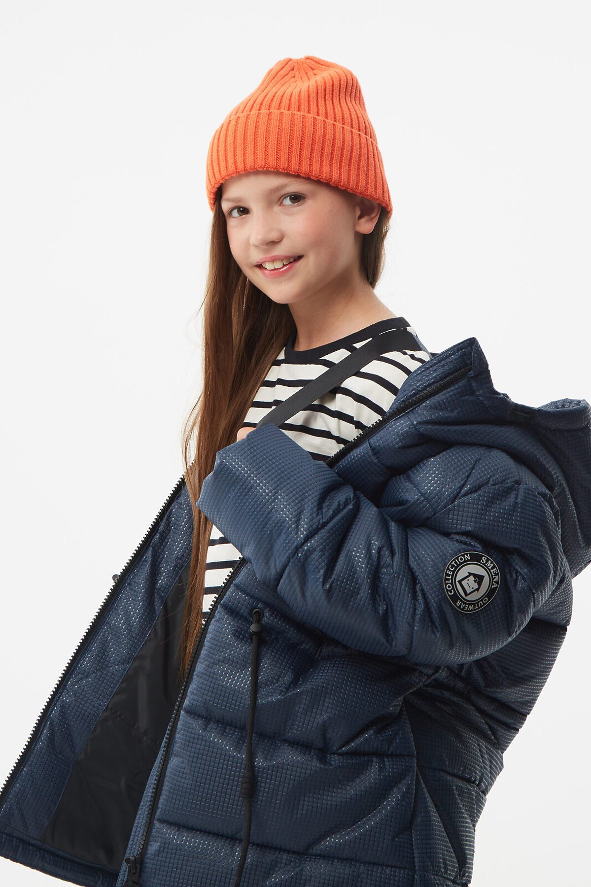 Стильная зимняя куртка для девочки из фактурной ткани с 3D эффектом и водоотталкивающий пропиткой.Утеплитель биопух 270 гр/м2 , для защиты швов от продувания в дополнении к основному утеплителю использован синтепон 70 г/м2. Модель на кулиске с регулировкой, объемный несъемный капюшон, в рукавах трикотажные манжеты для защиты от ветра и снега, тракторная молния с системой "антизакус", боковые прорезные карманы на кнопке, утяжка по низу, светоотражающие элементы. Внутри имеются съемные плечевые бретели для удобной кратковременной носки в помещении.