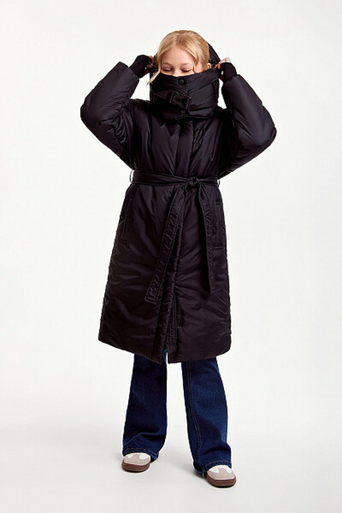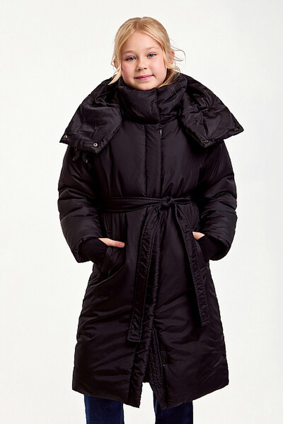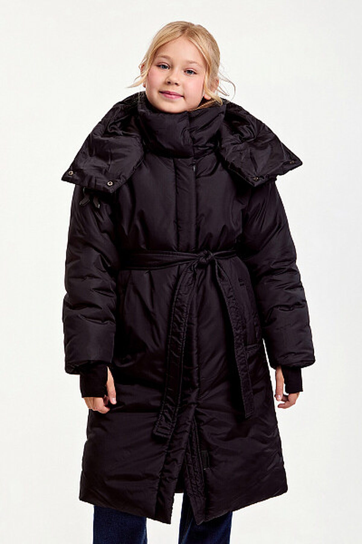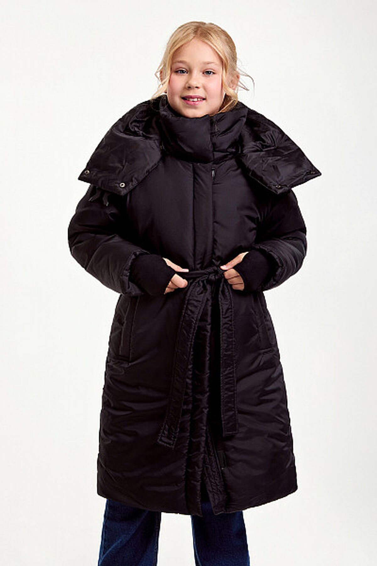 Зимнее пальто прямого силуэта с полиуретановым покрытием ткани, нанесенным на внутреннюю сторону, обеспечит водонепроницаемость, лямки с внутренней стороны куртки. Манжет из ткани «Soft Stretch» с прочной внешней поверхностью и мягким внутренним слоем с велюровым ворсом. Пальто дополнено поясом, который подчеркивает талию, а боковые карманы добавляют функциональности. Длина ниже колена обеспечивает дополнительное тепло в холодную погоду. Утеплитель пластовый синтепон 280 гр/м2. Рекомендованный температурный режим: 0/-15 градусов. Представлено в черном цвете. Размерный ряд 128 – 170 см.