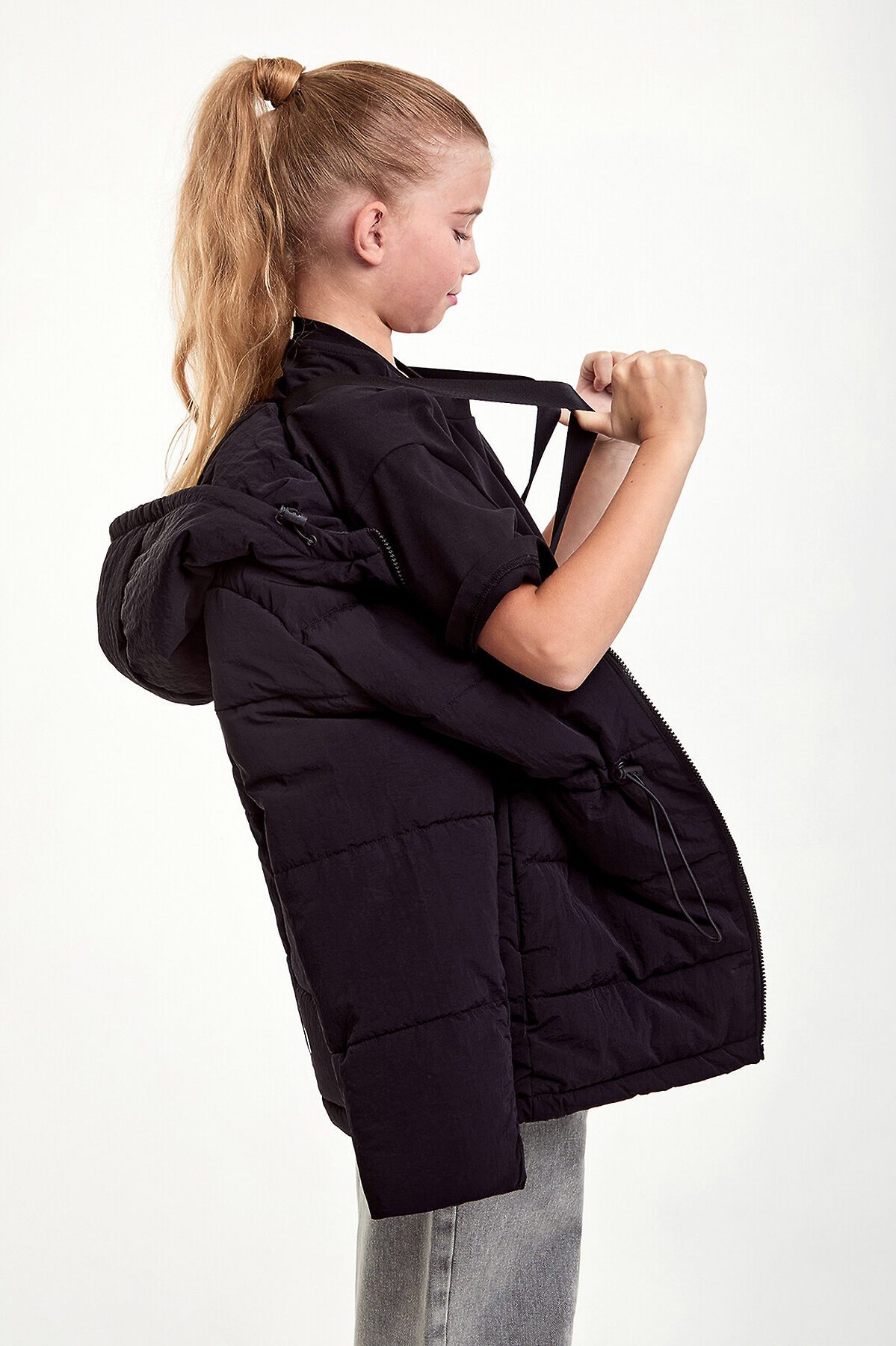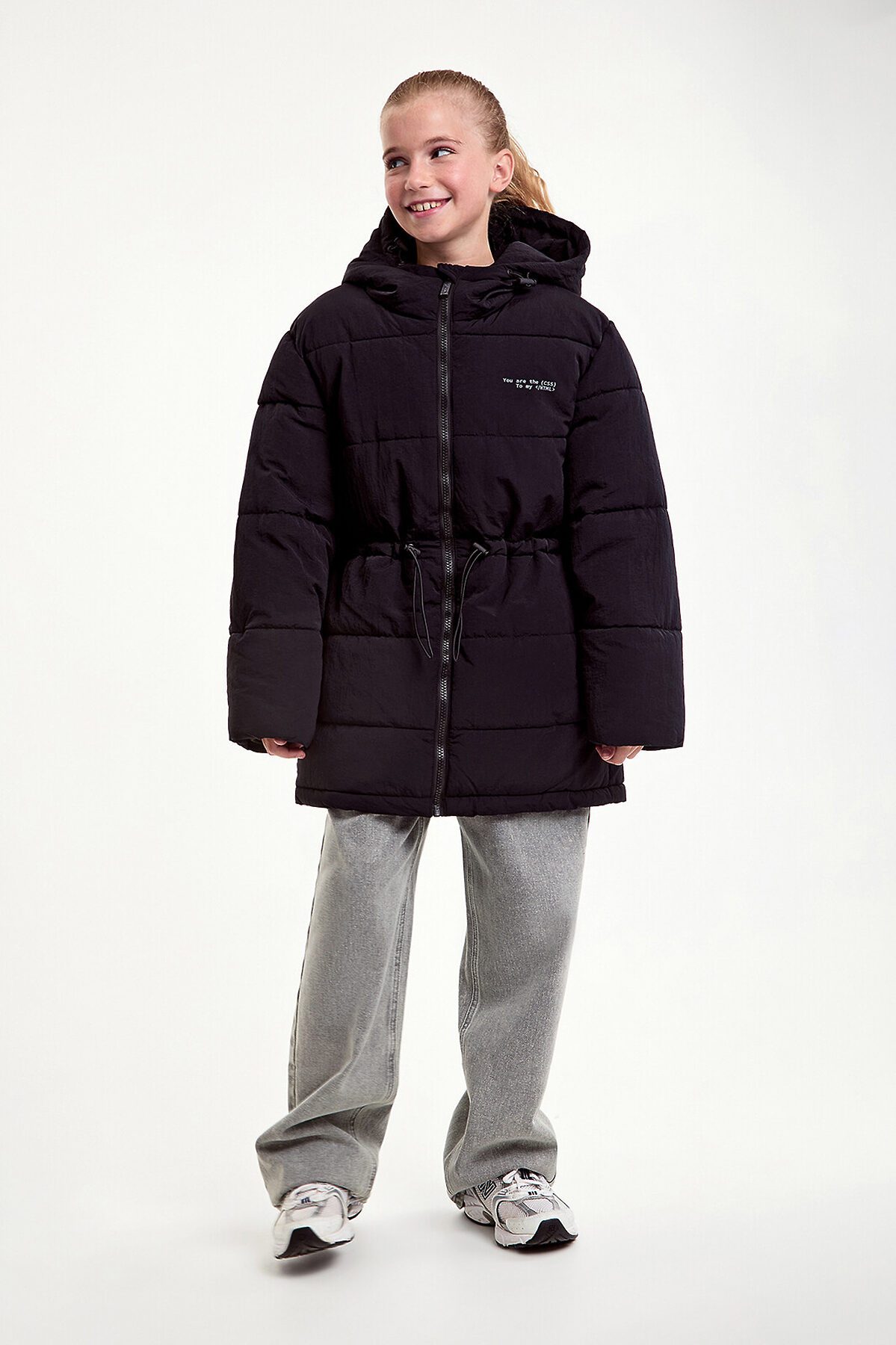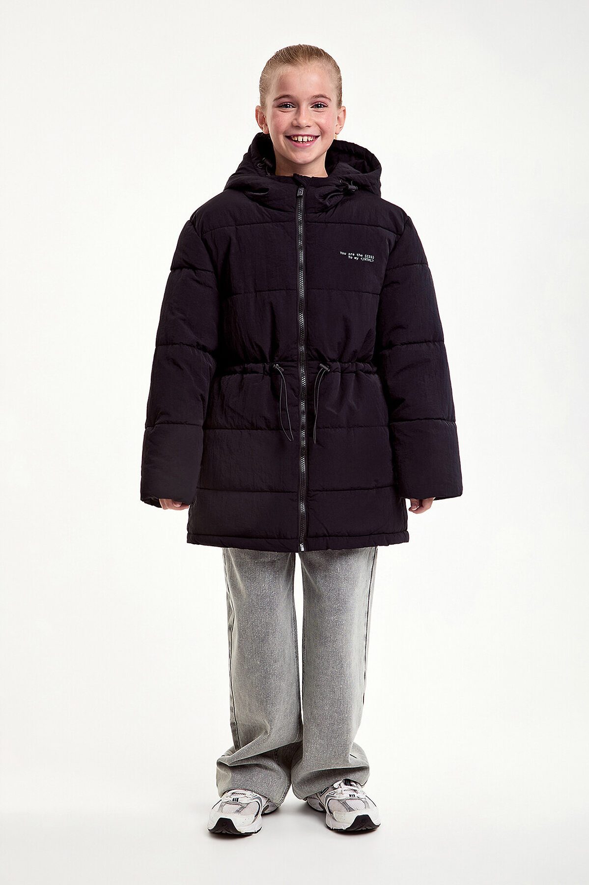 Утепленная зимняя куртка для девочки прямого силуэта, 100% нейлон с «мятым» эффектом и водонепроницаемым покрытием, лямки с внутренней стороны куртки, манжет из ткани «Soft Stretch». Куртка дополнена утяжками на поясе и по низу для оптимальной посадки. Вшитый капюшон с утяжкой защитит от ветра. Боковые карманы добавляют функциональности. На спинке по низу изделия оформлен светоотражающий элемент, повышающий видимость в темное время суток. Утеплитель пластовый синтепон к подкладке 50 гр/м2, био-пух 250 гр/м2. Рекомендованный температурный режим: -10/-30 градусов. Куртка представлена в двух цветах – молочный и черный. Размерный ряд 128 – 170 см.