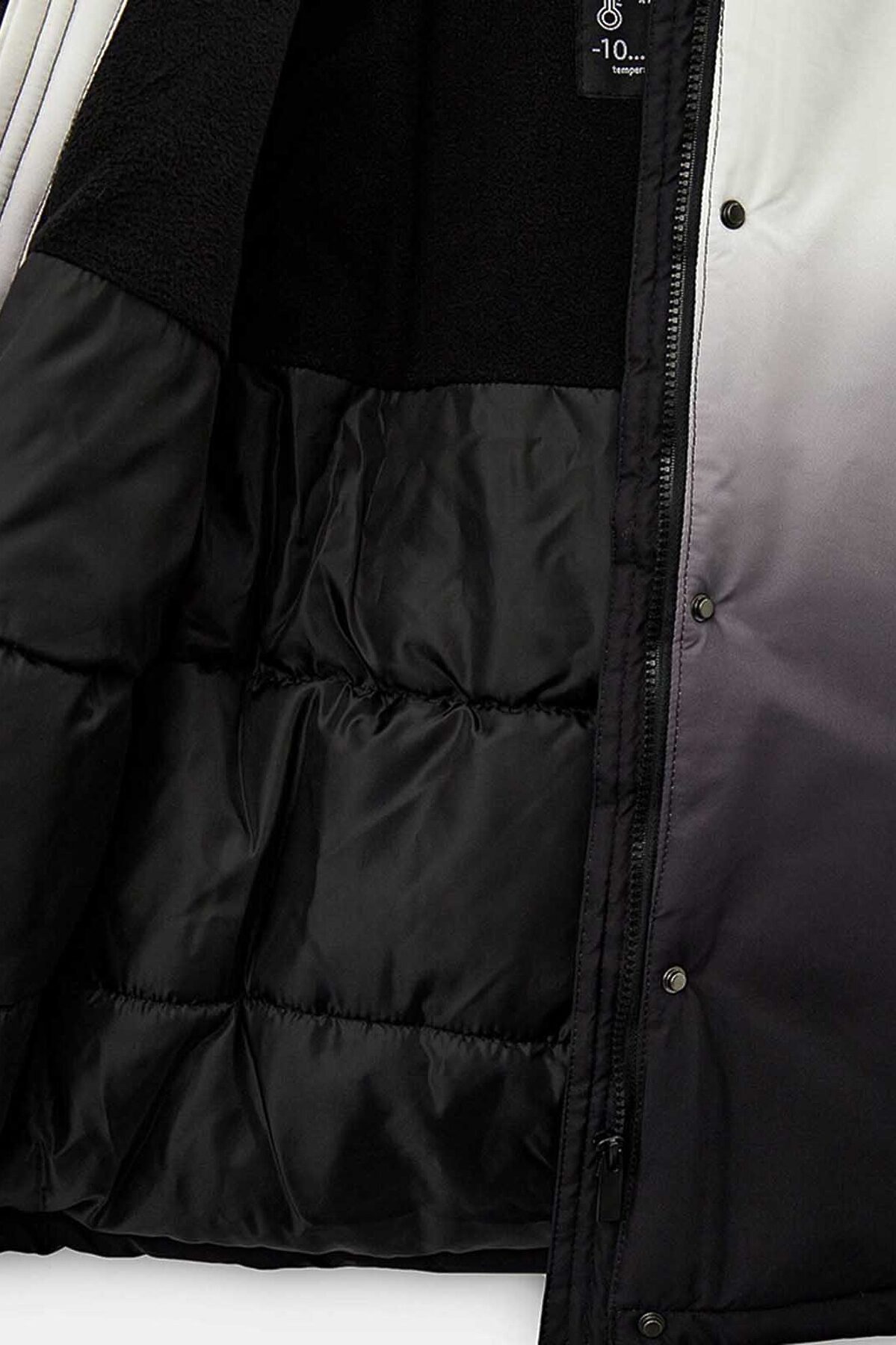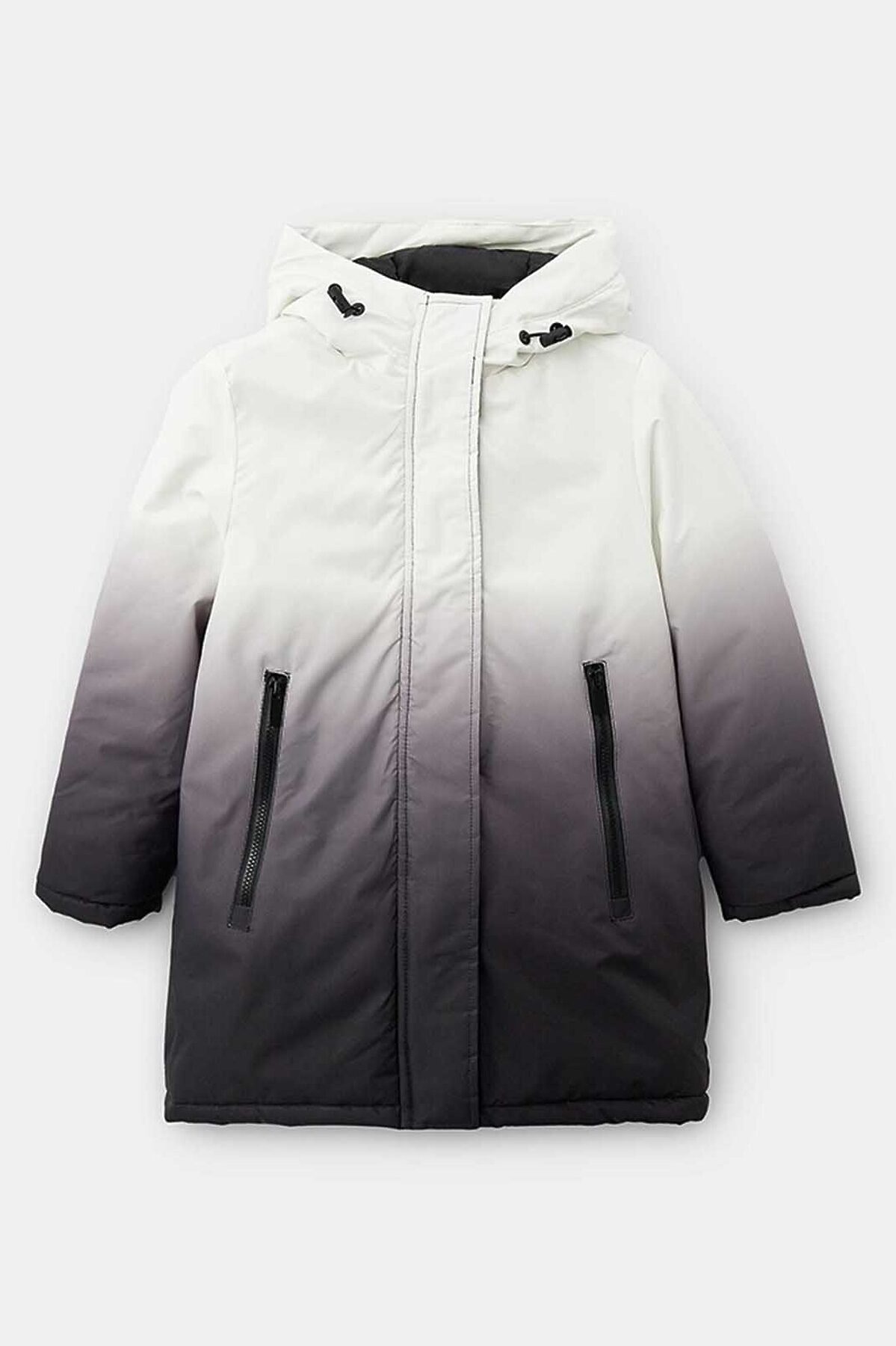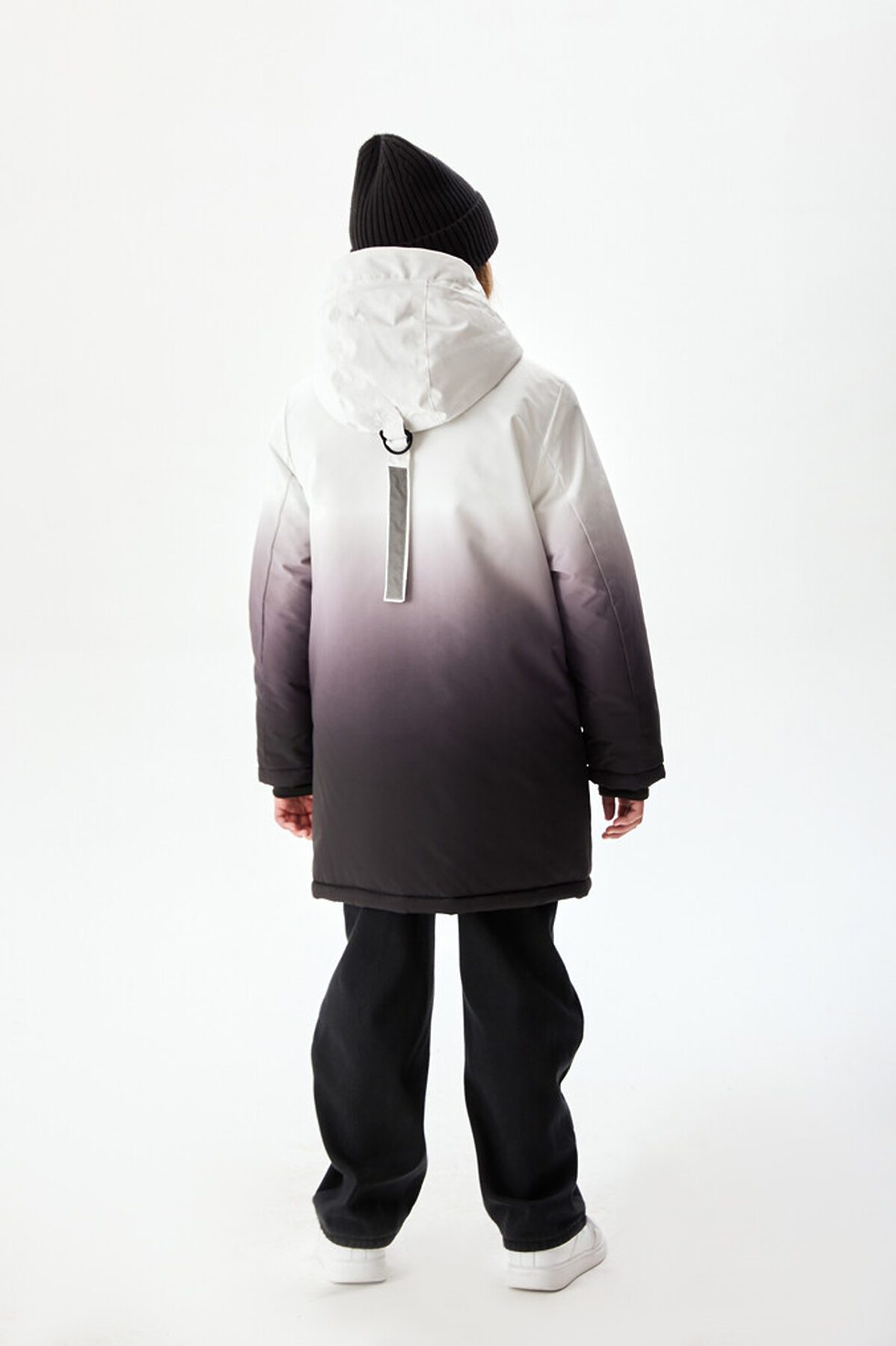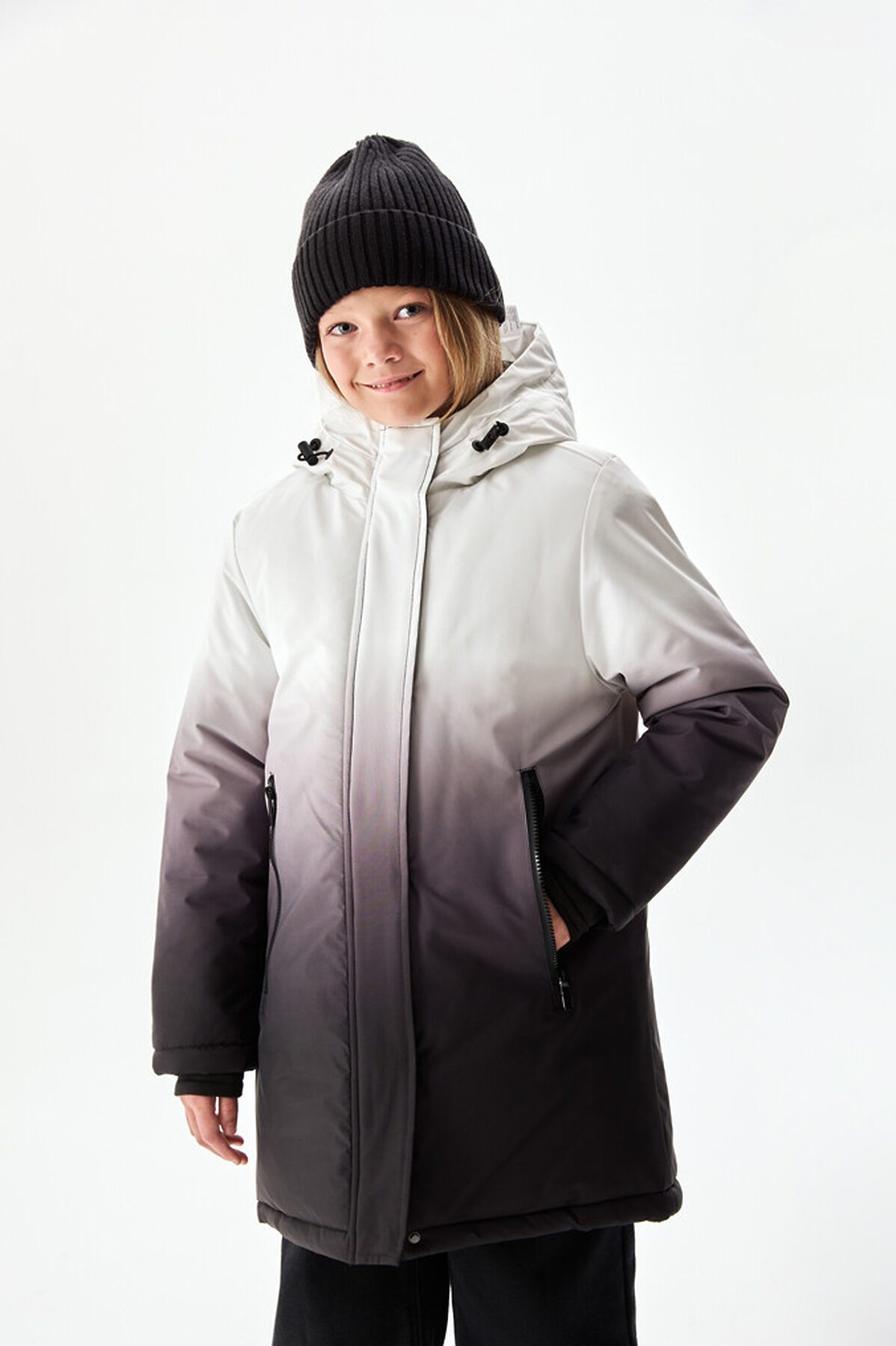 Зимняя куртка для девочки прямого кроя на молнии. Покрытие водонепроницаемое. Манжета с прочной внешней поверхностью и мягким внутренним слоем, препятствует образованию катышек, лямки с внутренней стороны куртки. С внутренней стороны полочки и спинки наполовину флисовая подкладка. Дополнена капюшоном с утяжкой для лучшей защиты от ветра. Карманы на молниях. Модель в градиентной расцветке. Надежная фурнитура: прочные застежки и молнии обеспечивают долгий срок службы. Утеплитель пластовой синтепон к основной ткани 50 гр/м2, био-пух к подкладке 250 гр/м2. Рекомендованный температурный режим: -10/-30 градусов. Куртка представлена в бело-черном цвете. Размерный ряд 128 – 170 см.