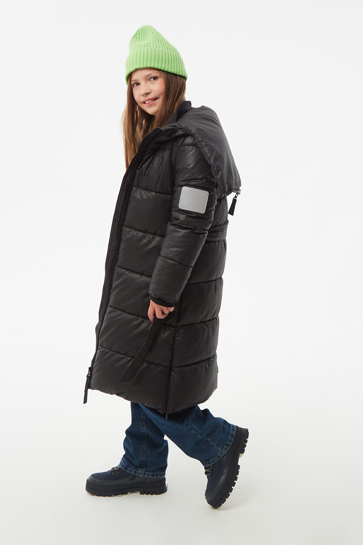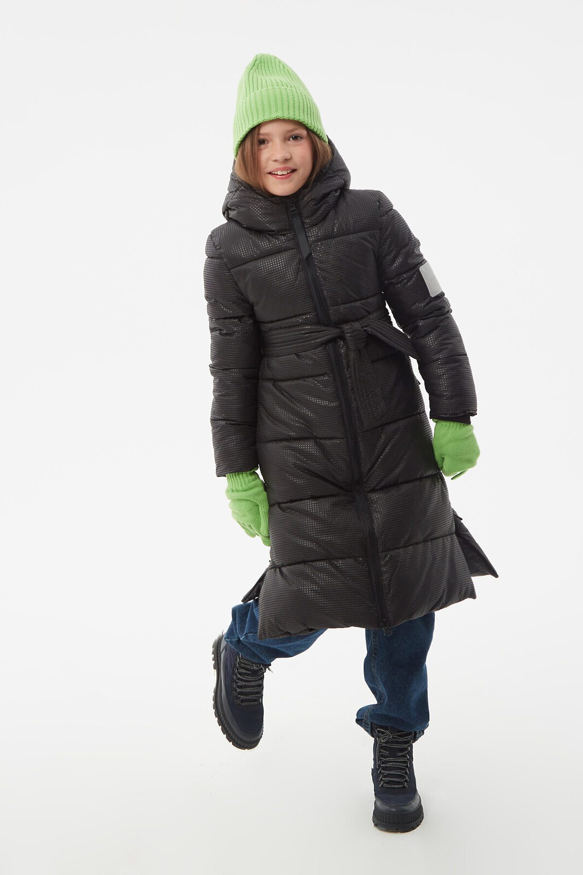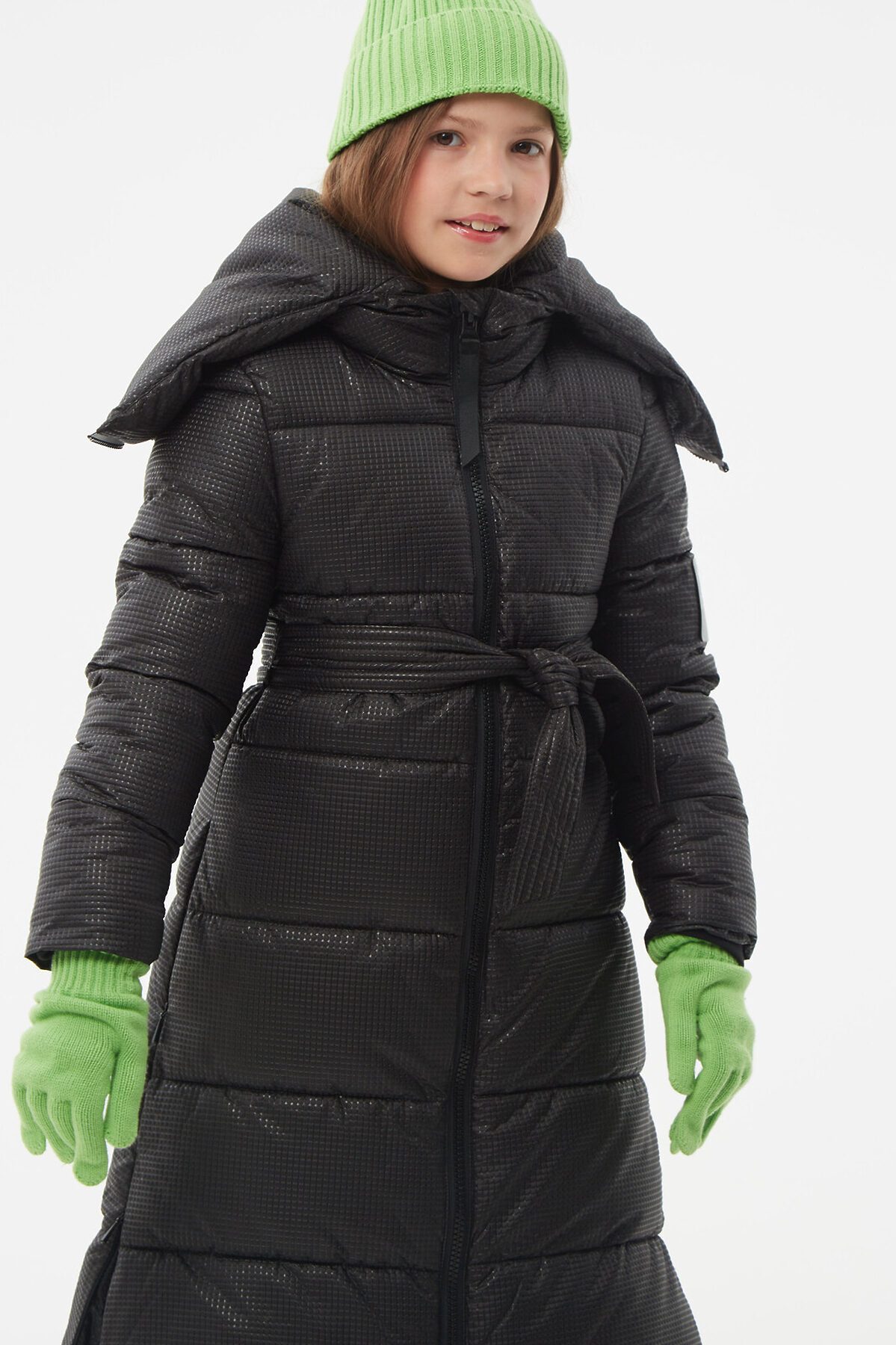 Зимнее удлиненное пальто для девочек из современной курточной ткани и специальной обработкой, продублированной внутренним покрытием для дополнительной защиты от ветра и сохранения тепла. Актуальный А-силуэт. Дополнено съемным поясом из основной ткани и карманами, застегивающимися на потайную молнию, в боковых швах. Капюшон- трансформер на молнии раскладывается в воротник. Для удобства предусмотрены небольшие открытые молнии снизу по бокам, которые одновременно украшают модель. Надежная тракторная молния с системой "антизакус", которая защищает кожу лица от повреждений при застегивании. Подкладка изделия, кроме рукавов, сшита из мягкого и тёплого флиса для дополнительного утепления изделия. Внутри имеются плечевые бретели для удобной кратковременной носки в помещении.