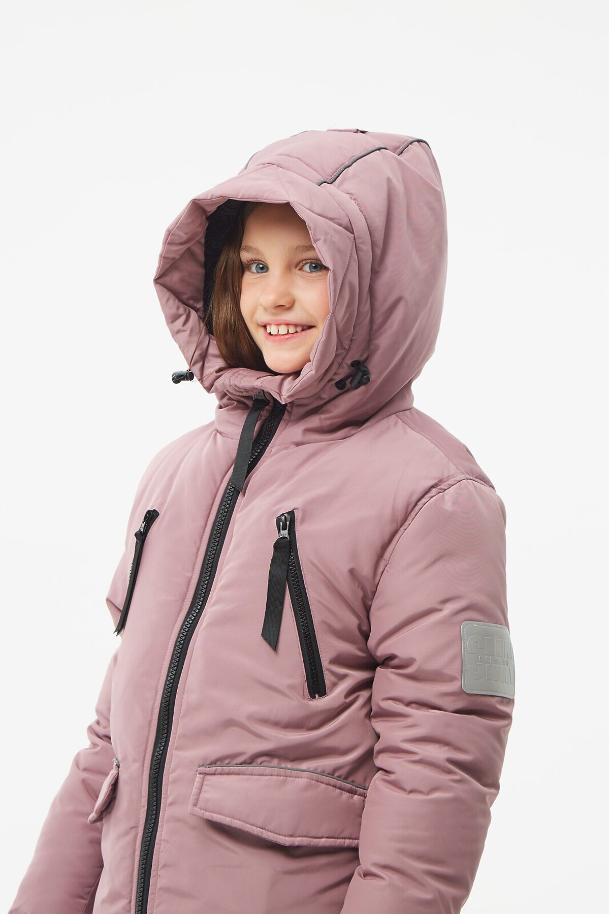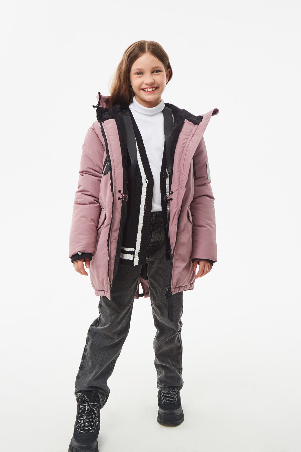 Стильная парка для девочек свободного силуэта. Парка выполнена из современной курточной ткани со специальной обработкой продублированной внутренним покрытием для дополнительной защиты от ветра и сохранения тепла. Длинные втачные рукава с вязаными трикотажными манжетами, объёмный капюшон имеет утяжки, прорезные карманы на молнии добавляют функциональности, а отделка модной тесьмой с принтом обеспечивает актуальность. Парка застегивается на молнию, которая закрыта ветрозащитной планкой с велкро. Капюшон внутри и подкладка до талии выполнены из мягкого флиса, от талии из подкладочной ткани, для комфортного ношения с утепленными брюками. Особенности курток SMENA: Система "антизакус" защищает кожу лица от повреждений при застегивании молний; Светоотражающие элементы.