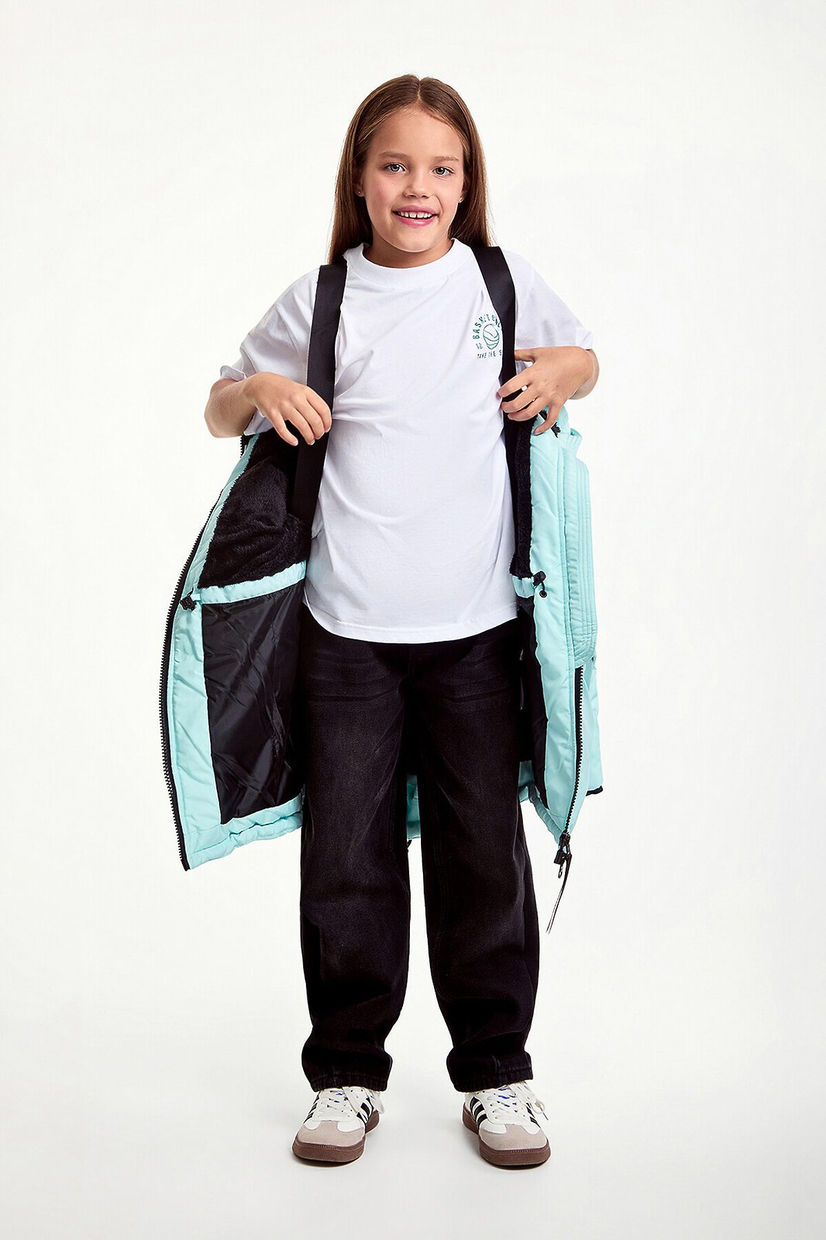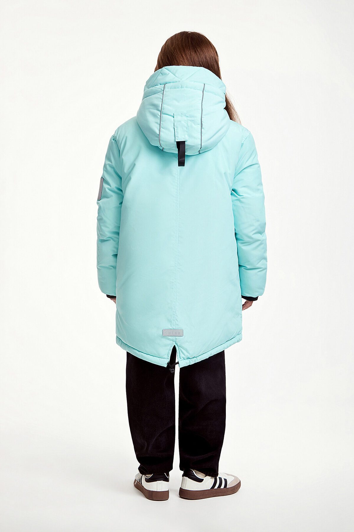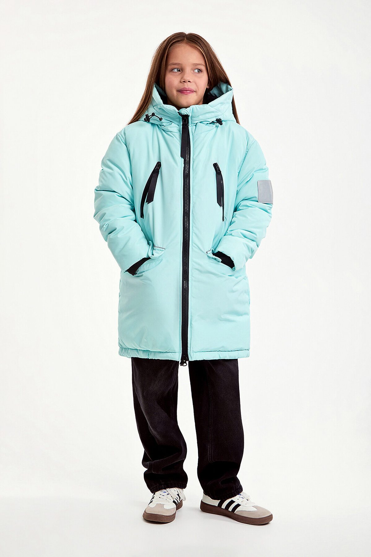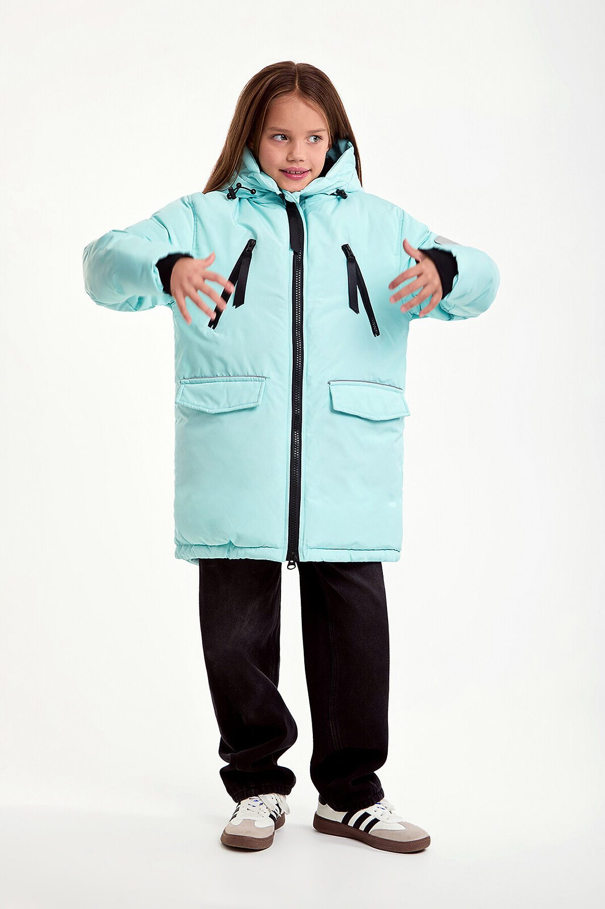 Стильная парка для девочек свободного силуэта. Парка выполнена из современной курточной ткани со специальной обработкой продублированной внутренним покрытием для дополнительной защиты от ветра и сохранения тепла. Длинные втачные рукава с вязаными трикотажными манжетами, объёмный капюшон имеет утяжки, прорезные карманы на молнии добавляют функциональности, а отделка модной тесьмой с принтом обеспечивает актуальность. Парка застегивается на молнию, которая закрыта ветрозащитной планкой с велкро. Капюшон внутри и подкладка до талии выполнены из мягкого флиса, от талии из подкладочной ткани, для комфортного ношения с утепленными брюками. Особенности курток SMENA: Система "антизакус" защищает кожу лица от повреждений при застегивании молний; Светоотражающие элементы.
