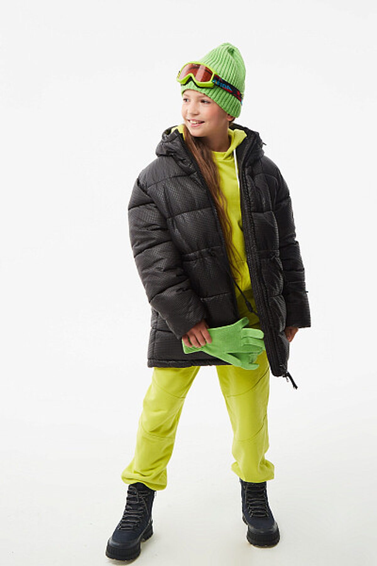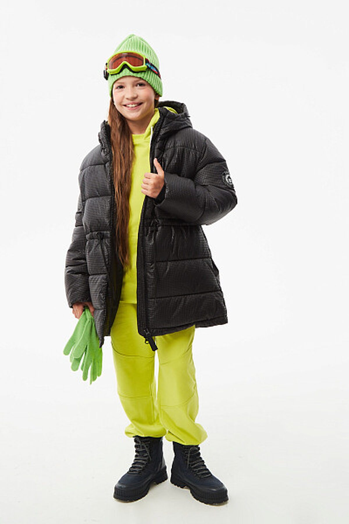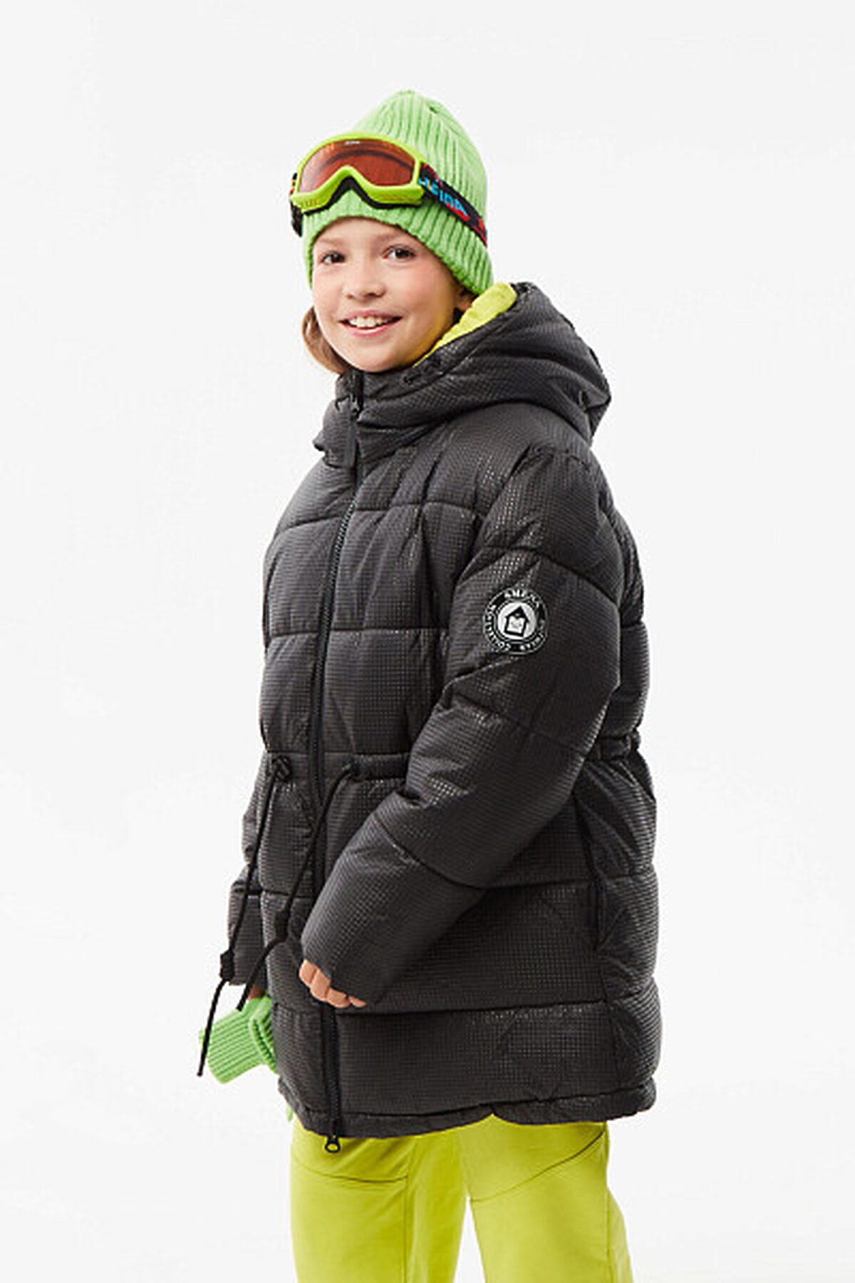 Зимняя стеганая куртка для девочек из современной курточной ткани. Куртка с центральной застежкой на 2-ух стороннюю пластиковую молнию с системой "антизакус", которая защищает кожу лица от повреждений при застегивании. Объем по талии регулируется шнуром в обработанной кулиске. В боковых швах обработаны карманы, застегивающиеся на кнопку. Горловина обработана воротником стойка из трикотажа и 2-ух шовным капюшоном, повторяющий форму головы. Рукава прямые, втачные, по низу обработаны трикотажными манжетами. На левом рукаве в области плеча фирменный патч. Внутри изделия имеются съемные плечевые бретели для удобной кратковременной носки в помещении.