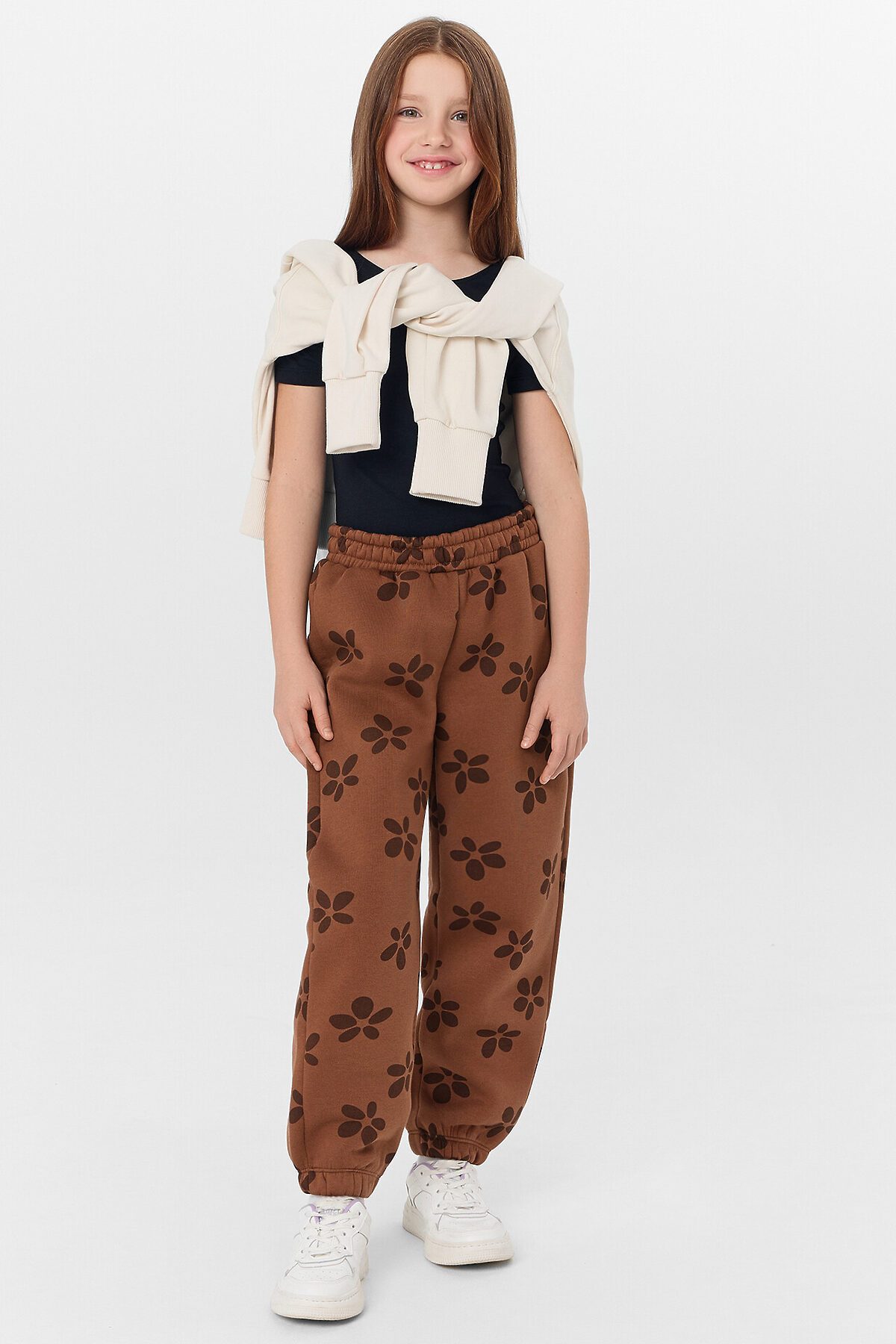 Брюки из легкого трикотажного футера. Посадка на талии средняя. Пояс – с мягкой эластичной тесьмой внутри и декоративными строчками. Боковые швы немного смещены вперед. Штанины завершаются эластичной тесьмой. Красиво и комфортно!