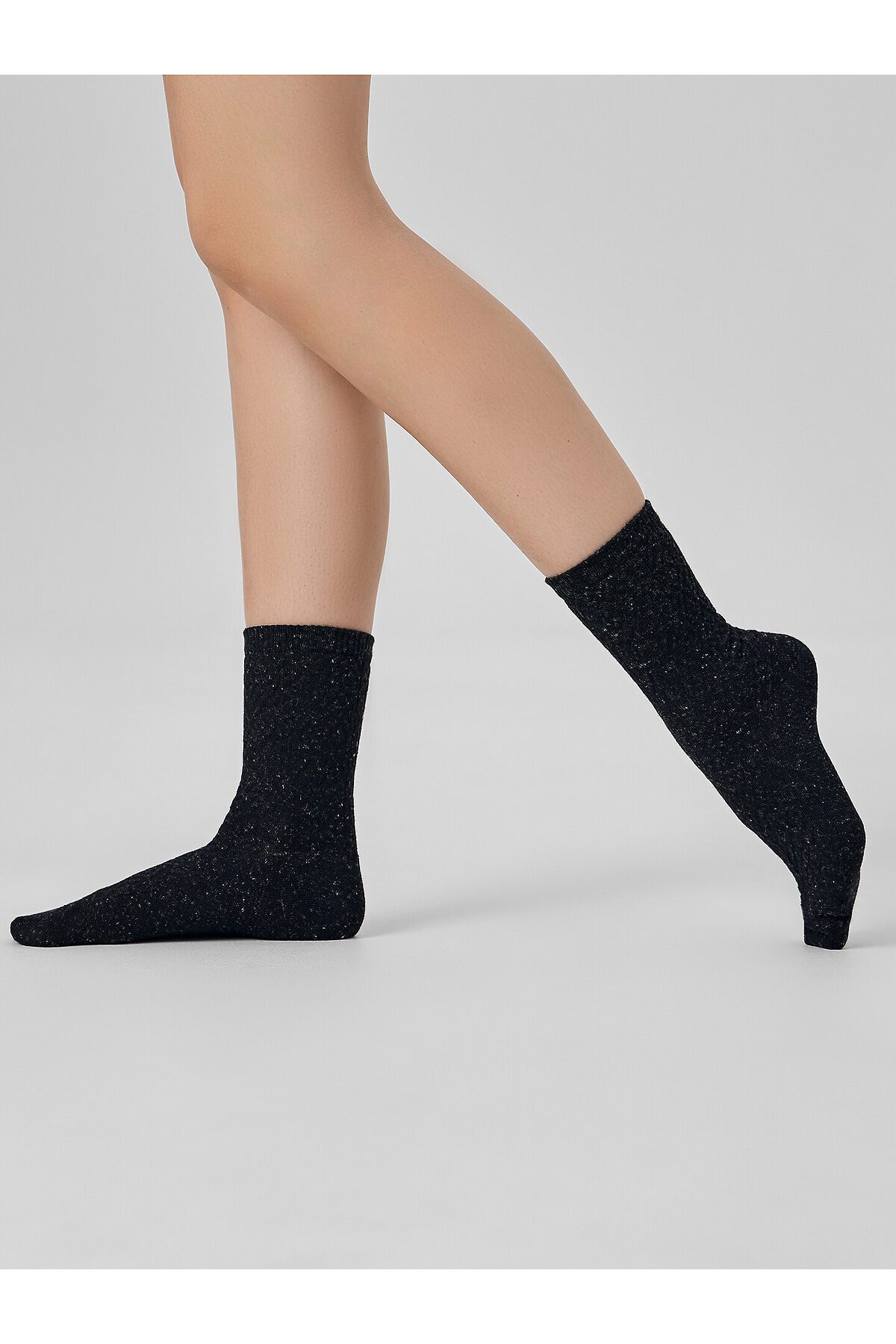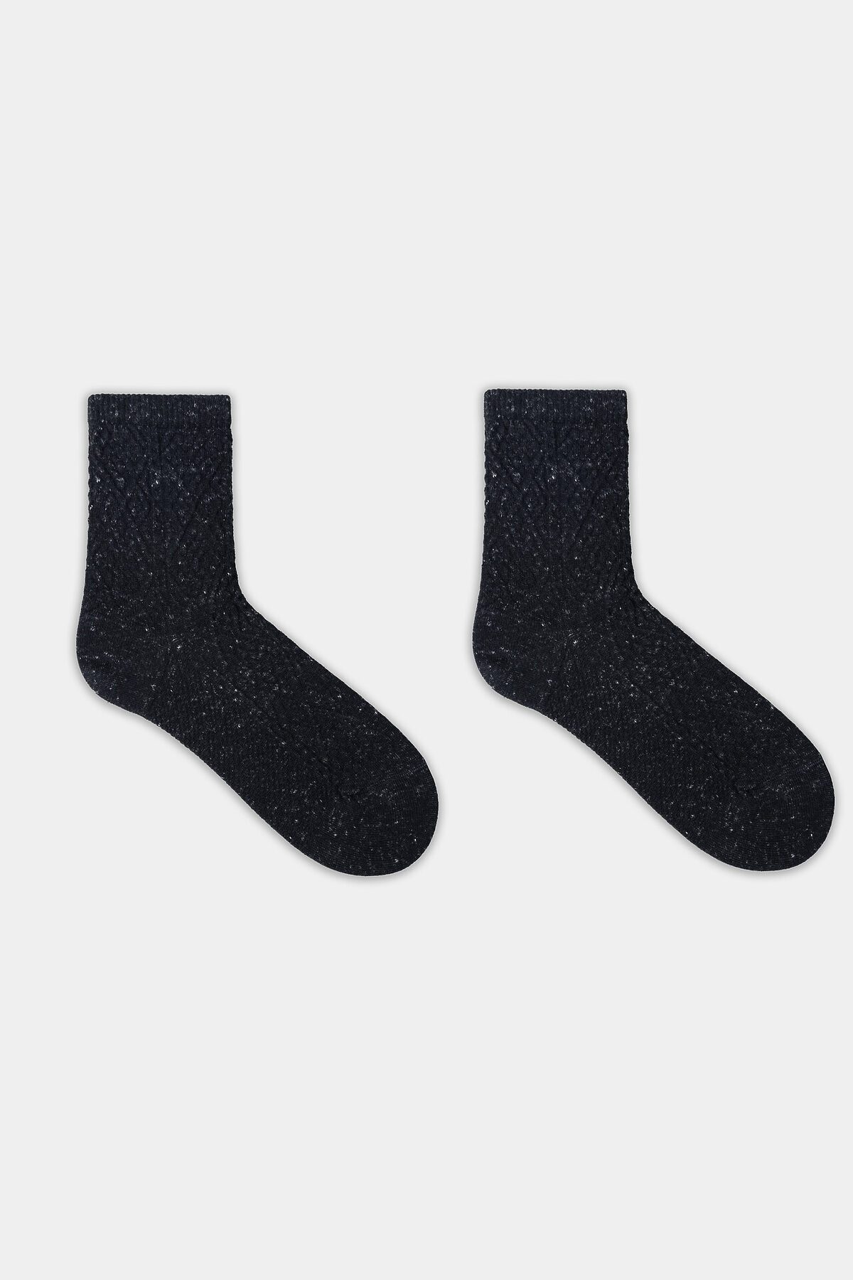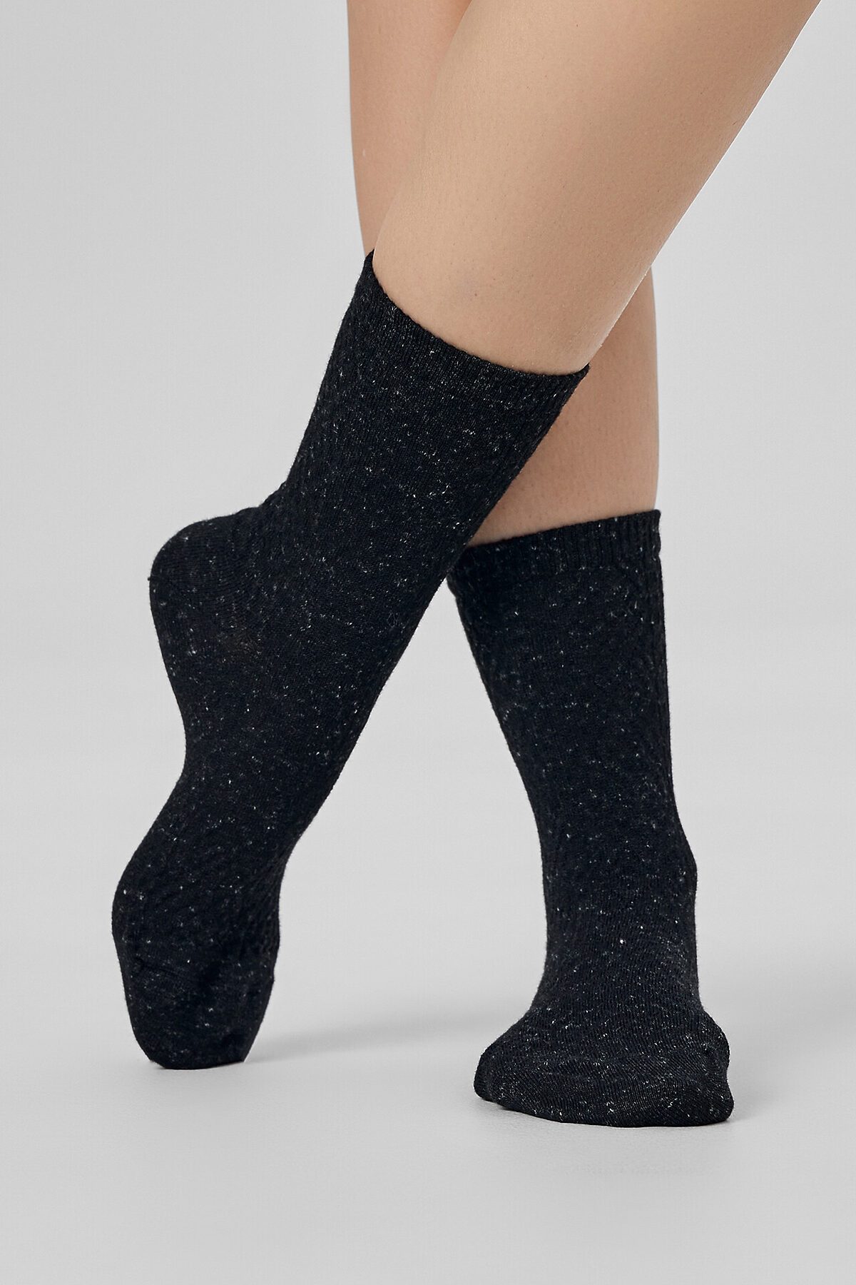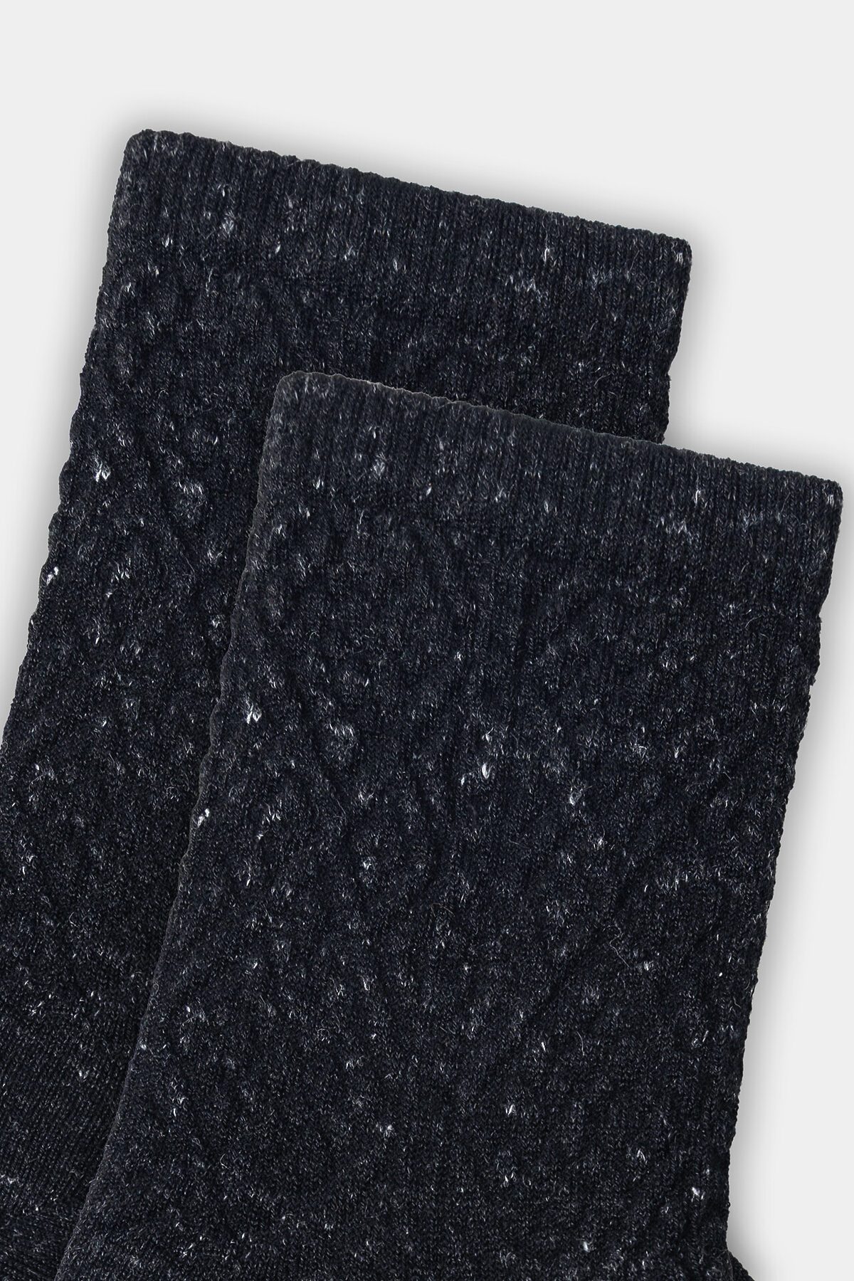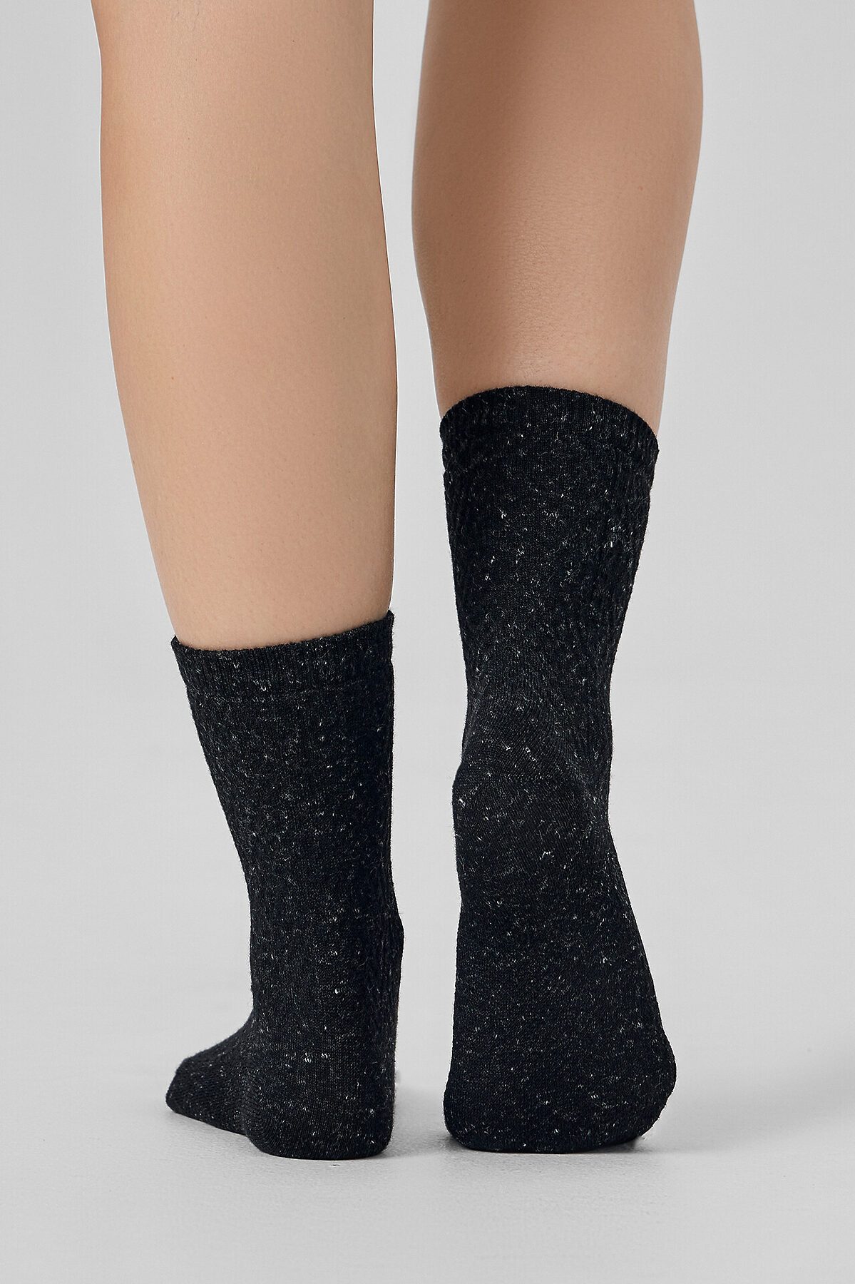 рис.3369 Женские, классические носки с рисунком в виде рельефного, объемного переплетения из смешанной пряжи с содержанием шерсти и льна.