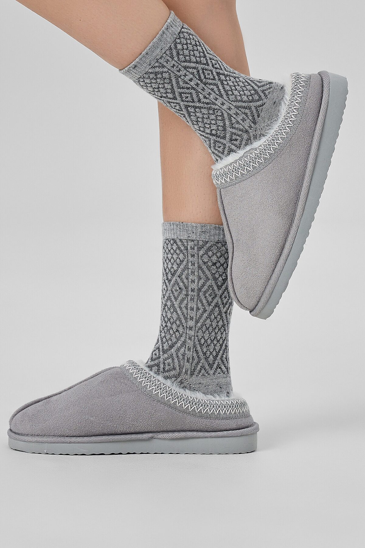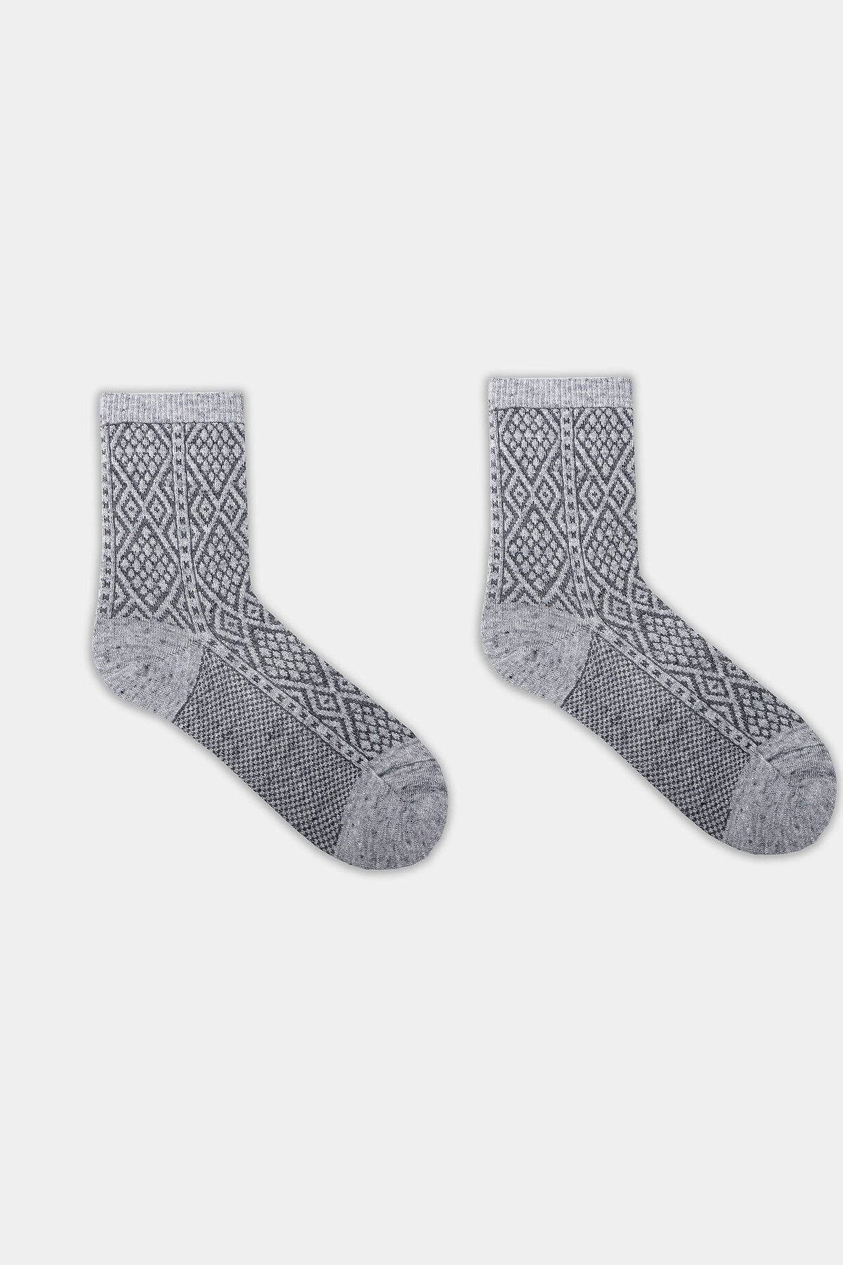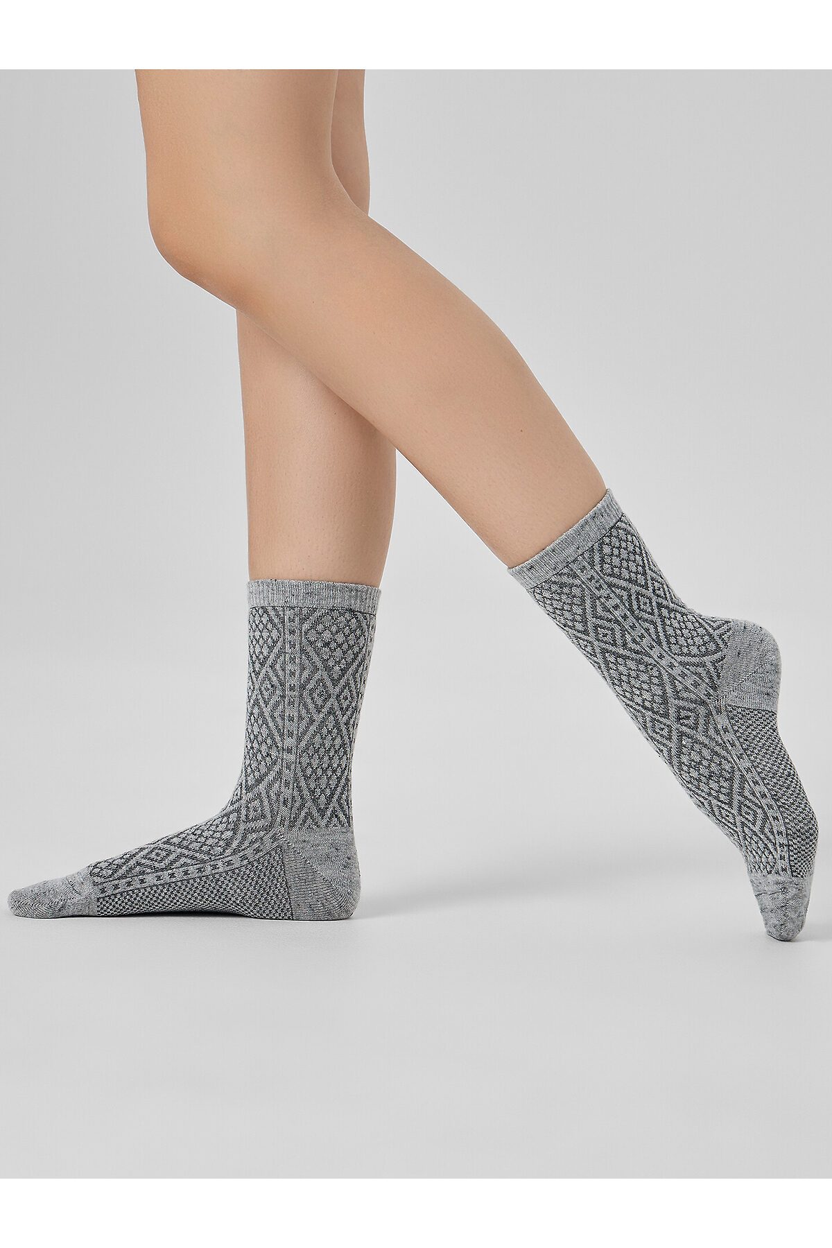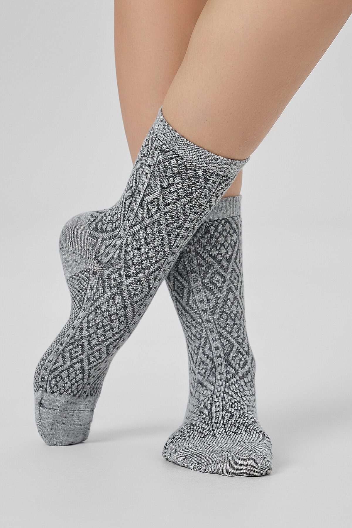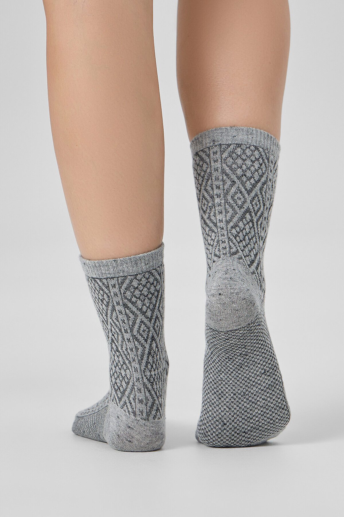 рис.3369 Женские, классические носки с рисунком в виде рельефного, объемного переплетения из смешанной пряжи с содержанием шерсти и льна.