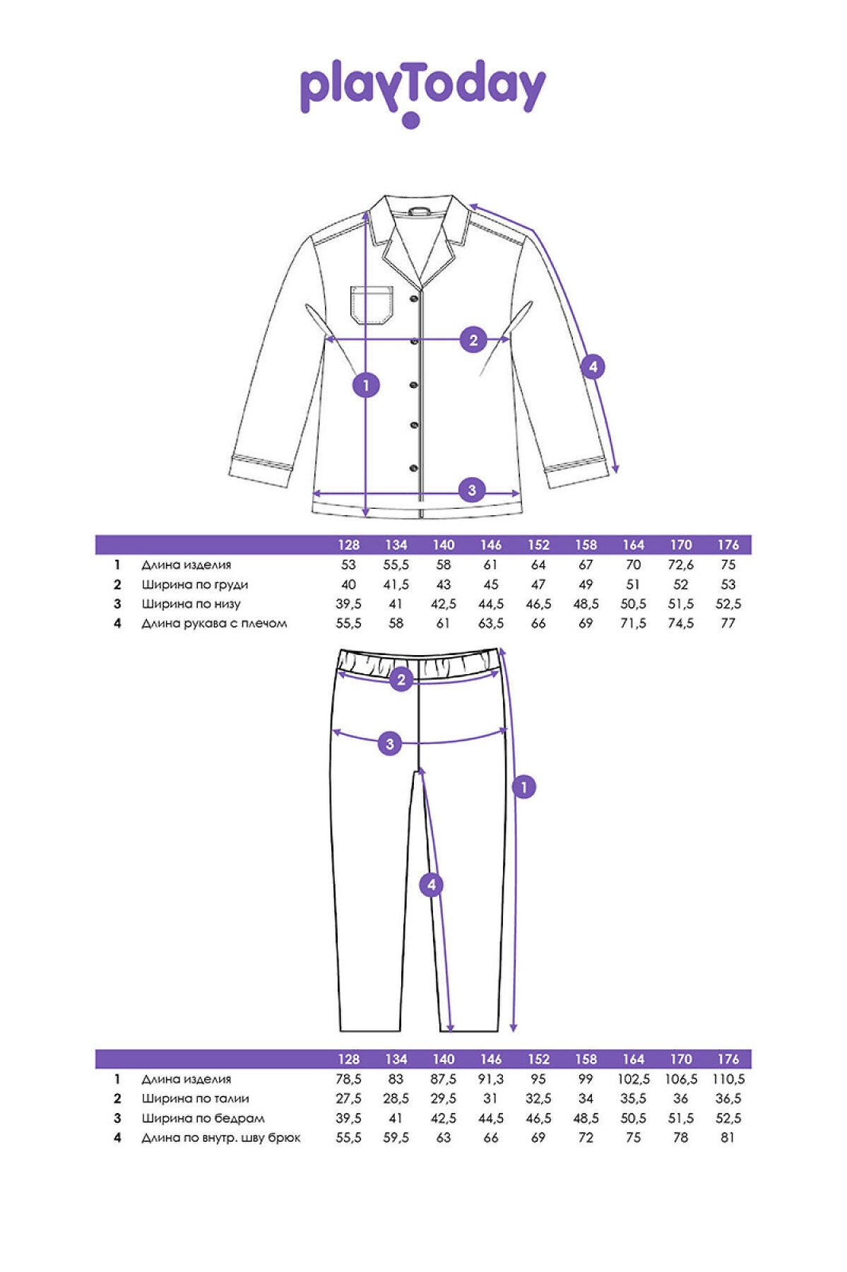 Стильная фланелевая пижама для мальчика-подростка от PlayToday — уютный и практичный вариант для сна и домашнего отдыха. Выполнена из мягкой натуральной ткани с микроначёсом, которая дарит тепло и комфорт в прохладное время года. Преимущества модели: + натуральная фланель с микроначёсом — мягкая, тёплая и приятная к телу, идеально подходит для сна + застёжка на пуговицы — удобная и надёжная классика + два накладных кармана — практичное дополнение для хранения мелочей + свободный крой — не сковывает движений и обеспечивает комфорт на протяжении всей ночи + дышащий материал — поддерживает оптимальный температурный баланс Когда и как носить: Пижама идеально подходит для сна дома, отдыха на даче или гостевых ночёвок. Благодаря стильному дизайну её можно использовать и как домашний костюм. Совет по стилю: Сочетайте пижаму с мягкими домашними тапочками и уютным халатом PlayToday для создания полноценного комплекта для сна и отдыха. Размеры: 128–176 см — подходят мальчикам от 8 лет и старше. Стильная и удобная фланелевая пижама для подростков от PlayToday — комфортный сон и домашний уют каждый день.