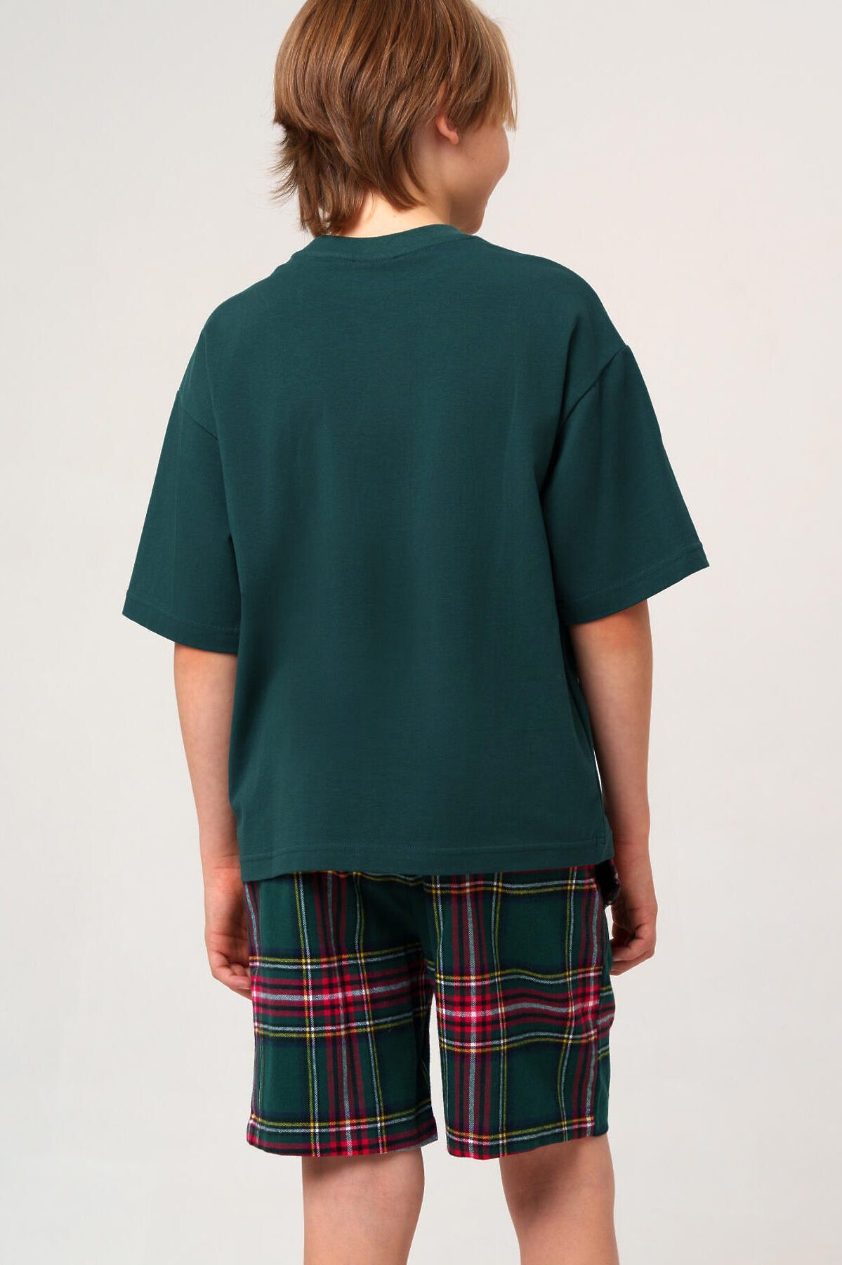 Стильная подростковая пижама для мальчика от PlayToday — удобный комплект для сна и отдыха, состоящий из мягкой хлопковой футболки и текстильных шорт в клетку. Практичный дизайн с современным принтом делает пижаму не только комфортной, но и модной частью подросткового гардероба. Преимущества модели: + футболка из хлопкового трикотажа — дышащая, мягкая и гипоаллергенная + шорты с микроначёсом — приятные к телу и сохраняют тепло + удобный пояс на резинке со шнурком — комфортная посадка и регулировка объёма + 2 кармана — практичное решение для дома свободный крой — обеспечивает свободу движений во сне и на отдыхе Когда и как носить: Пижама подходит для ночного сна, домашних игр, отдыха на даче и гостевых ночёвок. Лёгкий верх и шорты делают её отличным выбором для тёплого времени года. Совет по стилю: Сочетайте пижаму с мягкими тапочками и домашним халатом PlayToday, чтобы создать уютный образ для мальчика. Размеры: 128–152 см — для мальчиков от 8 лет и старше, подойдёт как для младших школьников, так и для подростков. Стильная пижама для мальчиков-подростков от PlayToday — комфорт и современный дизайн для сна и отдыха.