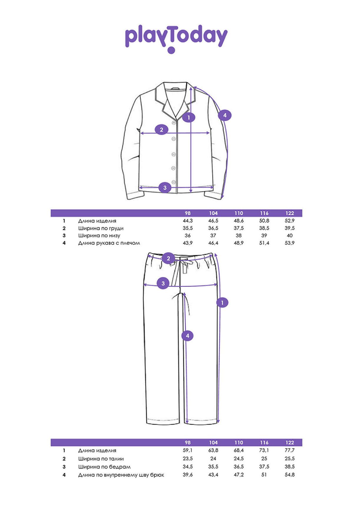 Стильная детская пижама для девочки от PlayToday — удобный комплект из мягкой фланели с микроначёсом. В набор входит рубашка и прямые брюки на резинке. Теплая и уютная ткань обеспечивает комфортный сон и подходит для домашнего отдыха в прохладное время года. Преимущества модели: + натуральная фланель с микроначёсом — мягкая, дышащая и приятная к телу + застёжка на пуговицы — классический и удобный вариант + пояс на резинке — удобная посадка без давления + современный клетчатый дизайн — стильный вариант для мальчиков и подростков Когда и как носить: Пижама идеально подойдёт для сна, отдыха дома, поездок на дачу и гостевых ночёвок. Благодаря стильному клетчатому принту она выглядит современно и может использоваться как домашний костюм или новогодний подарок. Совет по стилю: Сочетайте пижаму с мягким халатом и уютными тапочками PlayToday, чтобы создать полный домашний образ. Размеры: 98-122 см. Стильная клетчатая фланелевая пижама для девочек от PlayToday — тепло, уют и современный дизайн для сна и дома.