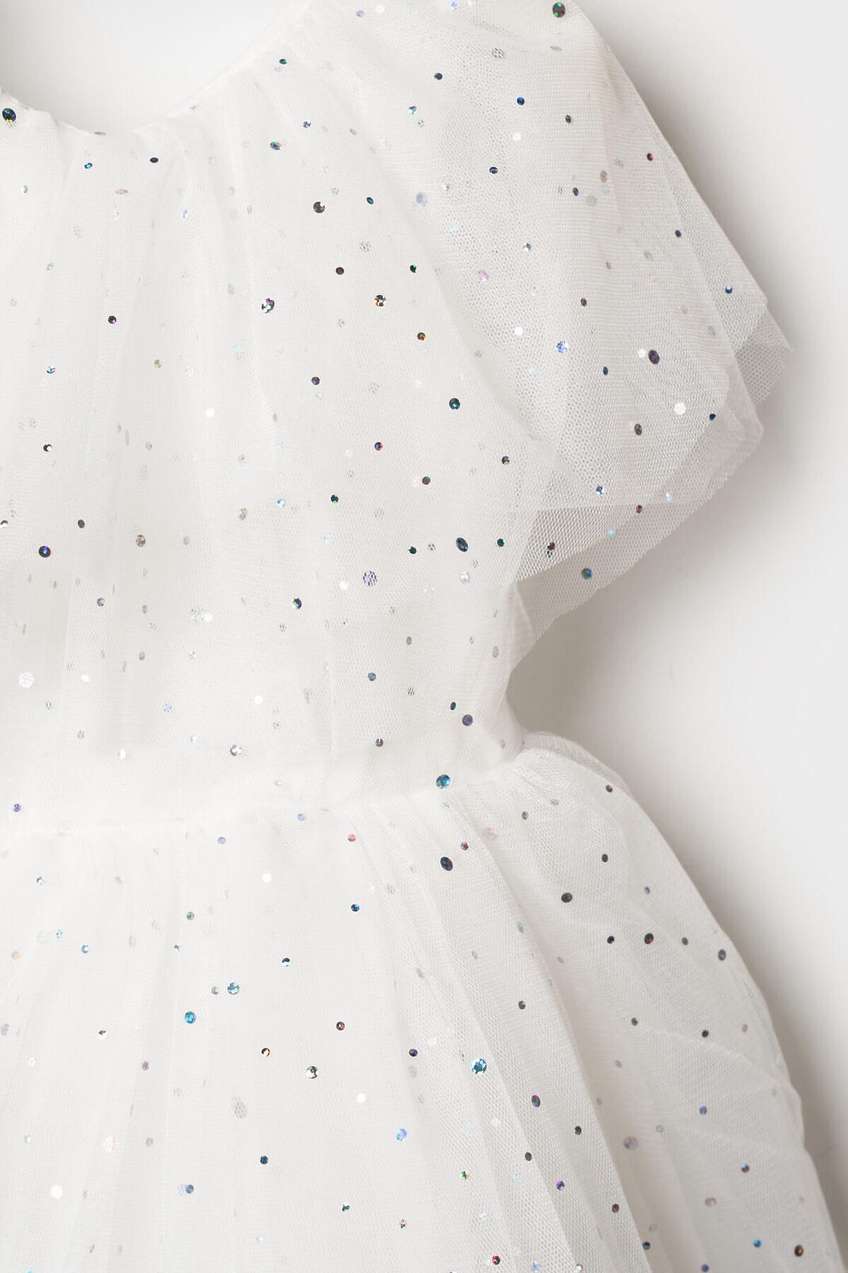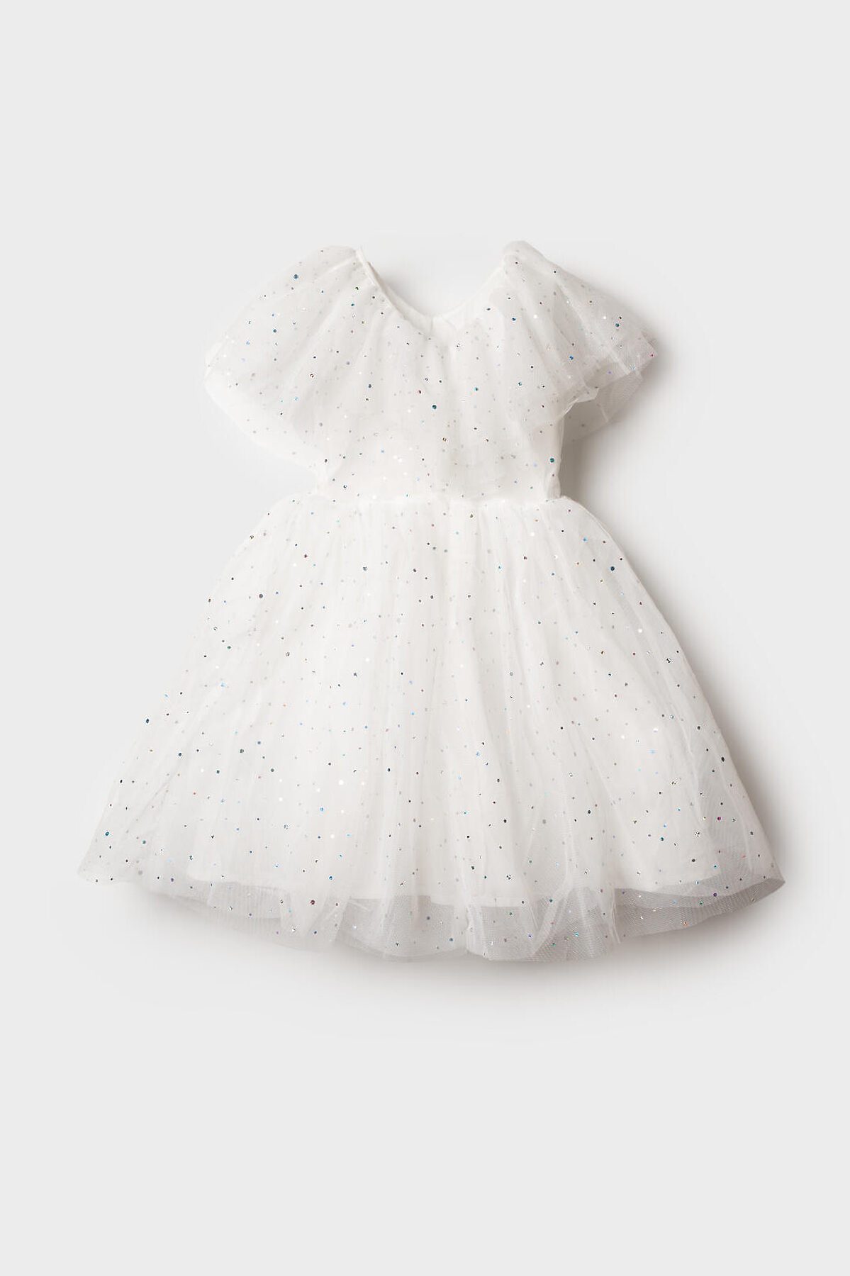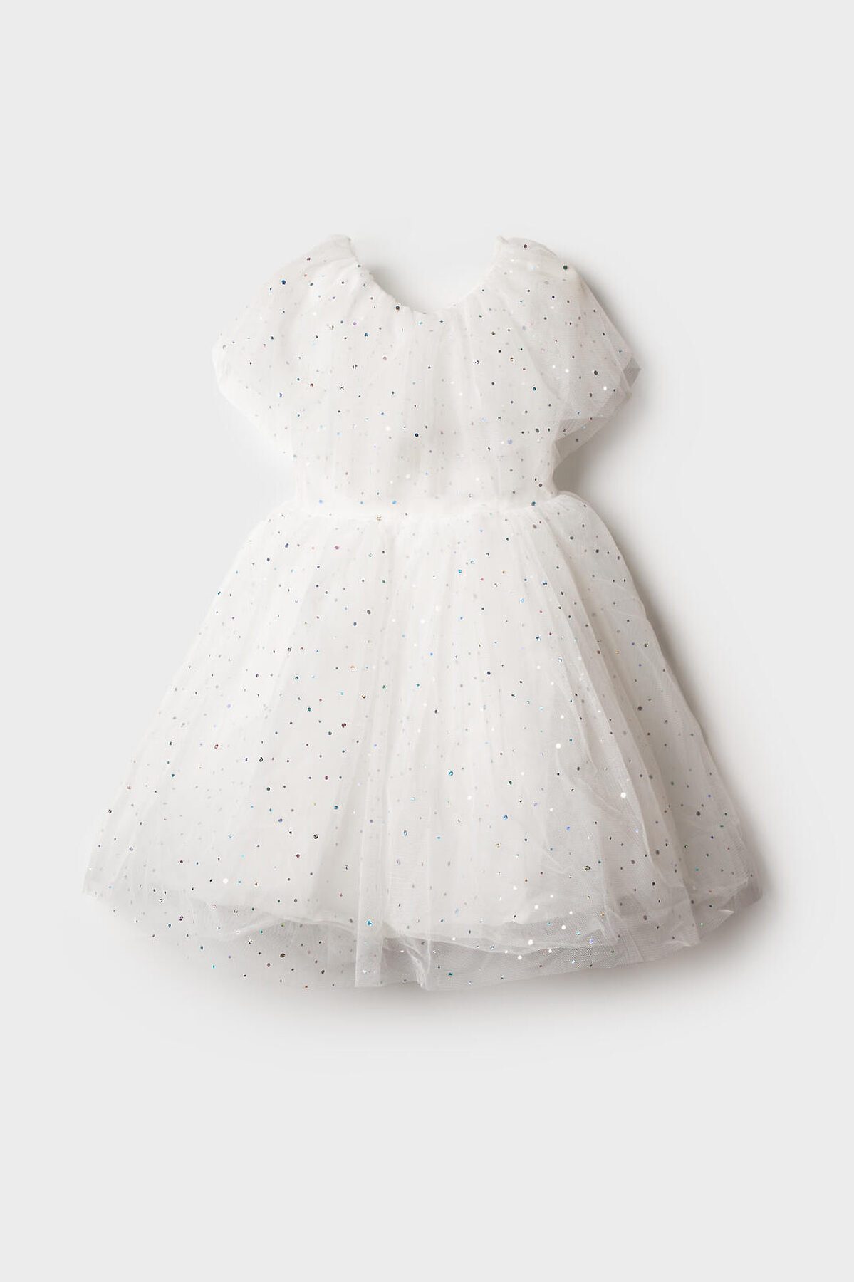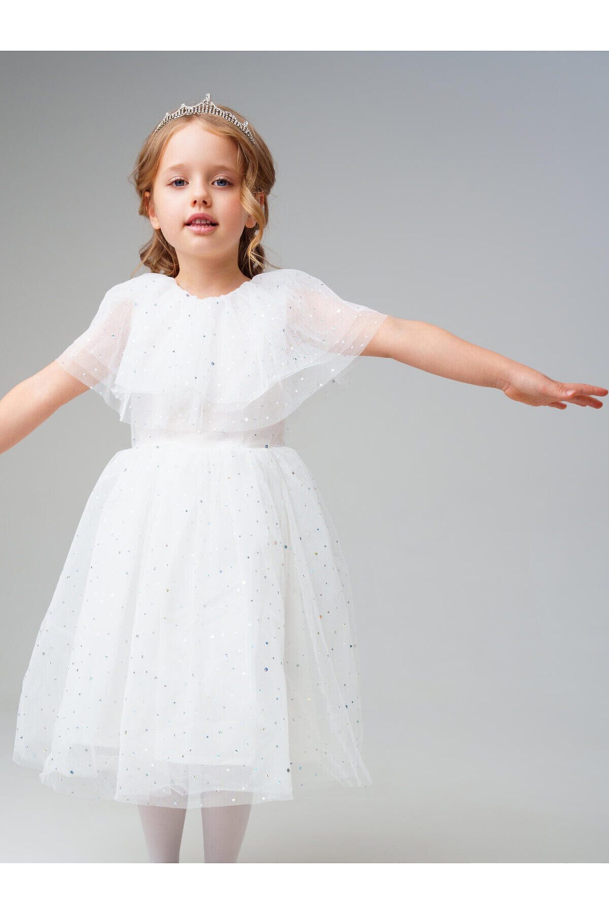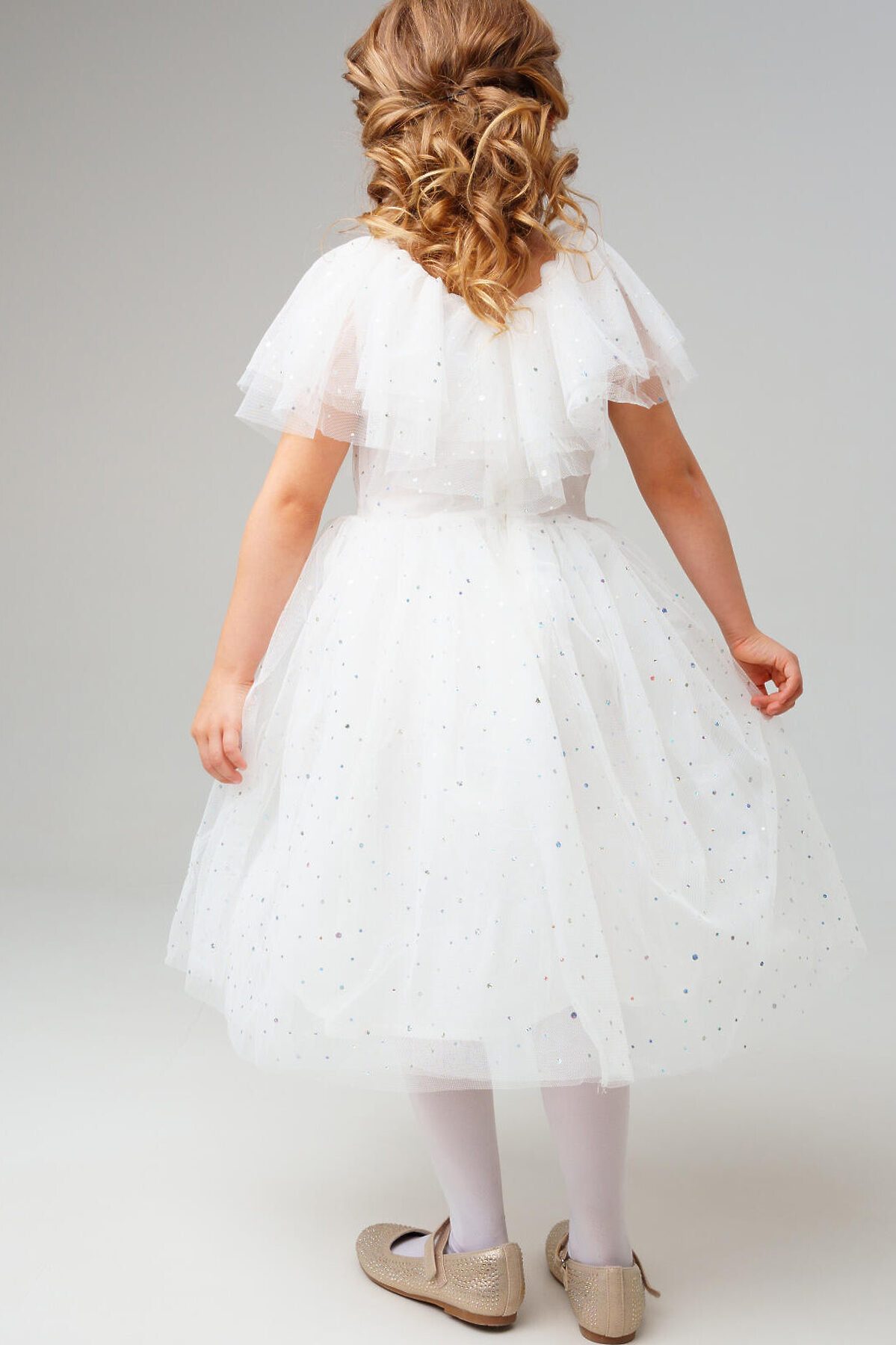 Нарядное белое детское платье для девочки от PlayToday — нежная и воздушная модель, созданная для особых случаев. Лёгкая сетчатая ткань с мерцающими блёстками делает платье праздничным и волшебным, а мягкая хлопковая подкладка обеспечивает комфорт даже при длительном ношении. Преимущества модели: + верх из полупрозрачной сетки с блестящим напылением — эффект звёздного сияния + мягкая подкладка из хлопкового поплина — приятна к телу, обеспечивает комфорт и воздухопроницаемость + пышная юбка из нескольких слоёв фатина создаёт объём и лёгкость силуэта + короткие рукава и аккуратный вырез — комфортная посадка без лишних деталей + лёгкий вес и мягкий материал — ребёнку удобно двигаться и играть Когда и как носить: Идеально подойдёт для праздников, утренников, фотосессий, дней рождения, Нового года и торжественных мероприятий. Можно дополнить аксессуарами для создания образа маленькой принцессы. Советы по стилю: Сочетайте с белыми или серебристыми балетками, туфельками или босоножками от PlayToday. Для завершения образа добавьте тонкий ободок или корону, а в прохладную погоду — лёгкий кардиган. Размерный ряд: 98–122 см. Белое детское платье PlayToday — воплощение лёгкости, блеска и сказочного настроения для особенных моментов.