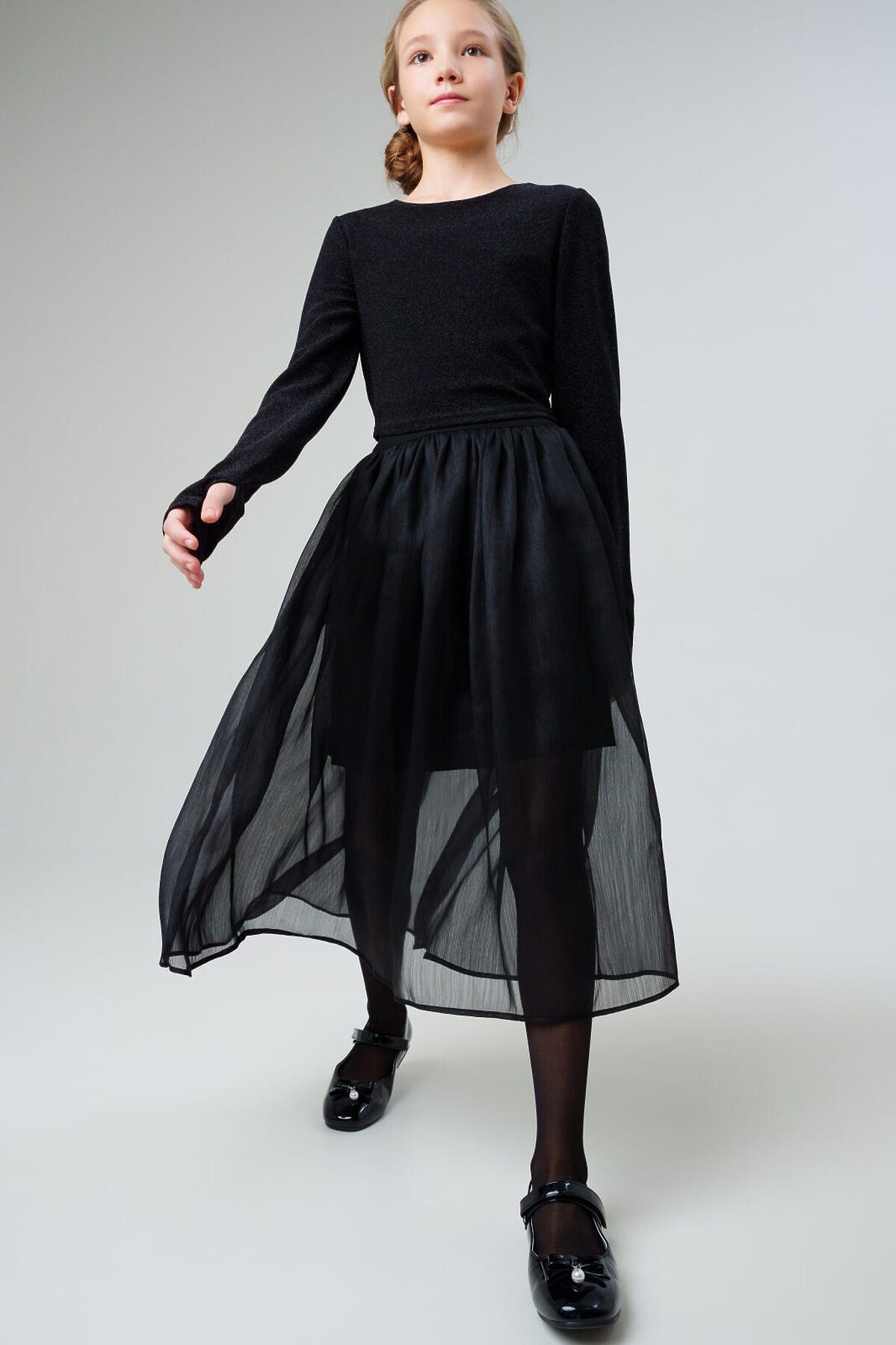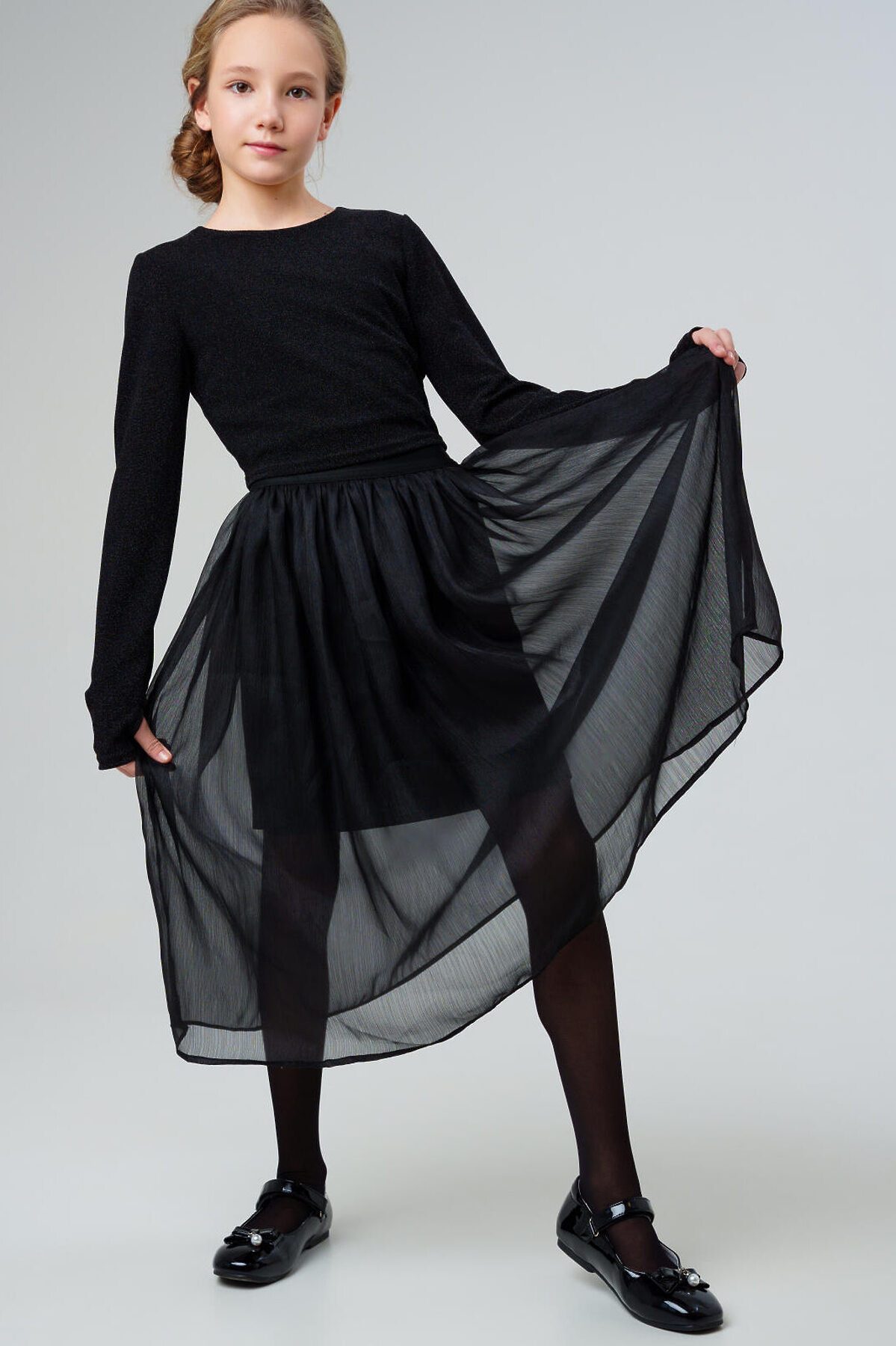 Стильная нарядная юбка для девочки подростка от PlayToday — эффектная модель с пышной юбкой из органзы. Преимущества модели: + отделка из органзы создаёт праздничный, запоминающийся образ + подкладка с высоким содержанием вискозы + пояс на резинке - идеальная посадка по фигуре Уникальное сочетание тканей делает юбку ярким акцентом гардероба. Свободный крой обеспечивает комфорт и свободу движений. Когда и как носить: Подходит для праздников, дней рождения, школьных мероприятий, фотосессий, новогодних утренников или просто как стильный наряд на выход. Также отлично смотрится в повседневной стилизации — трендовая уличная мода для подростков. Советы по стилю: Носи с блузками или футболками, челси или балетками. Добавь объёмную джинсовку, косуху или удлинённую парку — и ты получишь трендовый и комфортный городской образ. Подходит для девочек от 8 лет.