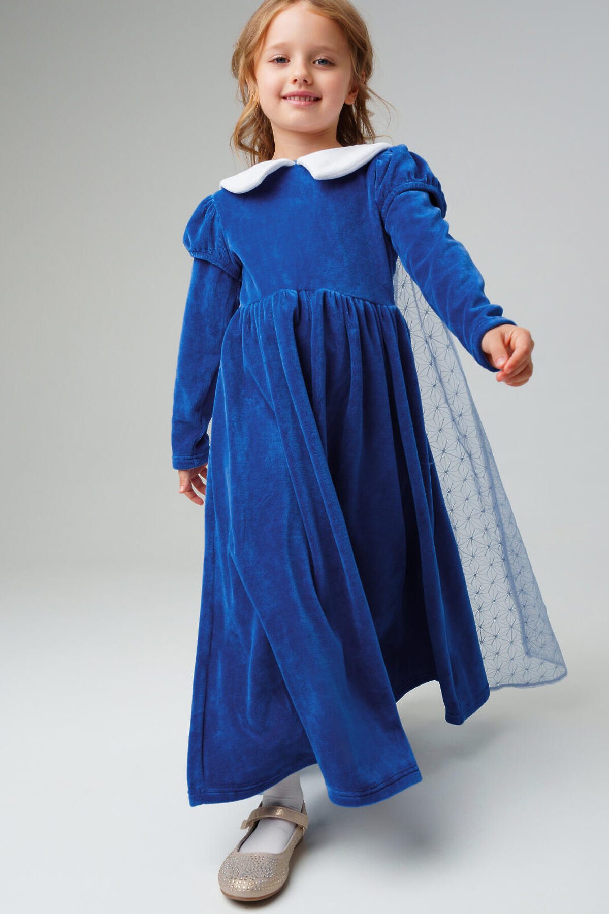 Платье детское нарядное из велюра для девочки от PlayToday — элегантная и комфортная модель в винтажном стиле. Мягкий материал с лёгким блеском создаёт праздничное настроение, а контрастный белый воротничок добавляет образу изысканности и очарования. Преимущества модели: + плотный велюр премиум-качества — тёплый, мягкий и приятный на ощупь + контрастный воротник из белой ткани придаёт наряду выразительный акцент + рукава с лёгким объёмом на плечах — модная деталь, создающая женственный силуэт + собранная юбка — красиво драпируется и создаёт лёгкий объём + материал устойчив к деформации и не теряет цвет после стирок Когда и как носить: Идеально подходит для праздников, новогодних утренников, походов в театр или фотосессий. Благодаря мягкой велюровой ткани платье остаётся удобным даже при активных движениях — ребёнку в нём тепло и комфортно. Советы по стилю: Сочетайте с плотными колготками и туфельками или балетками от PlayToday. Для завершения образа можно добавить ободок, бантик или бархатную ленту в тон платью. Размерный ряд: 98–122 см. Платье детское велюровое PlayToday — уютная классика с ноткой волшебства для самых красивых зимних праздников.
