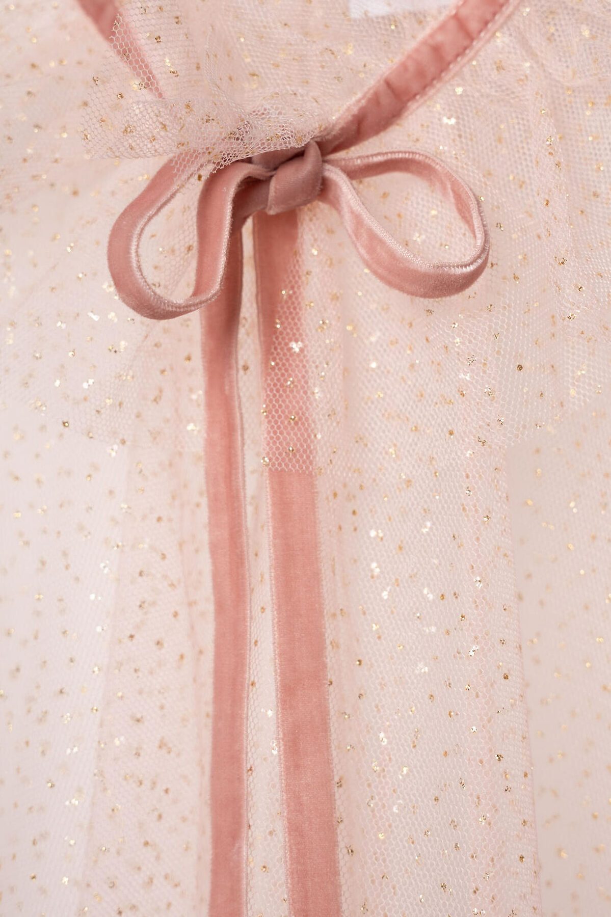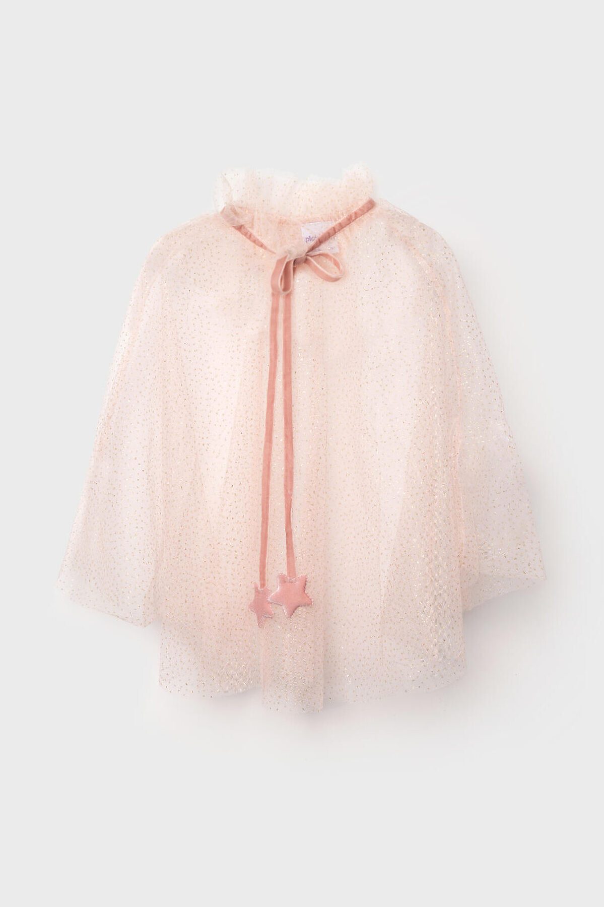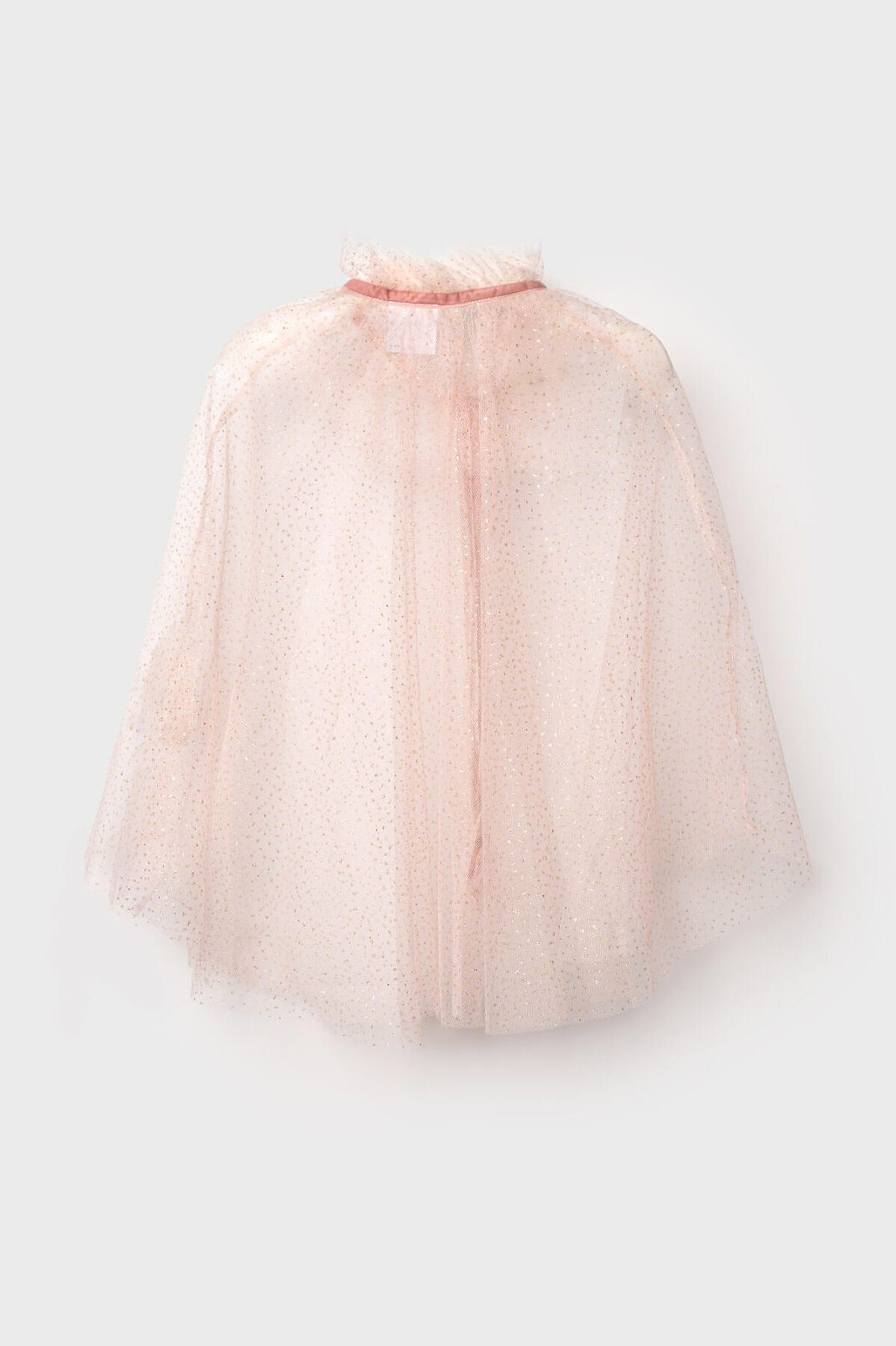 Воздушная детская накидка для девочки от PlayToday — лёгкий и нарядный аксессуар, который добавит волшебства любому образу. Выполнена из прозрачной сеточки с деликатным блеском, она создаёт эффект лёгкости и движения при каждом шаге. Преимущества модели: + лёгкая сетчатая ткань — невесомая, мягкая и комфортная + завязки на горловине с декоративными звёздами — изящный акцент + воротник-стойка с мягкими сборками — придаёт романтичность силуэту + универсальный оттенок пудрово-розового — подходит ко многим нарядам + свободный фасон не сковывает движений и легко надевается поверх любого платья Когда и как носить: Подходит для праздников, фотосессий, новогодних утренников и театральных постановок. Легко сочетать с платьями, сарафанами и юбками, добавляя нотку волшебства в любой образ. Советы по стилю: Сочетайте с нарядными платьями из коллекции PlayToday, балетками и аксессуарами в пастельных тонах. Можно использовать как праздничное дополнение к костюму принцессы или феи. Размерный ряд: 98–122 см. Накидка PlayToday — лёгкое облако из сеточки, которое превращает любой образ в сказочный.