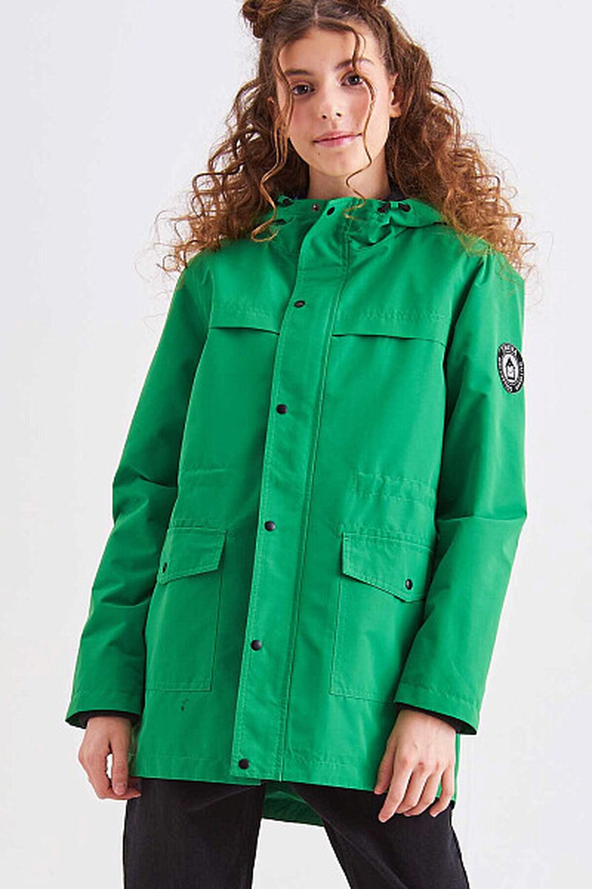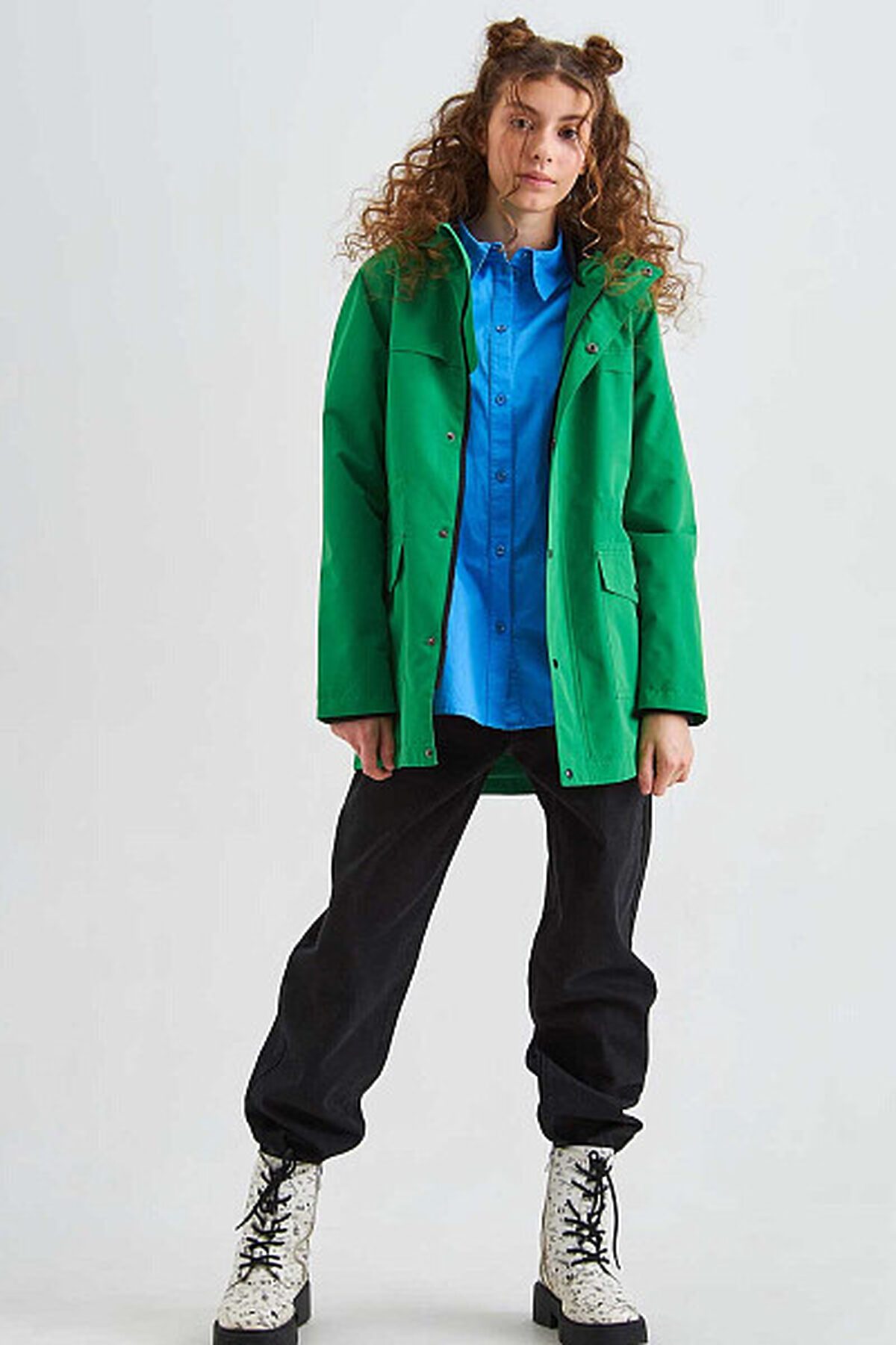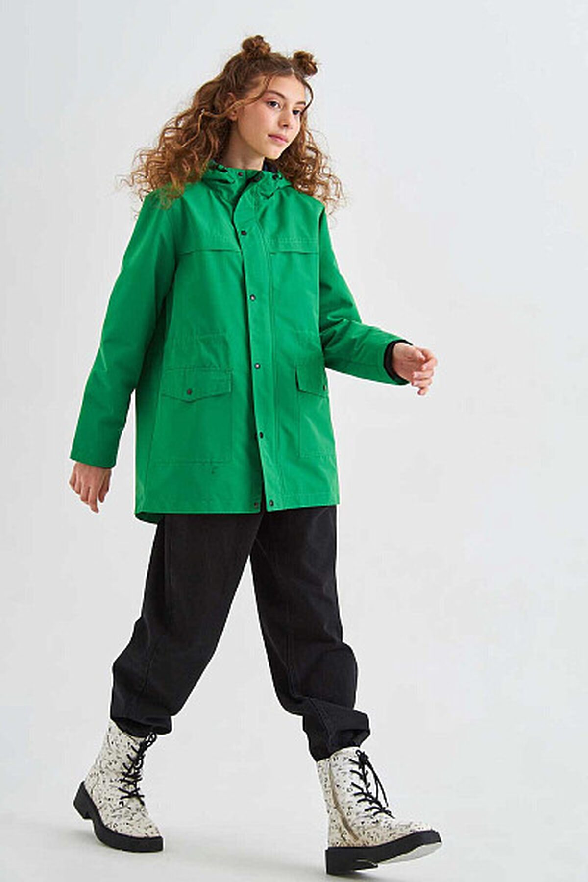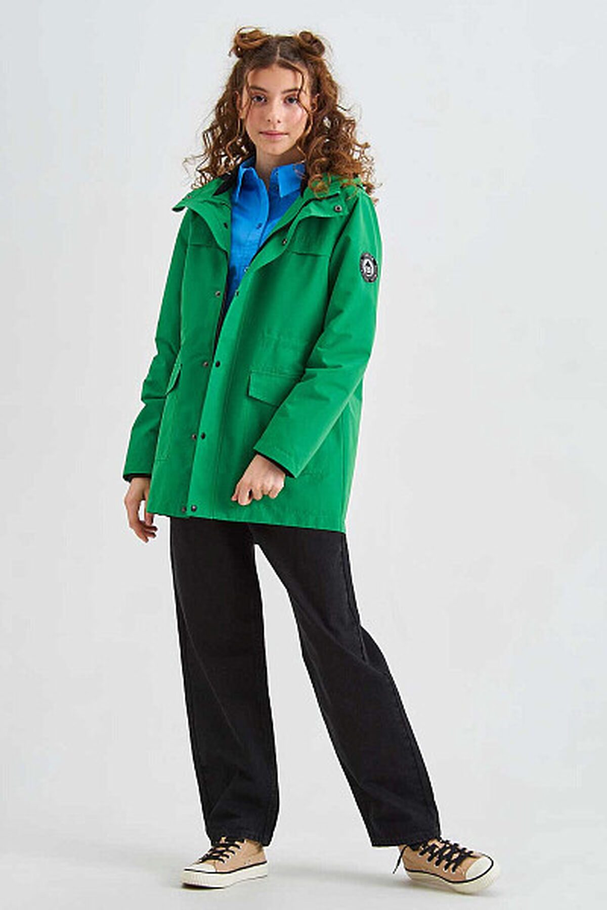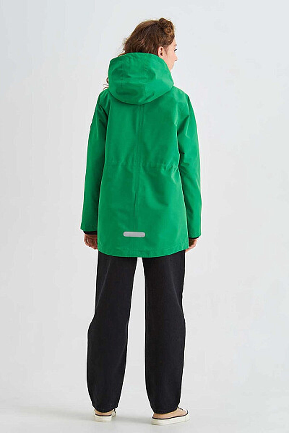 Куртка-ветровка на хлопковой подкладке c несъемным капюшоном. Внутри кулиска со шнурком для регулировки ширины изделия, в рукавах трикотажные манжеты, два накладных кармана с клапаном.
