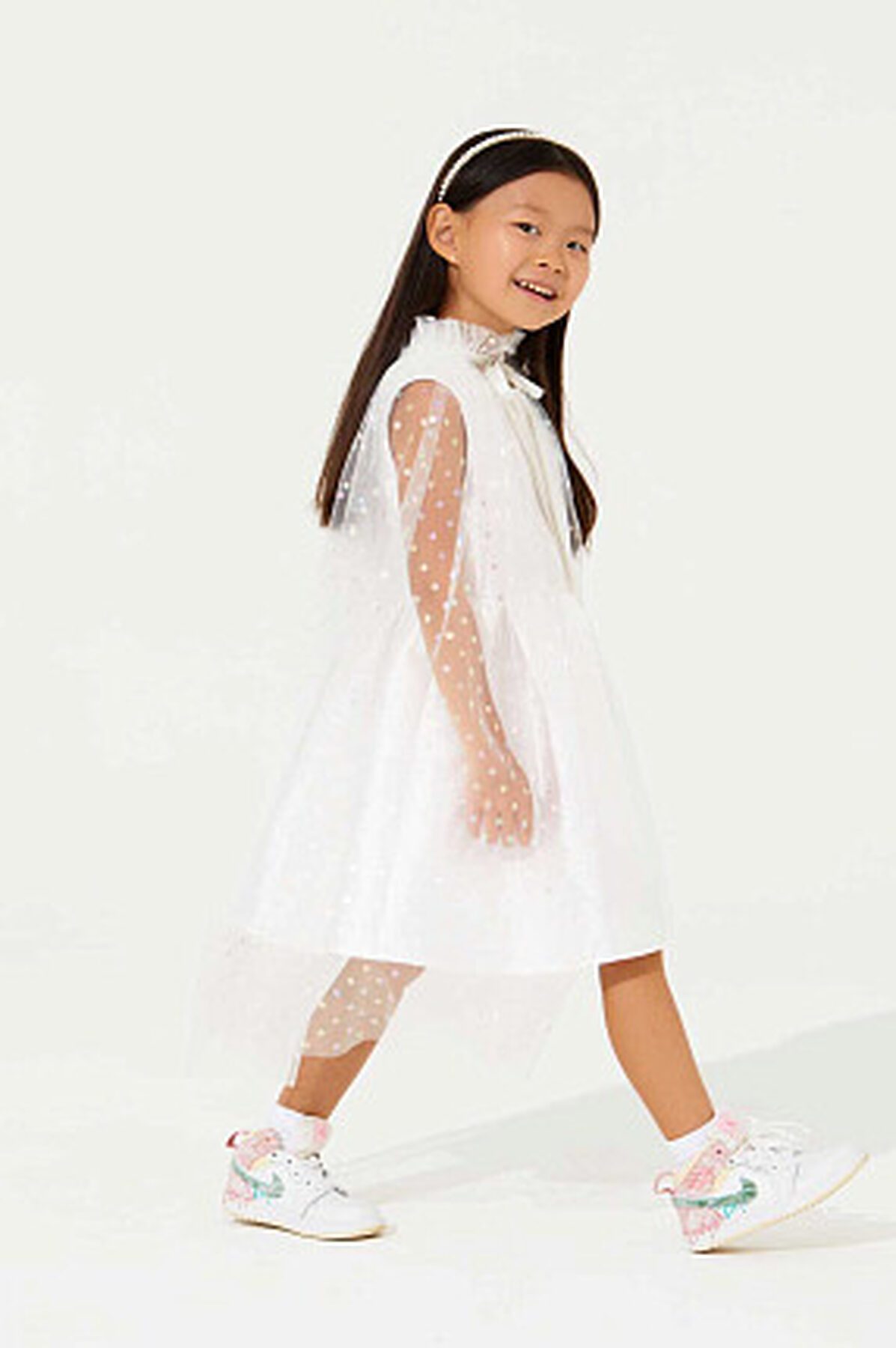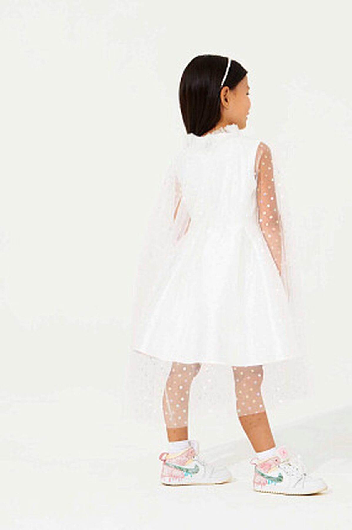 Воздушная переливающаяся накидка — то, что нужно юной моднице, чтобы весело играть со своими подружками в принцесс и веселиться на новогоднем утреннике. Завязки на палантине помогут отрегулировать ее по размеру и не потерять во время активных игр. Пышная и блестящая накидка из сетки станет великолепным дополнением для любого наряда и сделает из девочки настоящую сказочную фею.