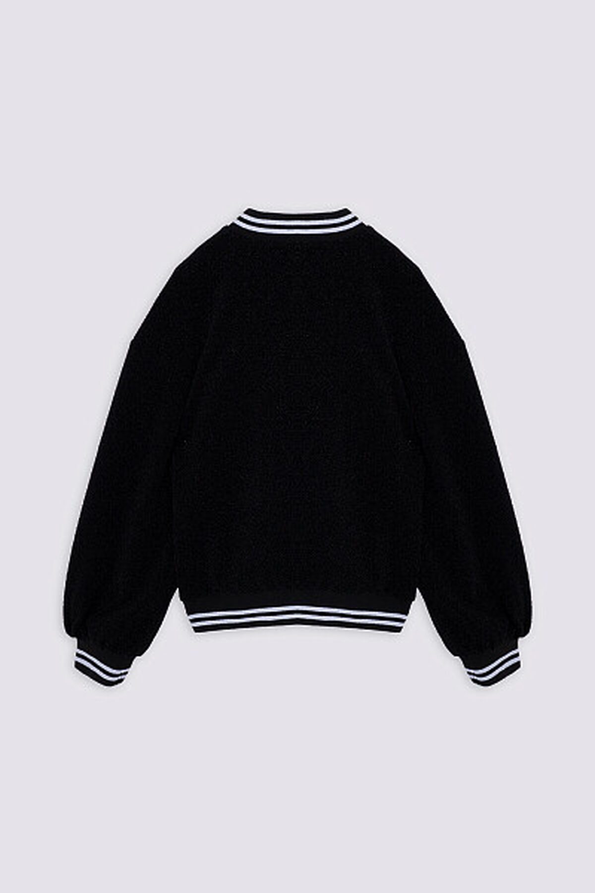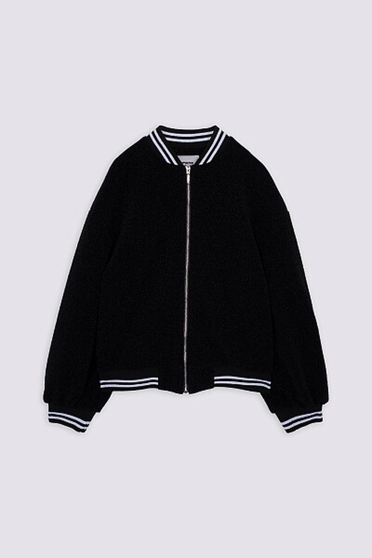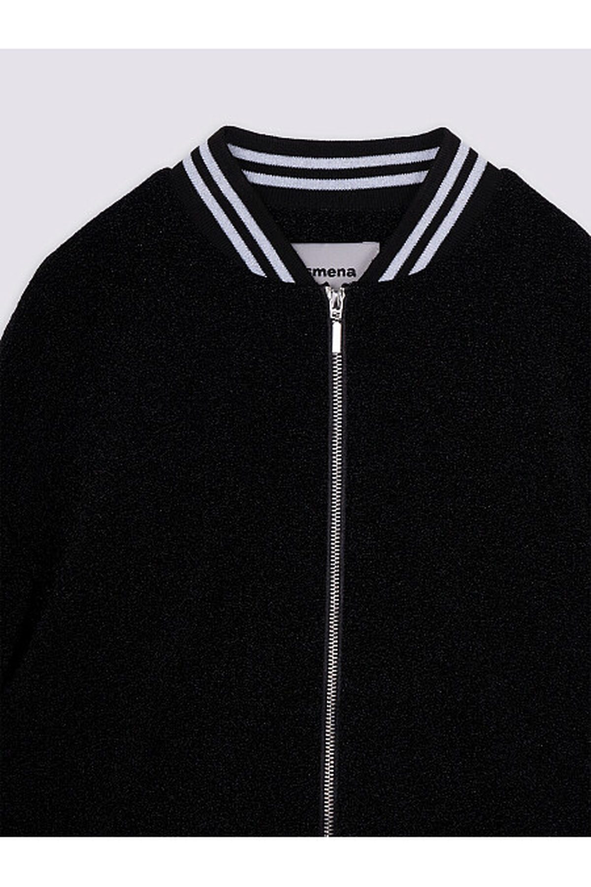 Бомбер для девочки свободного силуэта со спущенным плечем Выполнен из трикотажа. Застежка прямая на молнию. Манжет и воротник выполнен в тон изделия.