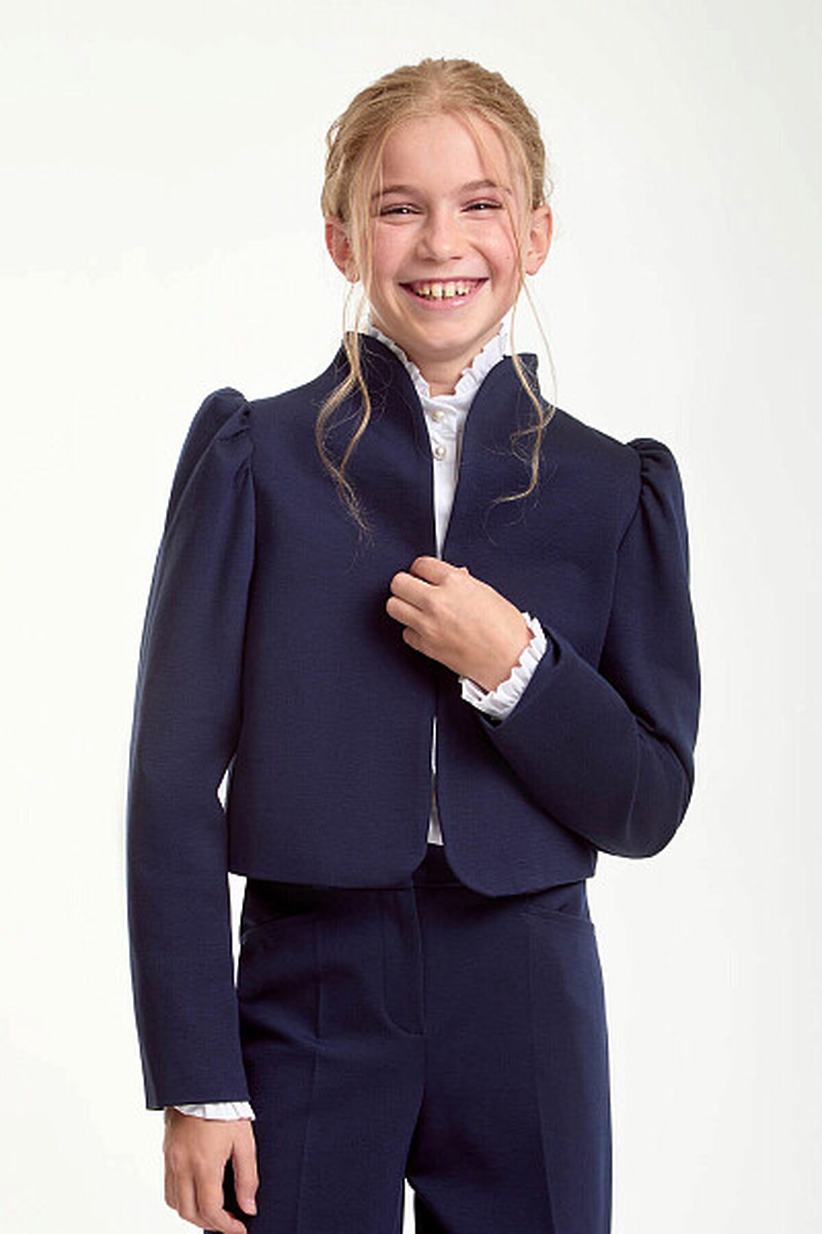 Укороченный жакет для девочек идеально подойдет для школы. Модель удачно впишется в школьный дресс-код, сочетая строгие линии с современным дизайном.
